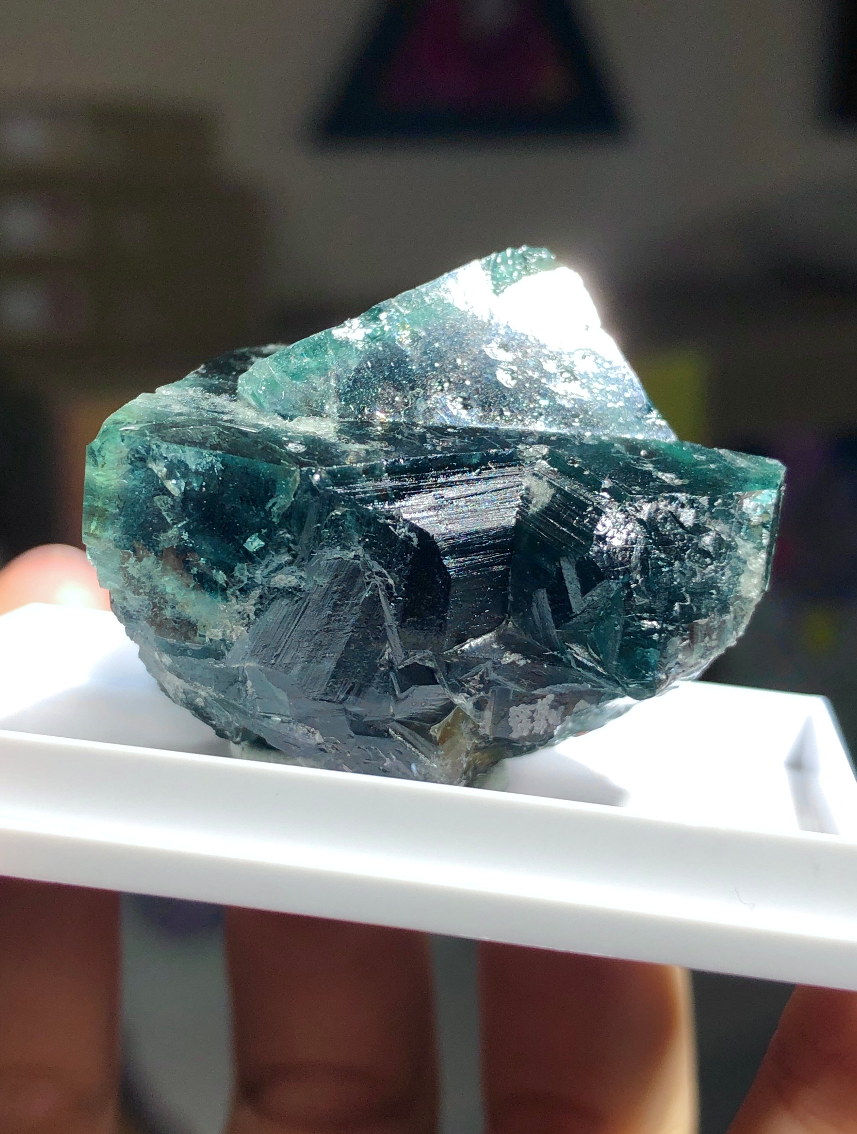 深いグリーンが静かな森を思わせる、魅力的なフローライトです。