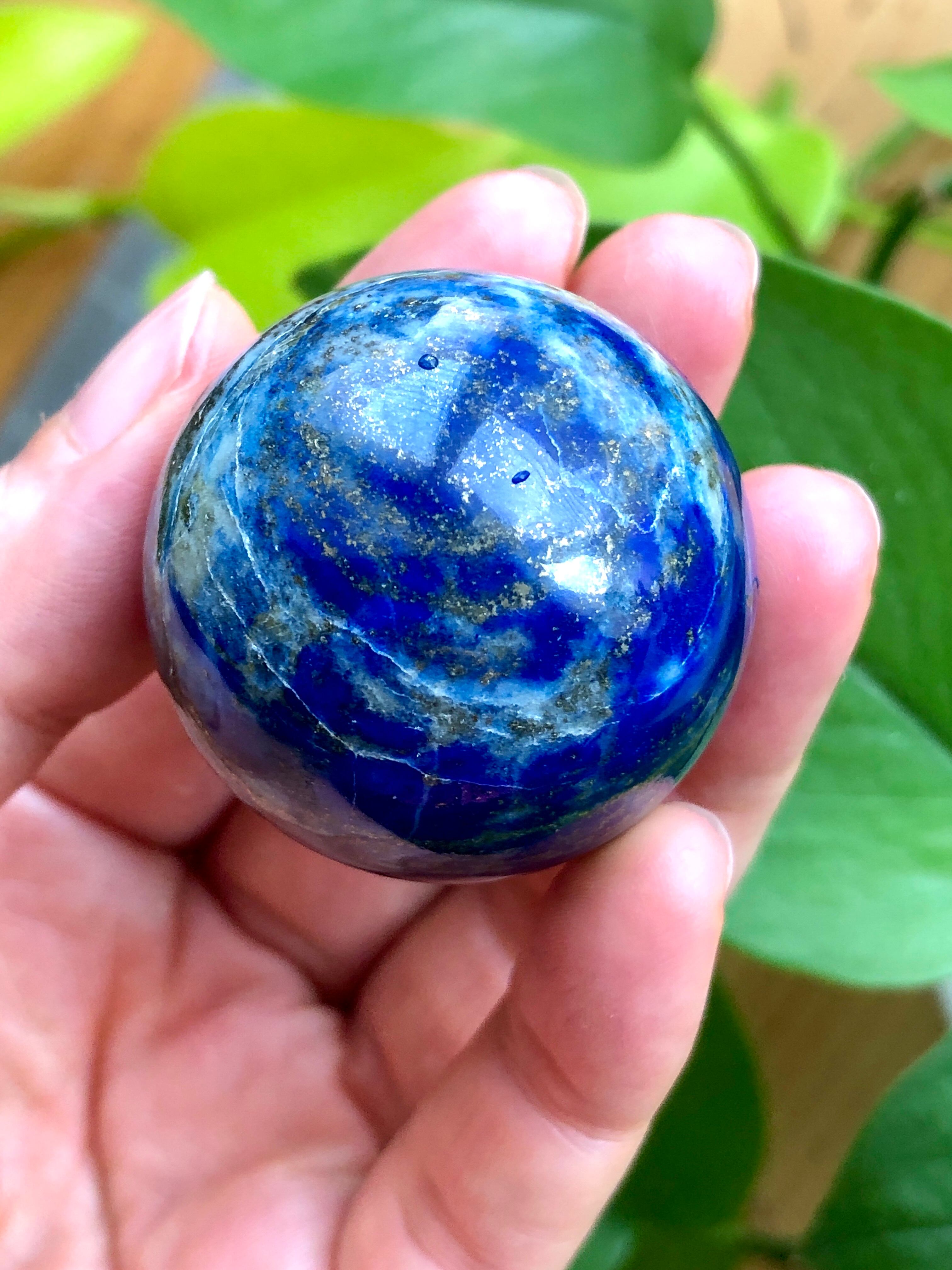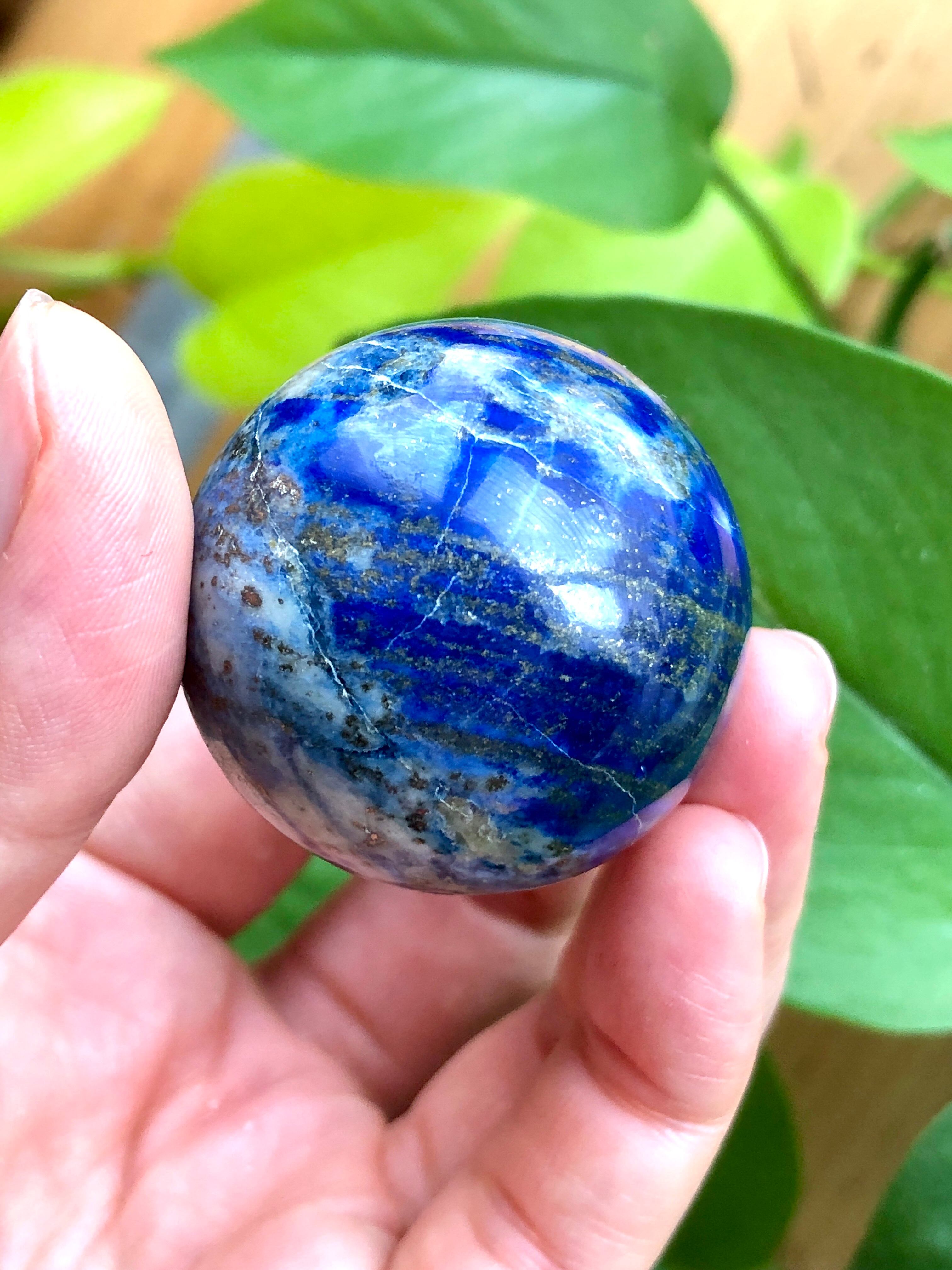 こちらはアフガニスタン産ラピス3.6cm丸玉です。 人の手で球体に削られていて、完璧な球体でないところがとても味わい深くて私的にはおすすめポイントです。 この子は、持ち主様のハートを開かせてくれます。 自分は自分が思うよりも大切にされていた、ということに気づかせてくれます。 そして、自分への寛大さと思いやりを持てるようになるでしょう。 また、古いパターンと信念と考え方に変化が訪れ、ポジティブになり、活力と新しい進路が生まれそうです。