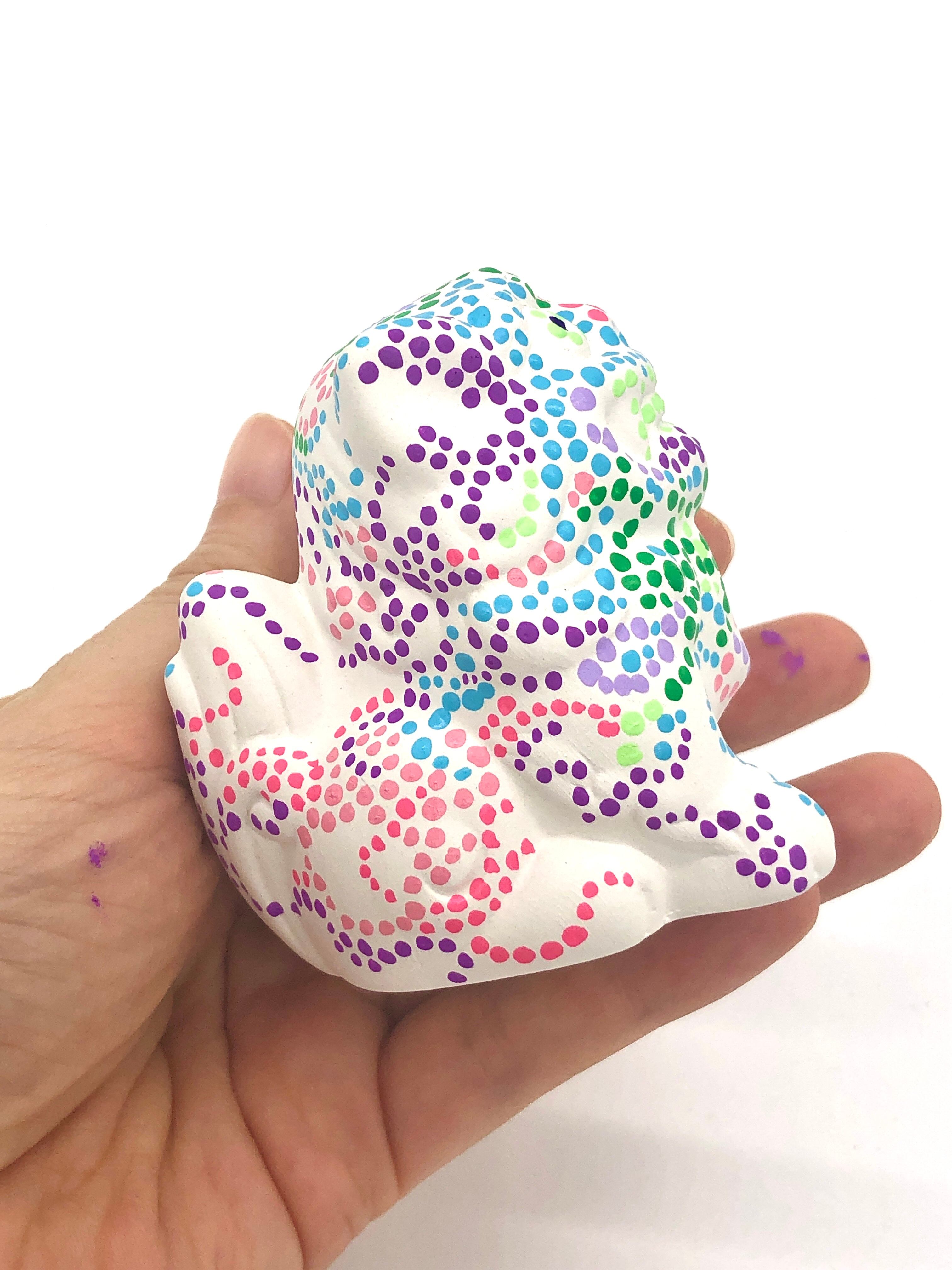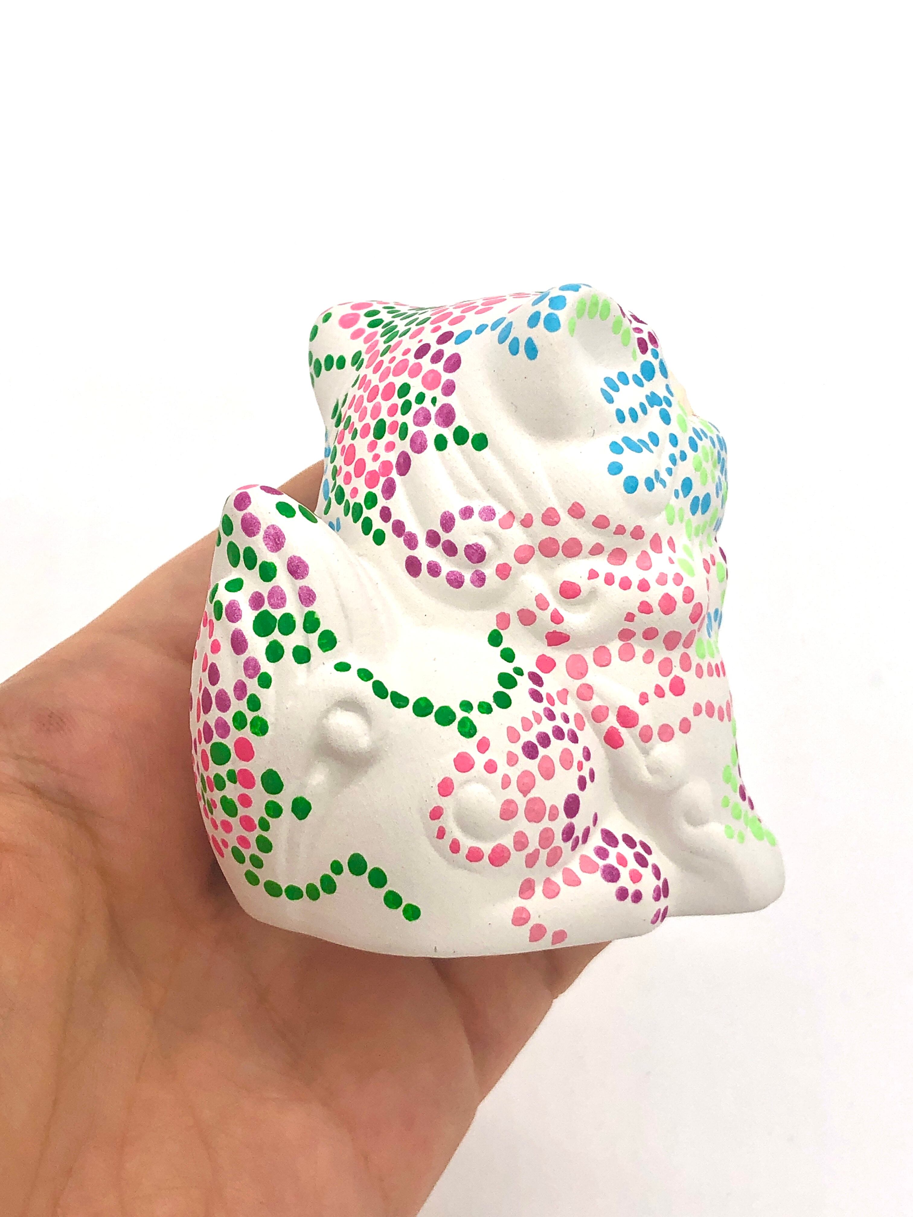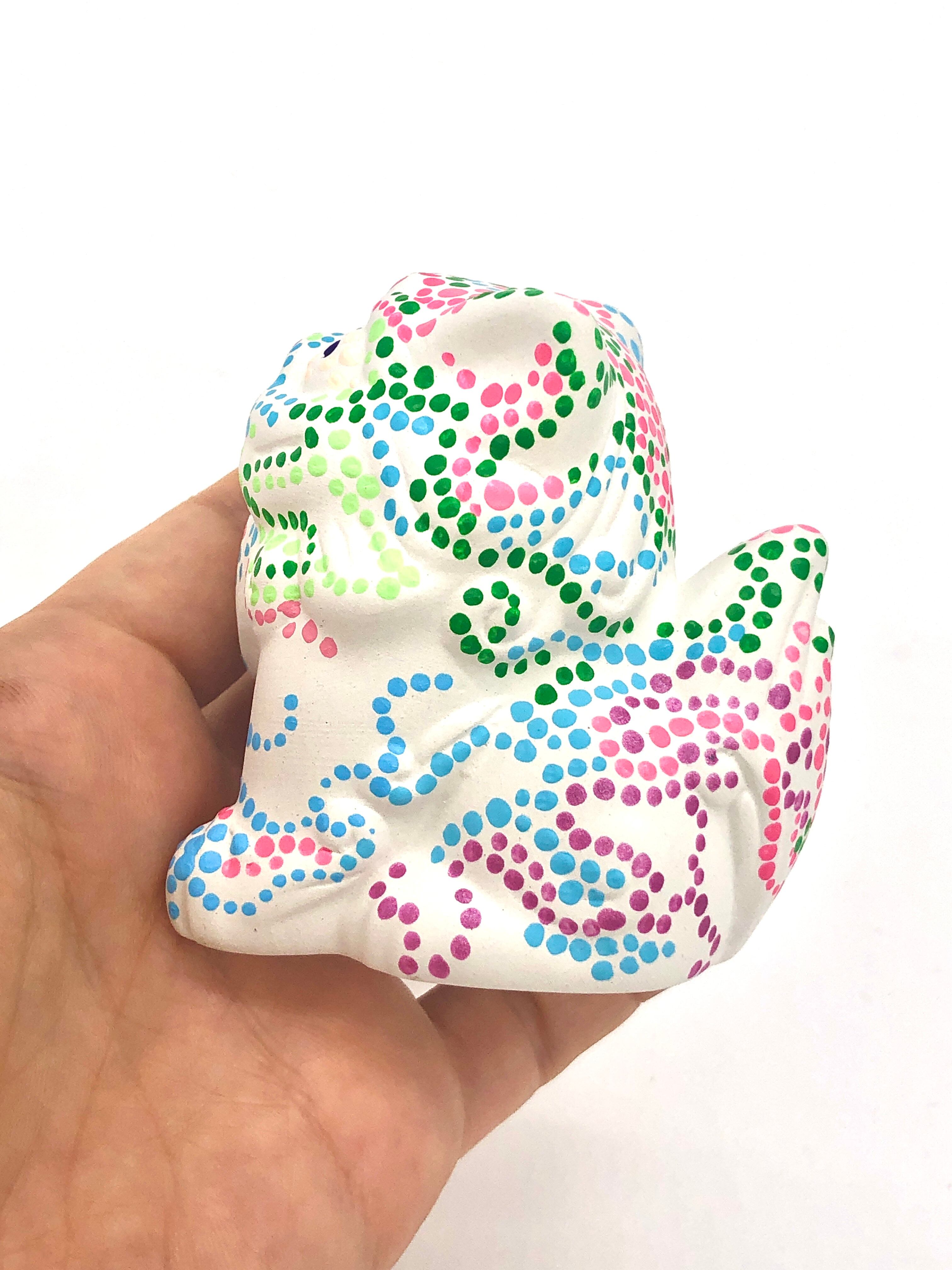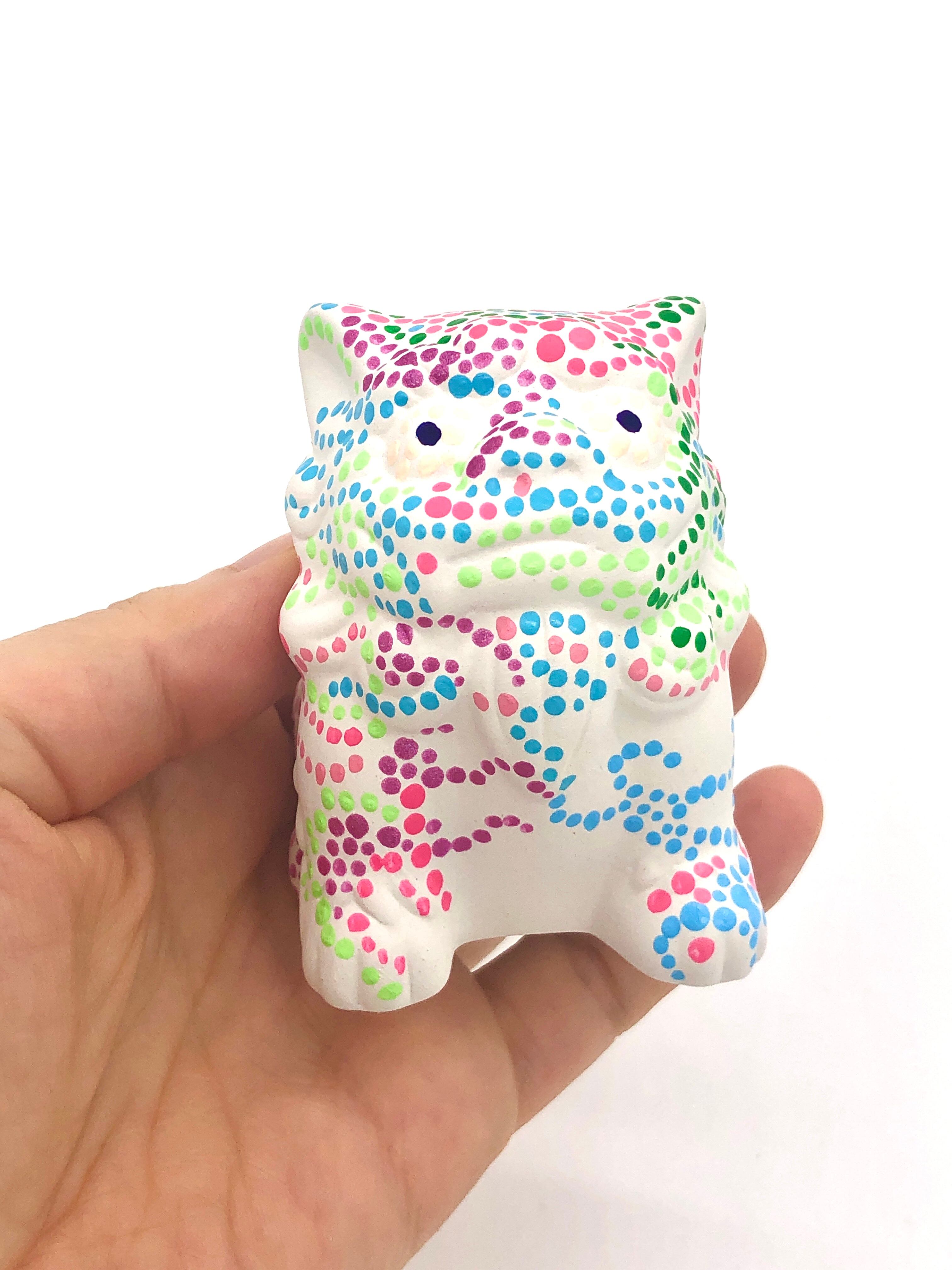 こちらは、素焼きのシーサーにご注文者さまのための絵付けをしてお送りするオーダー作品です。作品のイメージは画像と近いものになりますが、色合いや模様の細かな違いがお一人ずつ違ったものになります。