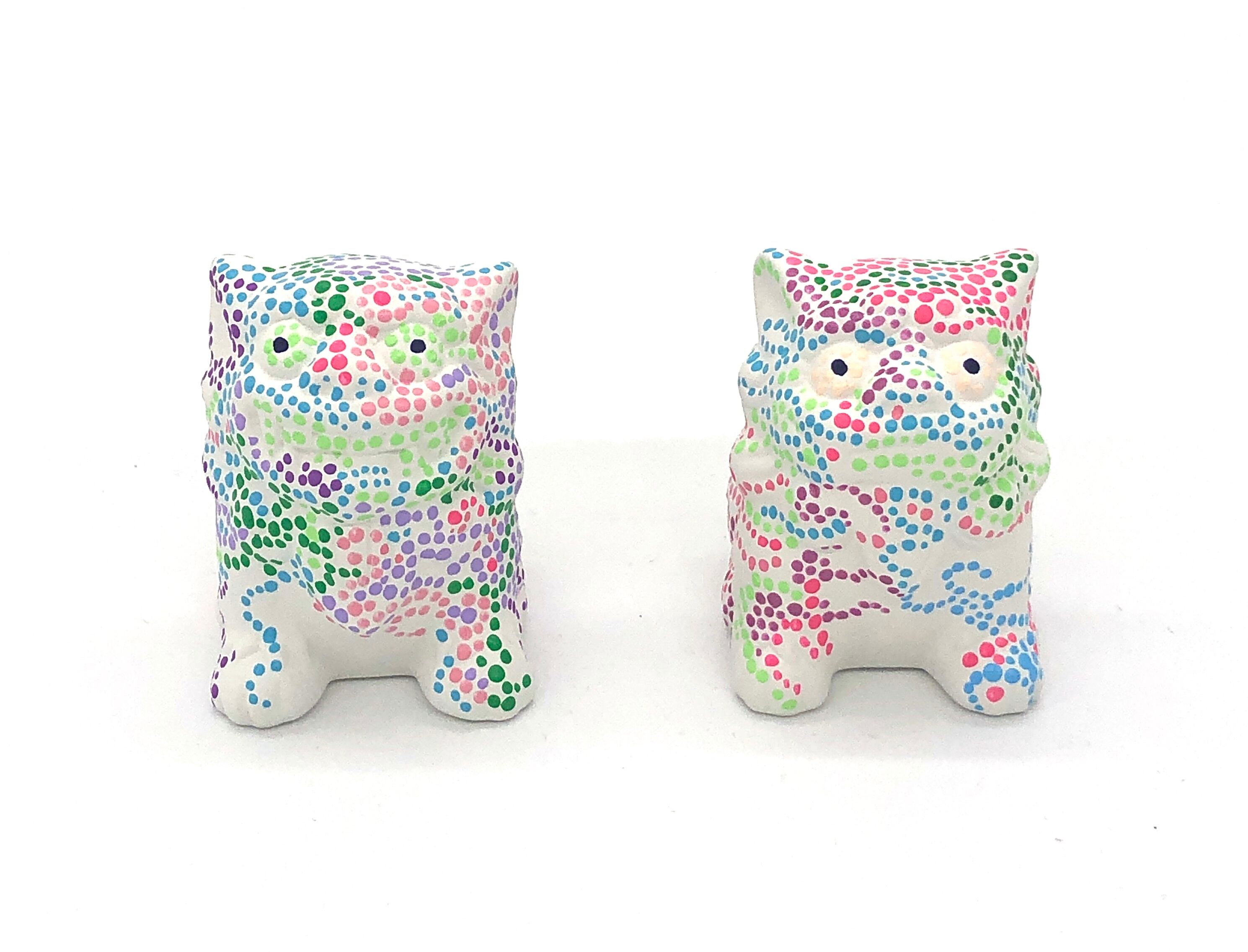 手のひらに収まるミニサイズのシーサーで、「阿」「吽」の対になっています。