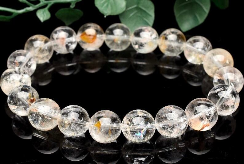 こちらはブラジル産ヘマタイトインホワイトファントムクォーツ10.5ミリ玉ブレス。