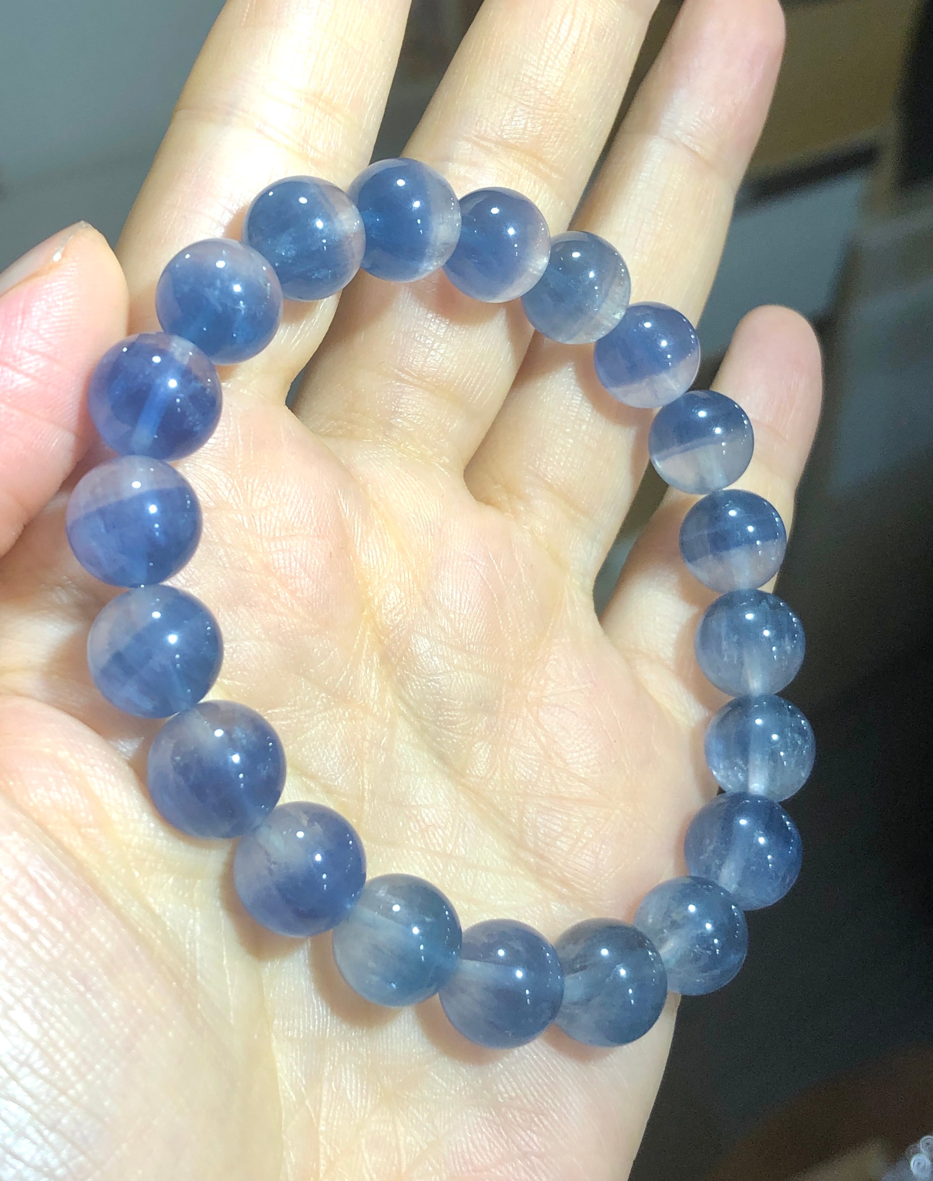 こちらはイリノイ州産バイカラーブルーフローライト10ミリ玉ブレス。