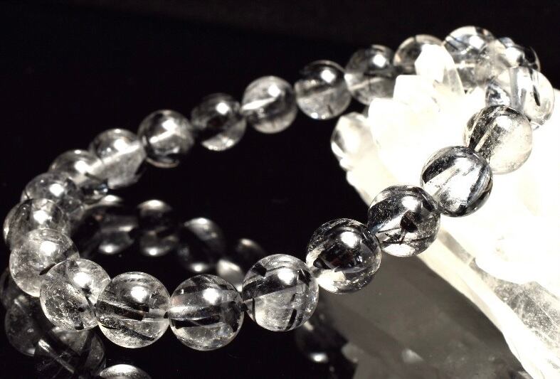こちらはブラックトルマリンインクォーツ8.5ミリ玉ブレス。