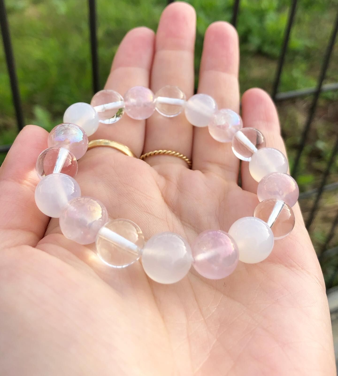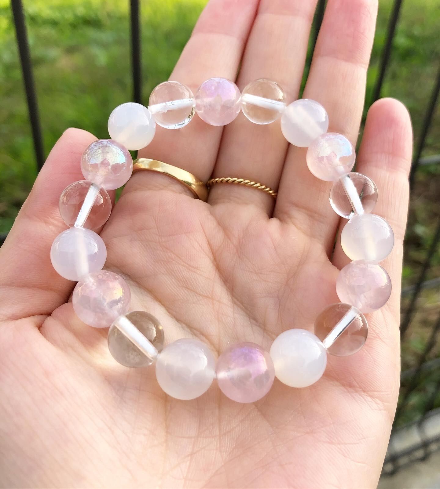 オーラローズクォーツ、ホワイトアゲート、クリスタル