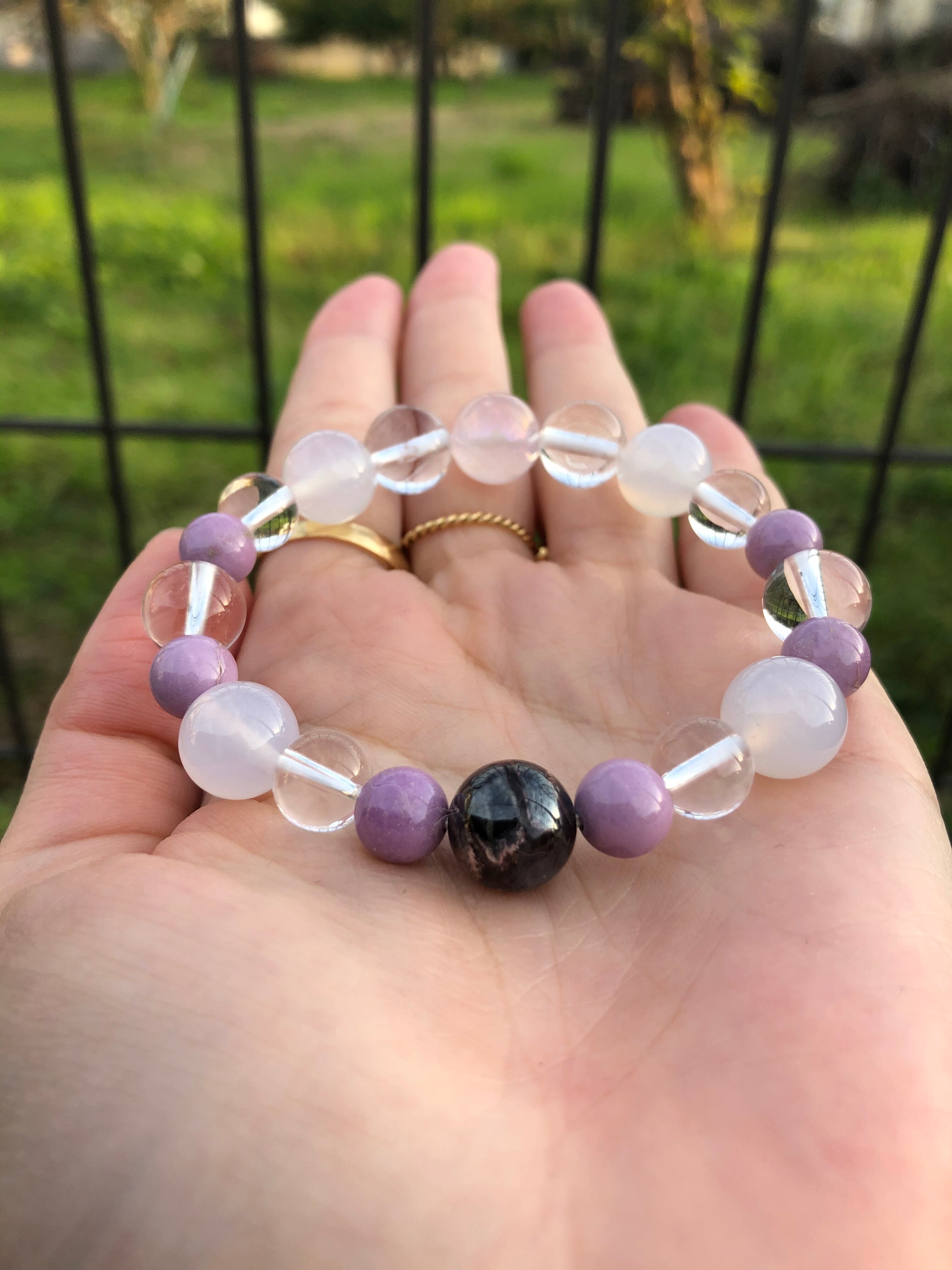 フォスフォシデライト、スギライト、クリスタル、ホワイトアゲート、オーラローズクォーツ