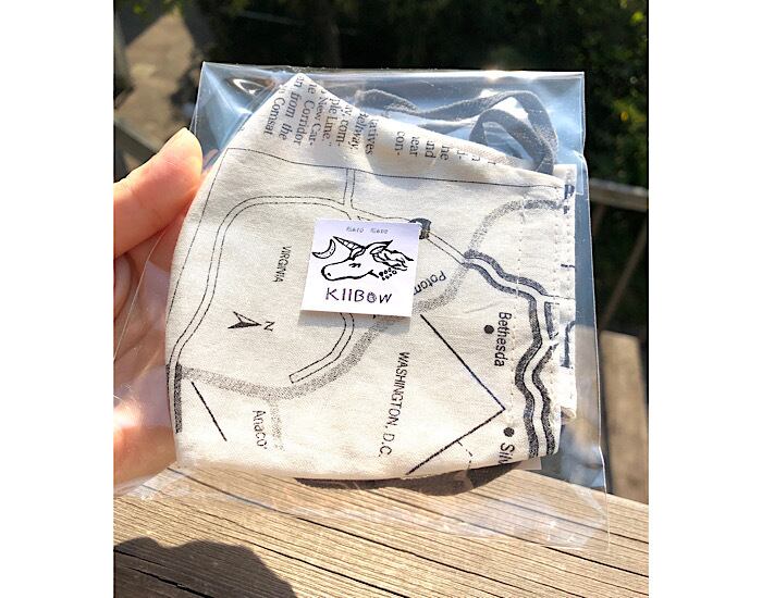 こちらはコットンの地図模様のマスク。
