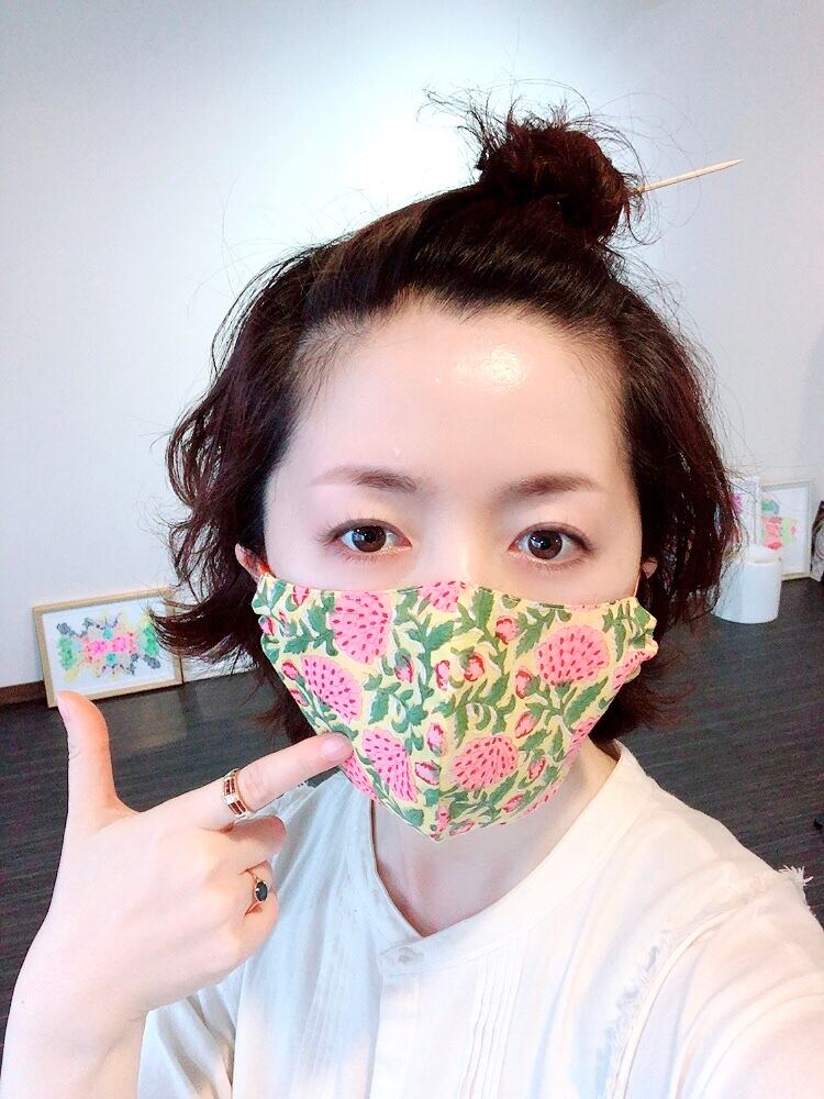 再び素敵なマスクが届きました。心臓の絵でおなじみの画家の斧原由季さんに作成していただいた布マスクです。