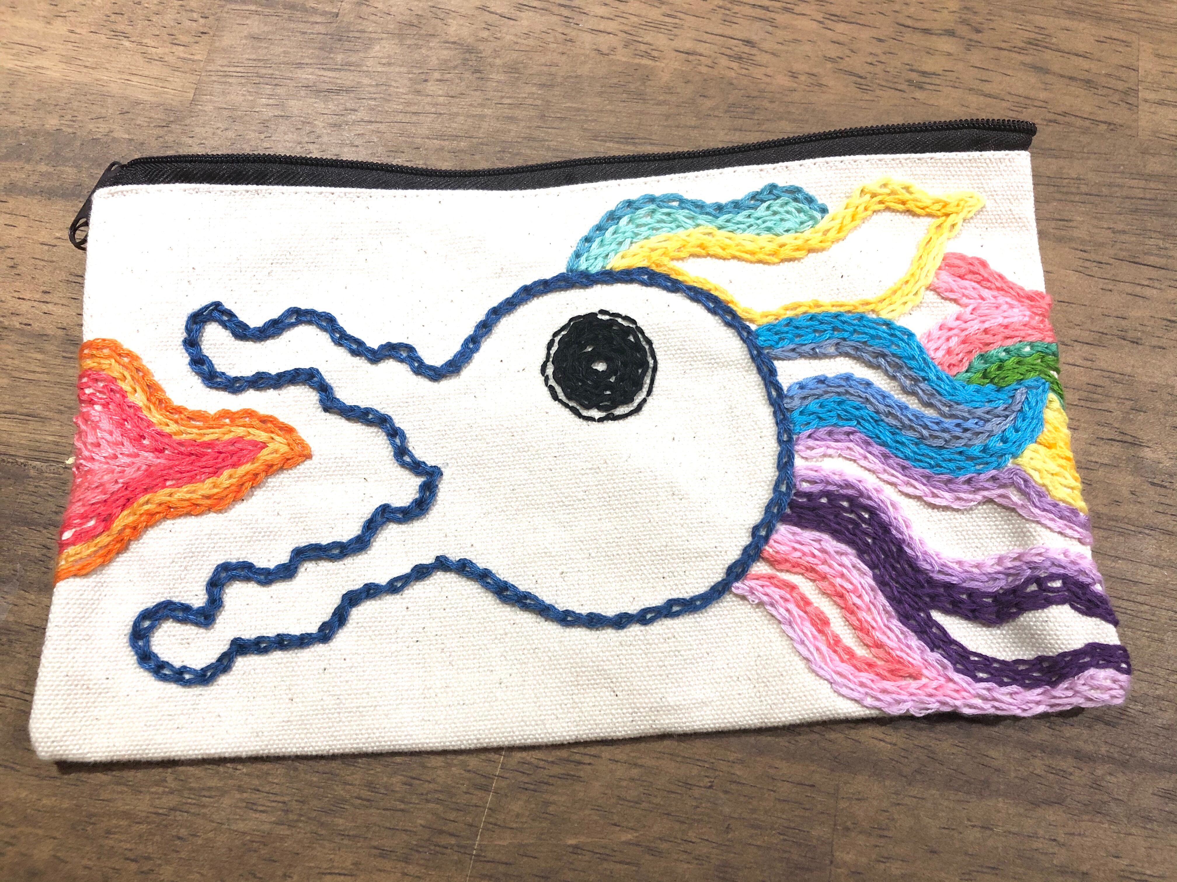 わたしの刺繍シリーズです。今回はわたしの龍神の作品をもとに刺繍したポーチ。