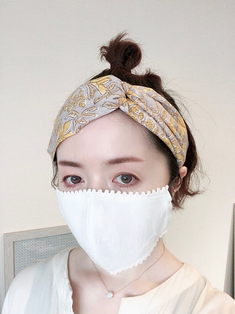 このリネンの布マスクシリーズは、KIIBOWさんが少しずつ集めた素材を組み合わせて作られているため、基本的に同じものを何点も作るということができません。