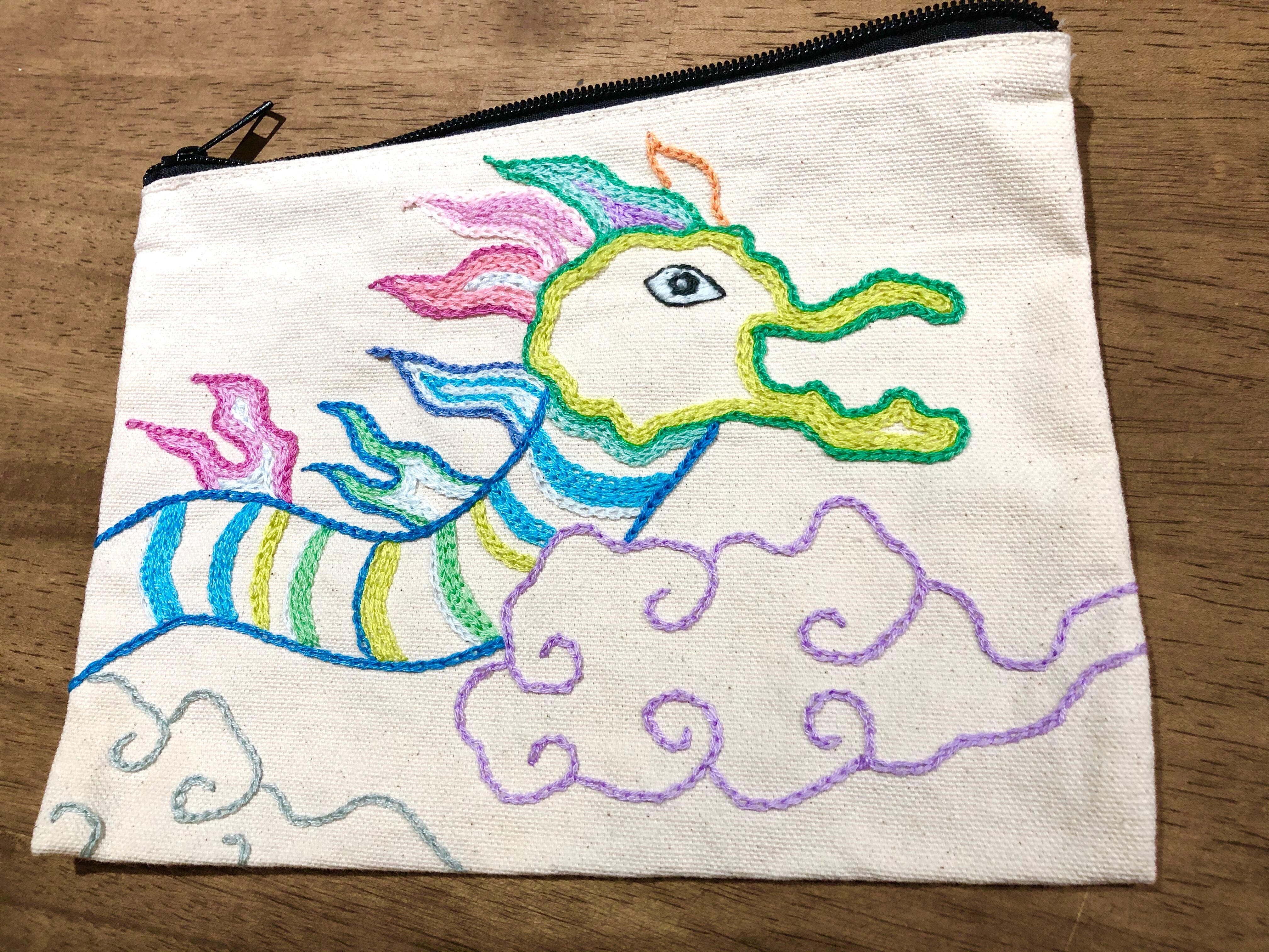 カラフルでパワフルな龍神の裏にはカラフルな波の中で泳ぐ鯨。