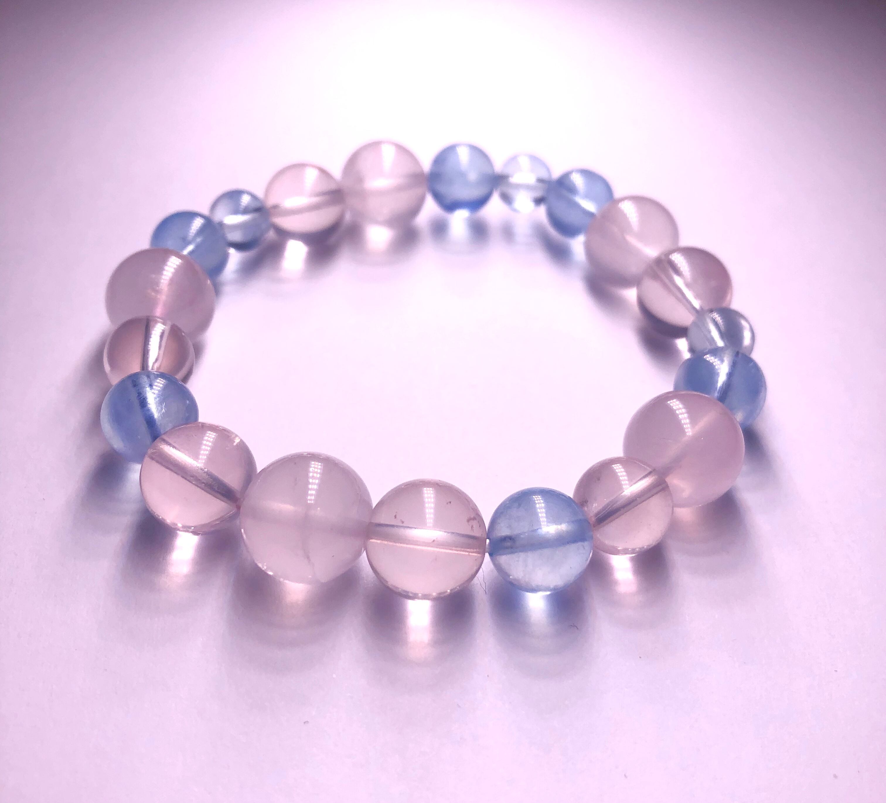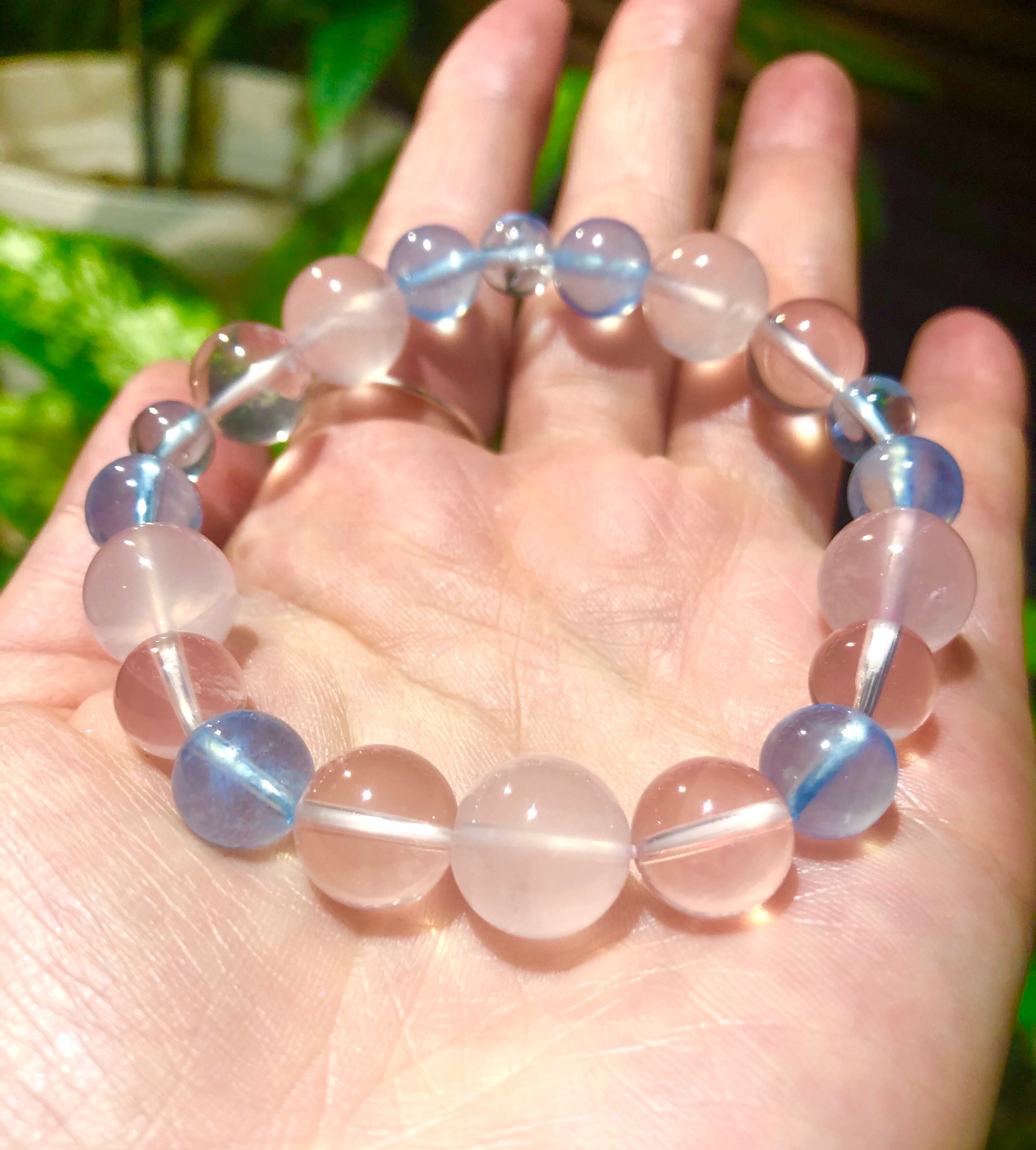 スターローズクォーツ、ミルキーローズクォーツ、アクアマリンのブレスです。