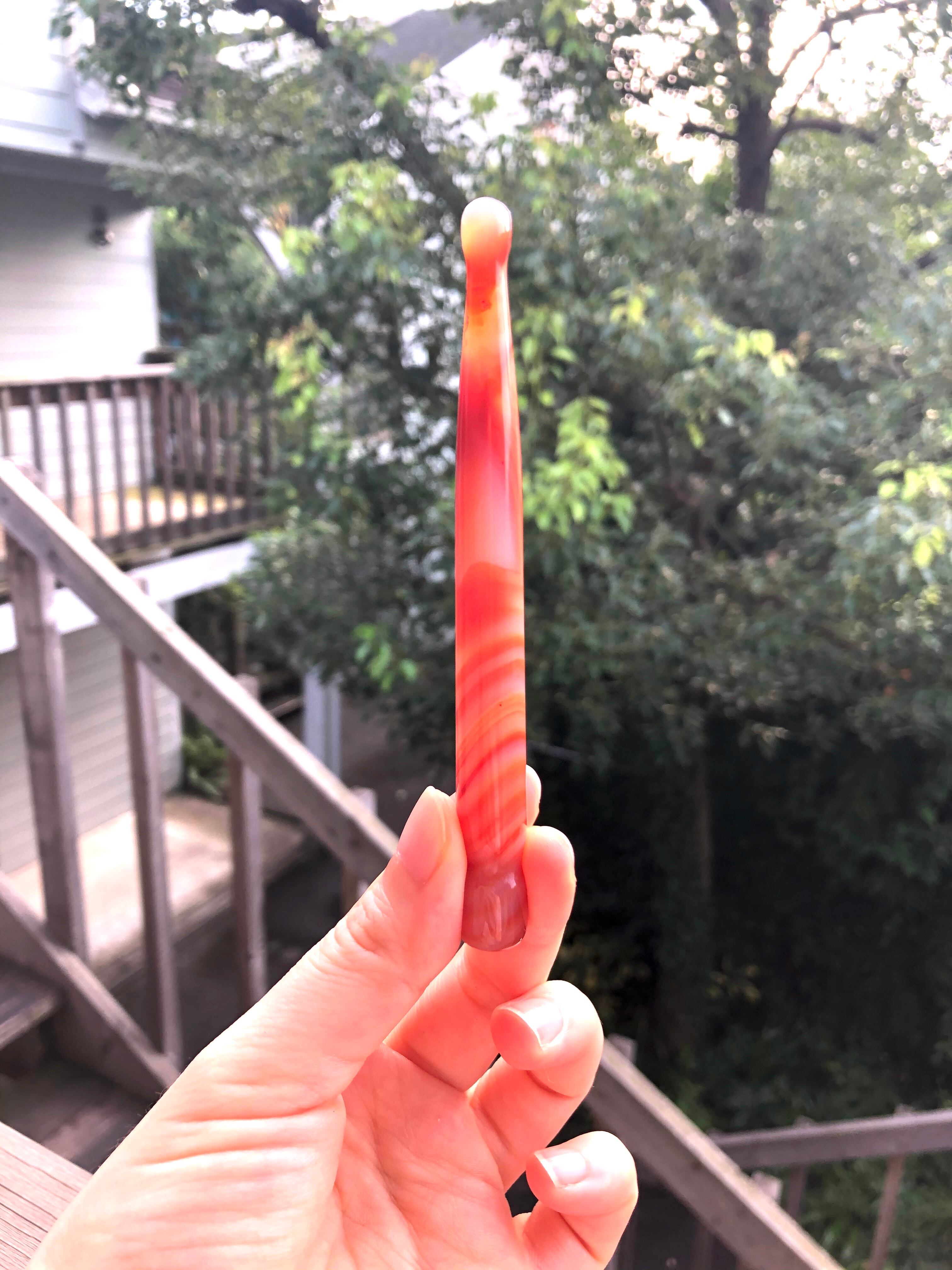 小さなアイリスクォーツと瑪瑙のマッサージワンドのセットです。