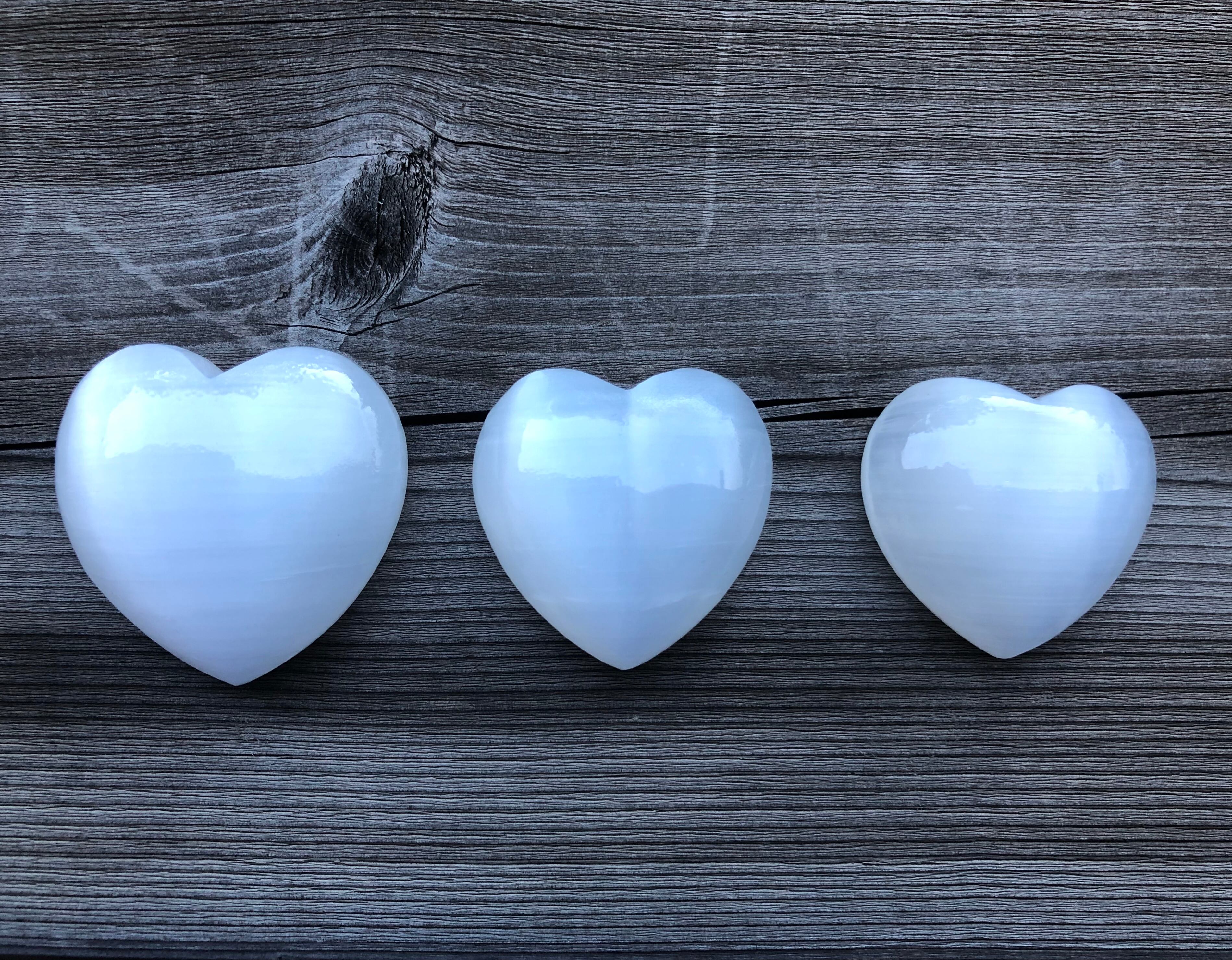 キャッツアイセレナイト3点のうちの中間の大きさのハート型です。