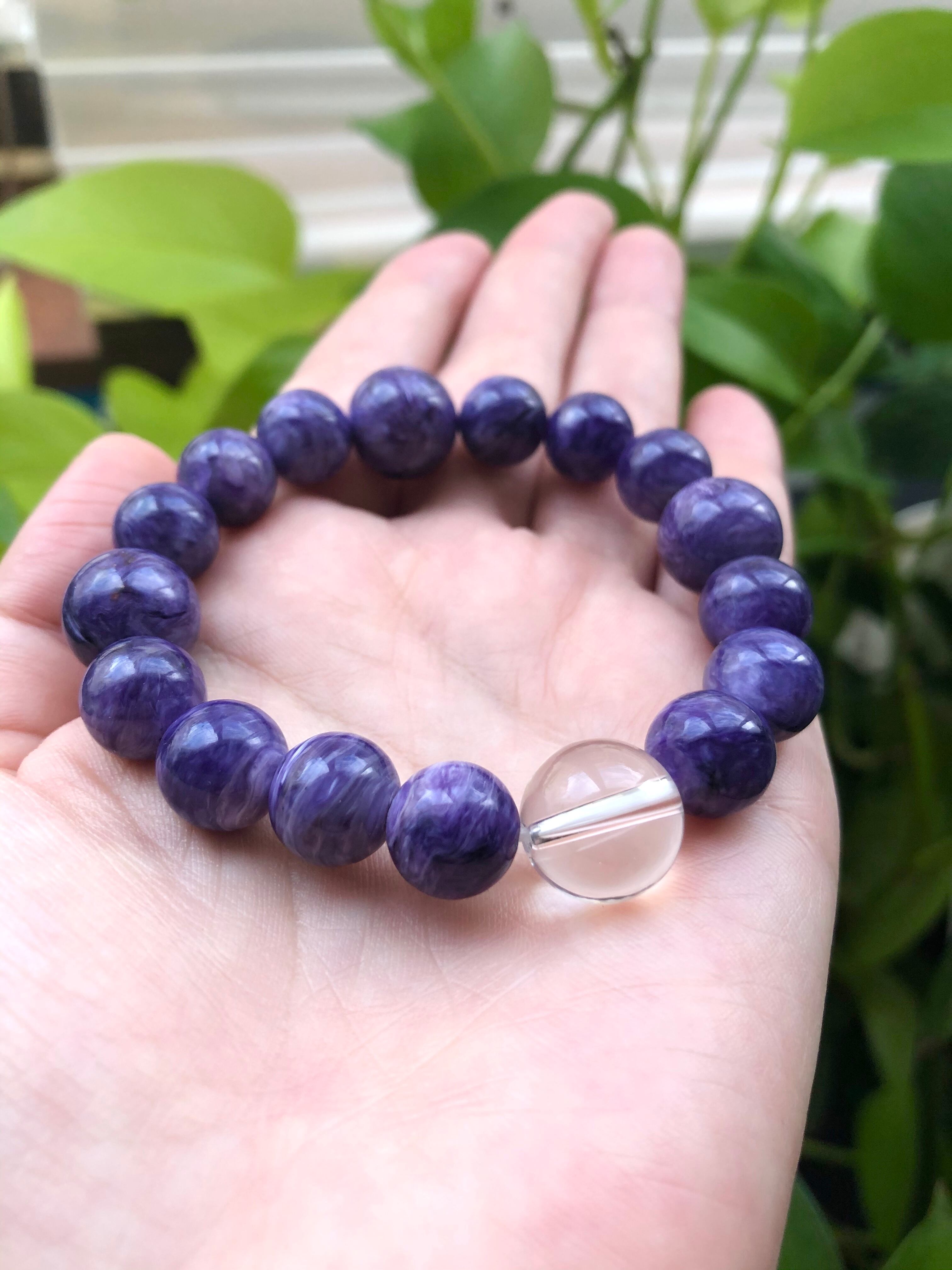 チャロアイト10mm、12mmと、水晶12mmのブレスです。