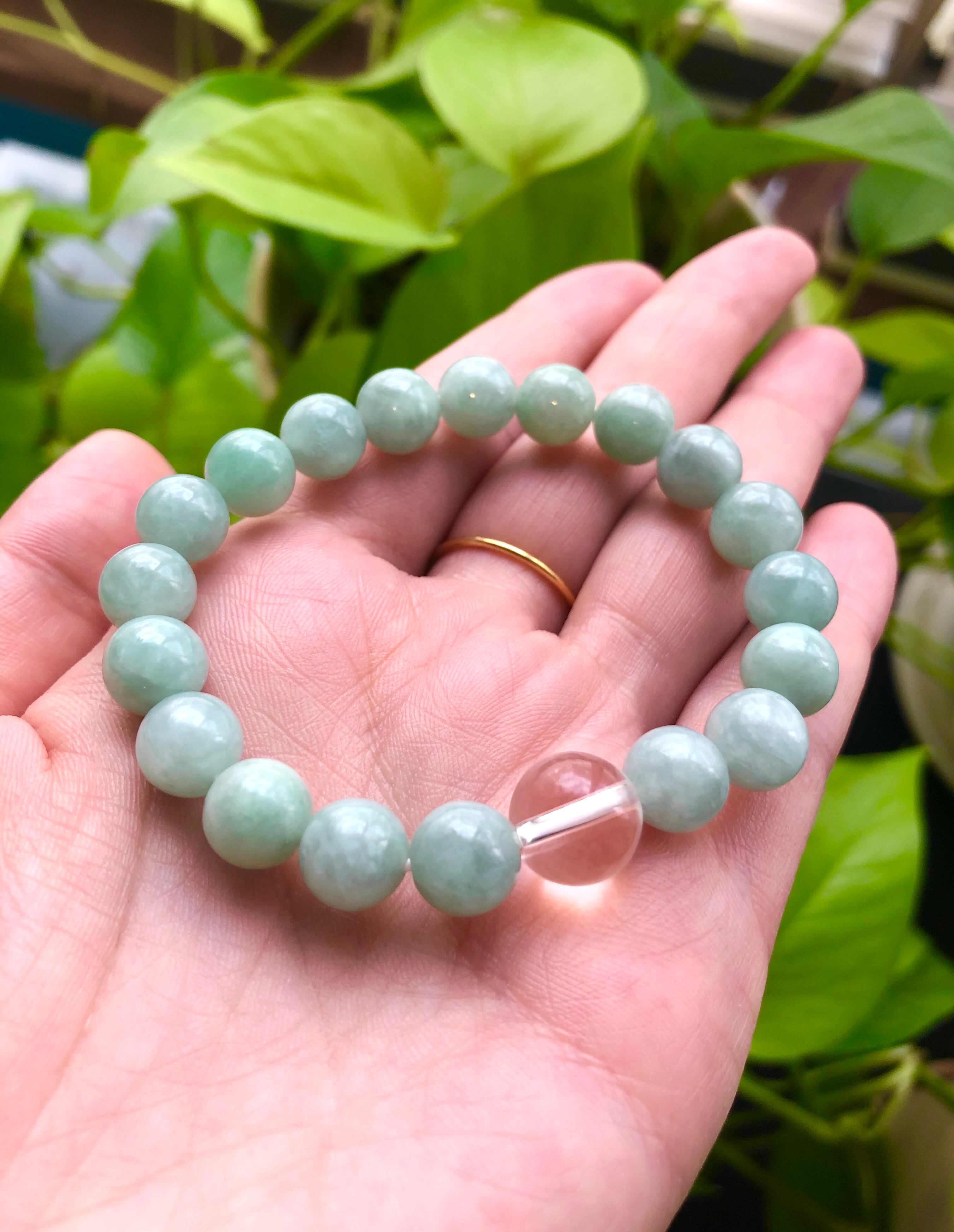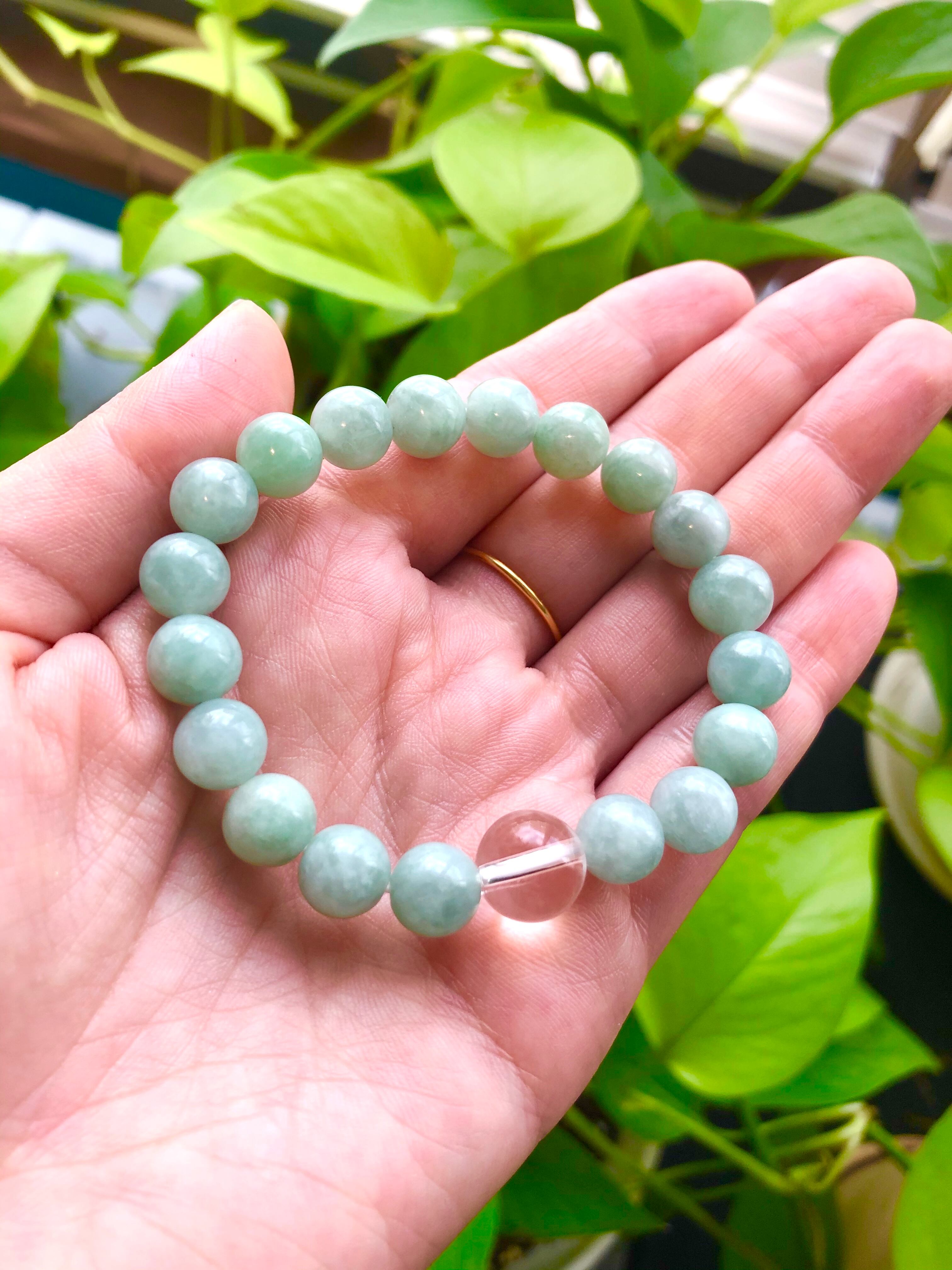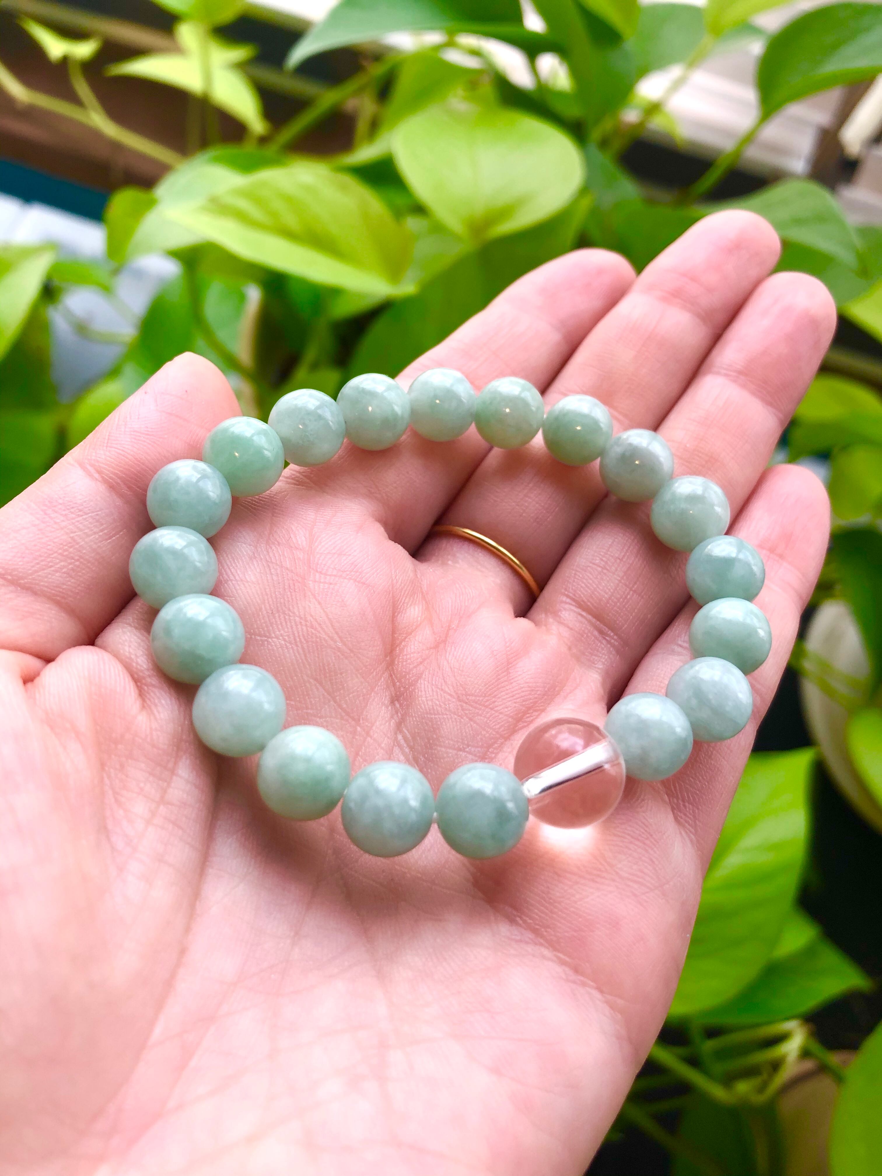 とても愛らしいグリーンの翡翠8mmと水晶10mmのブレスです。