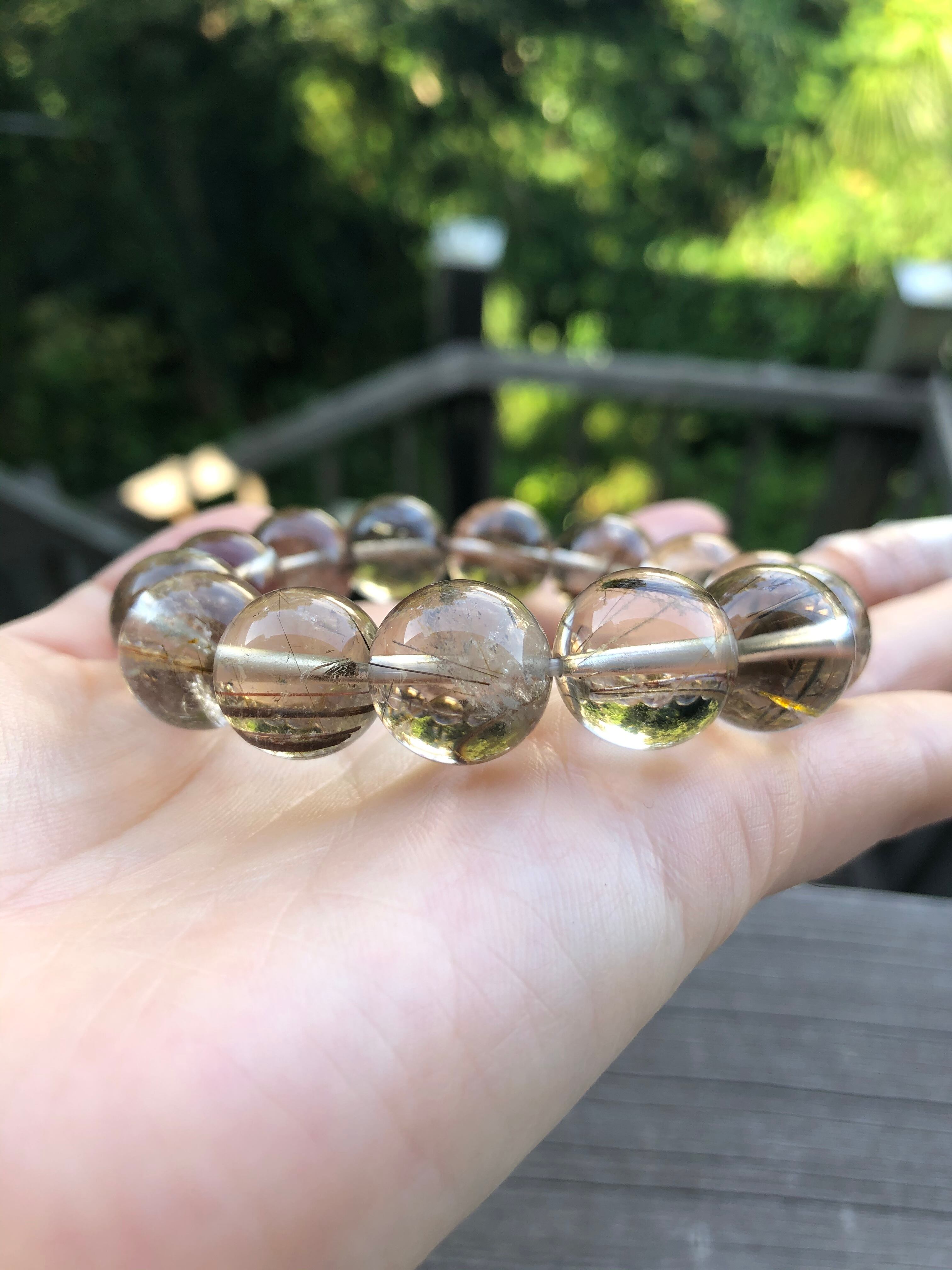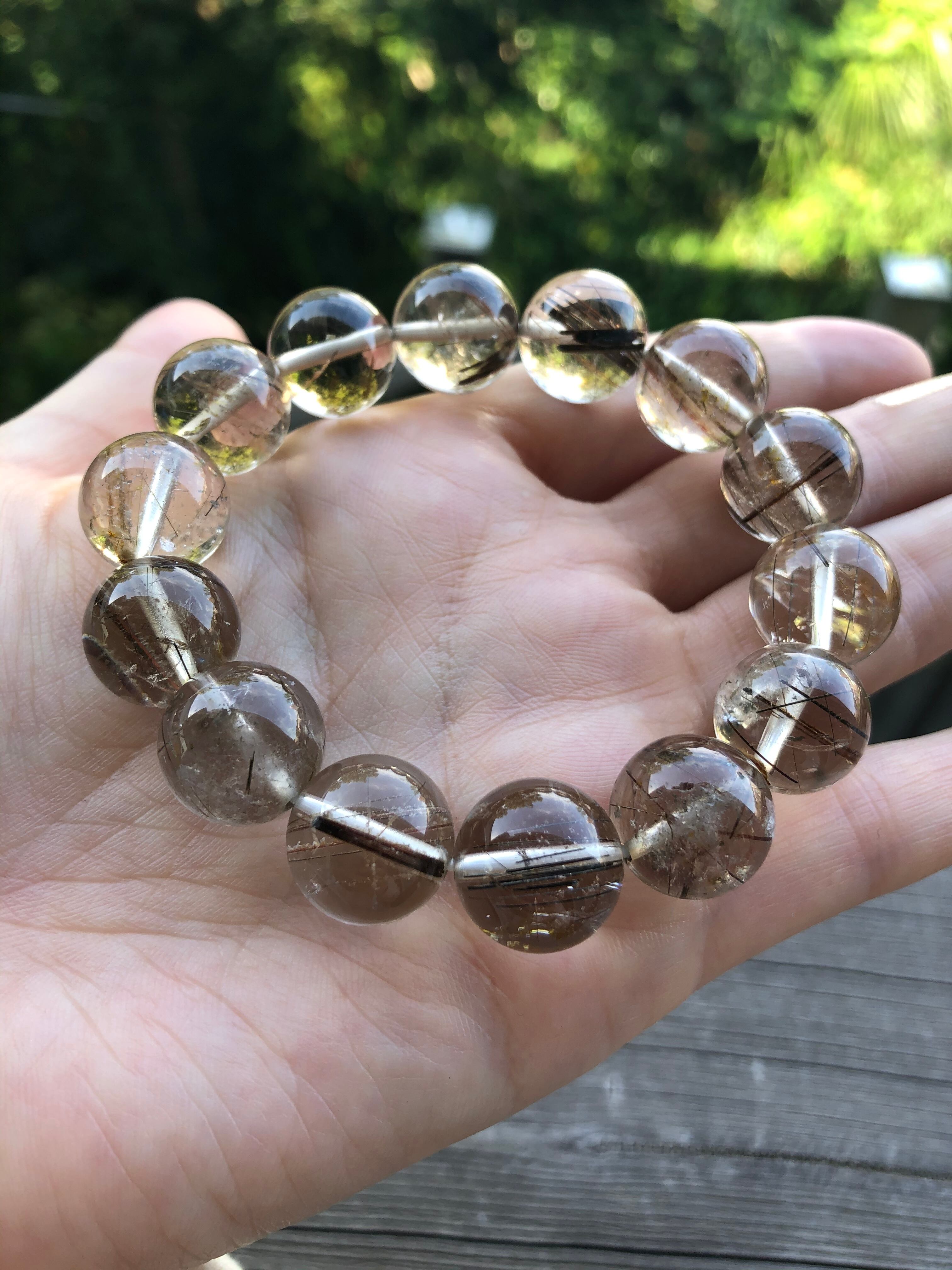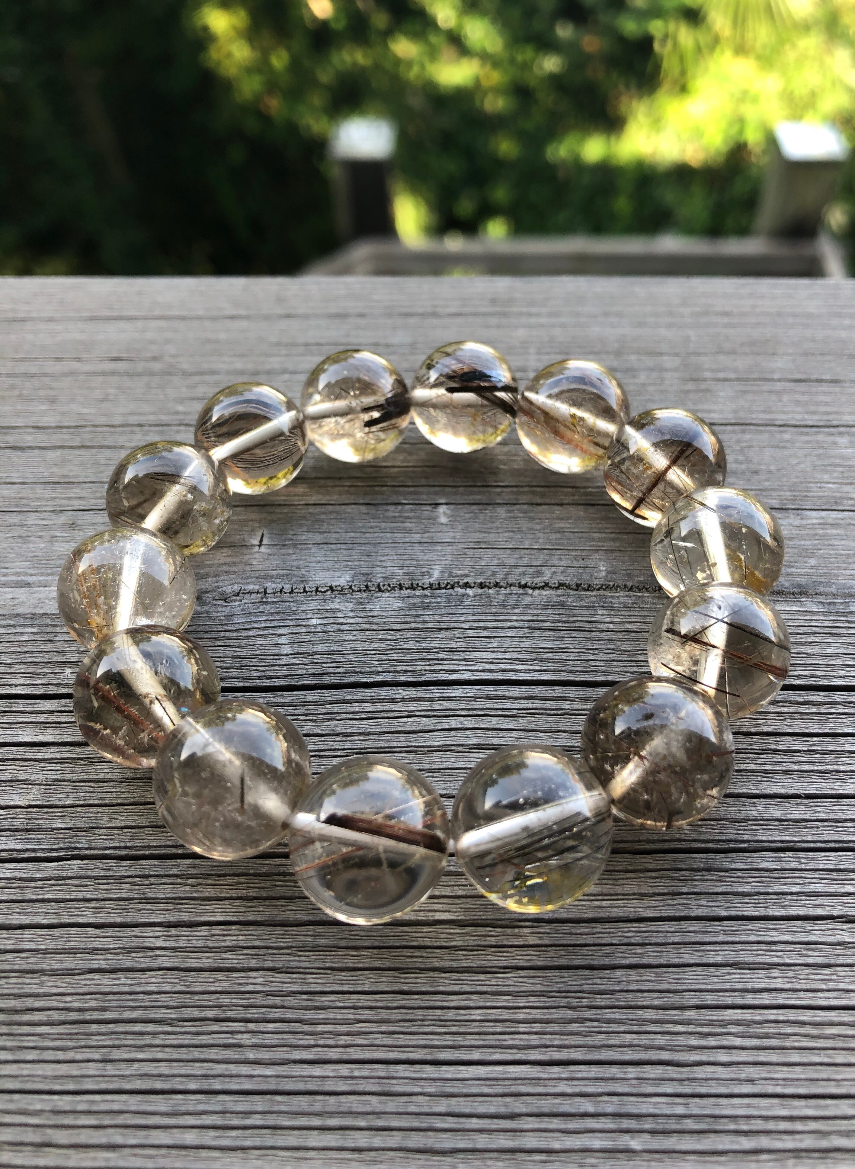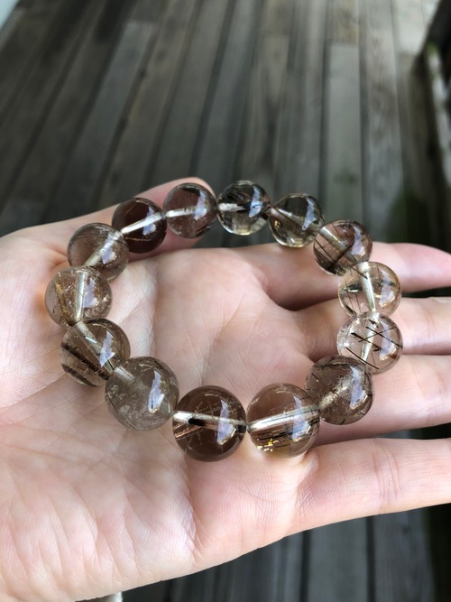 スモーキーブラックルチル13.5mm玉のブレスです。