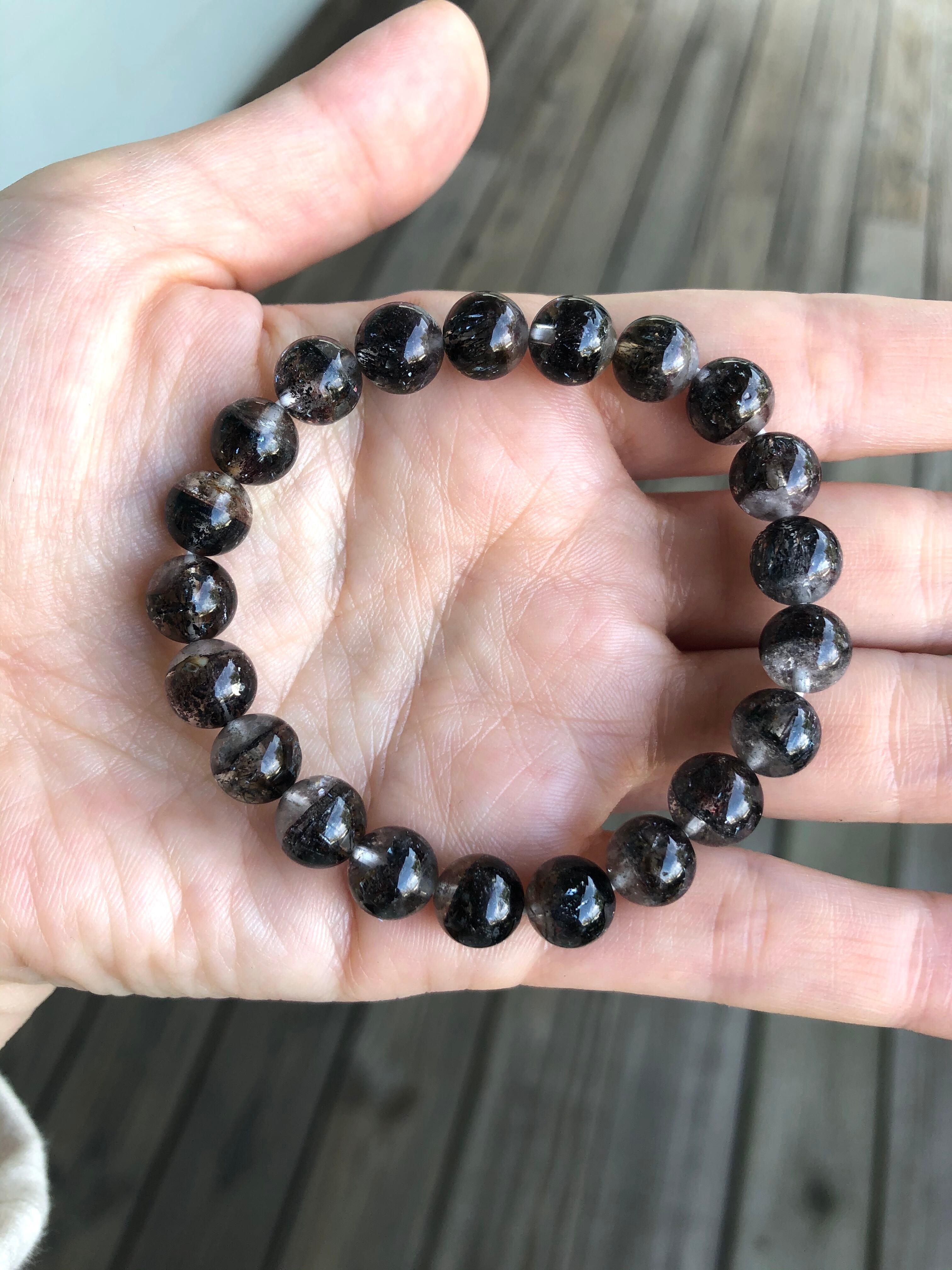 スーパーセブン、特にブラックスーパーセブンにはスモーキークォーツが含まれておりますが、やはりその他様々な鉱物の融合された石なので、スモーキークォーツ単体では有り得ない、それぞれの鉱物のエネルギーの相乗効果があります。