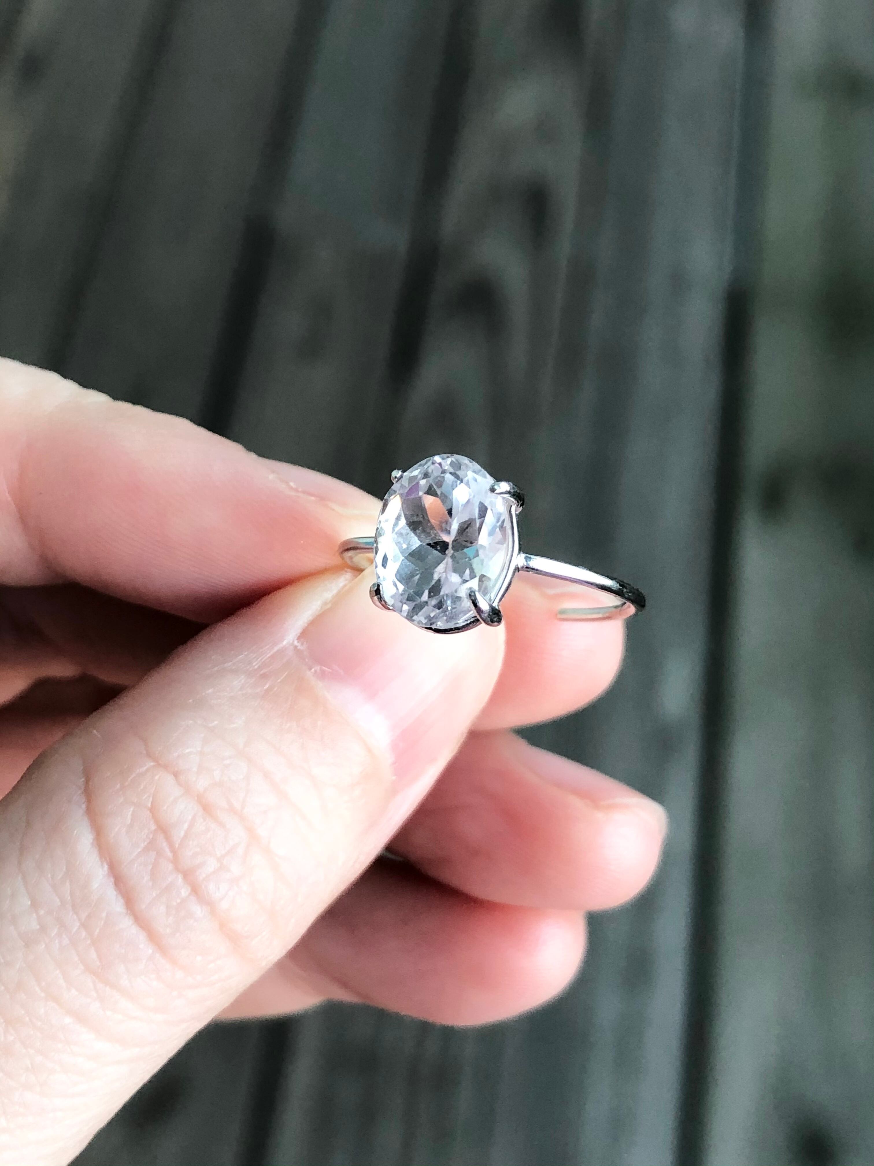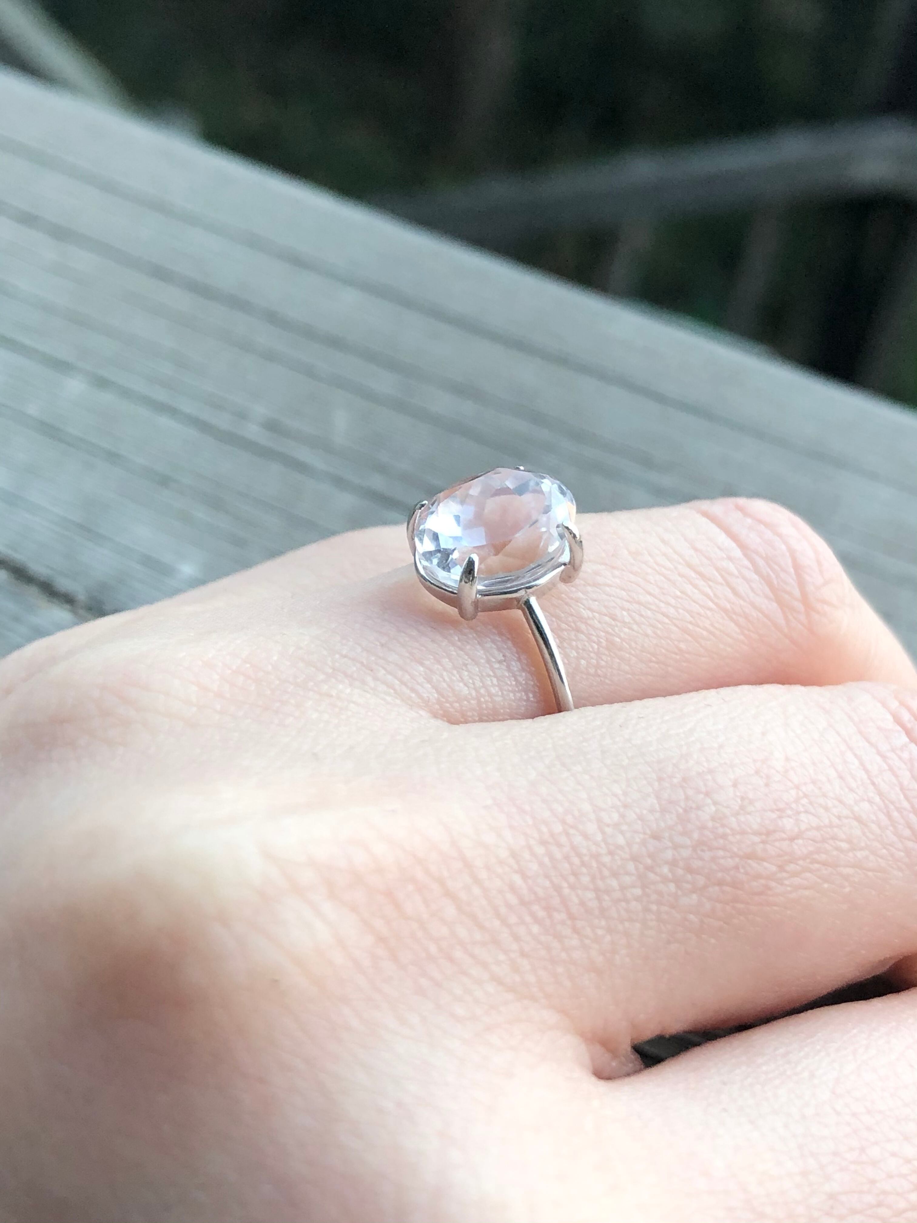 この石のファセットカットの尖った面(裏面)が大きいため、指に当たってしまうので、大きめのサイズにして着けることをおすすめいたします。