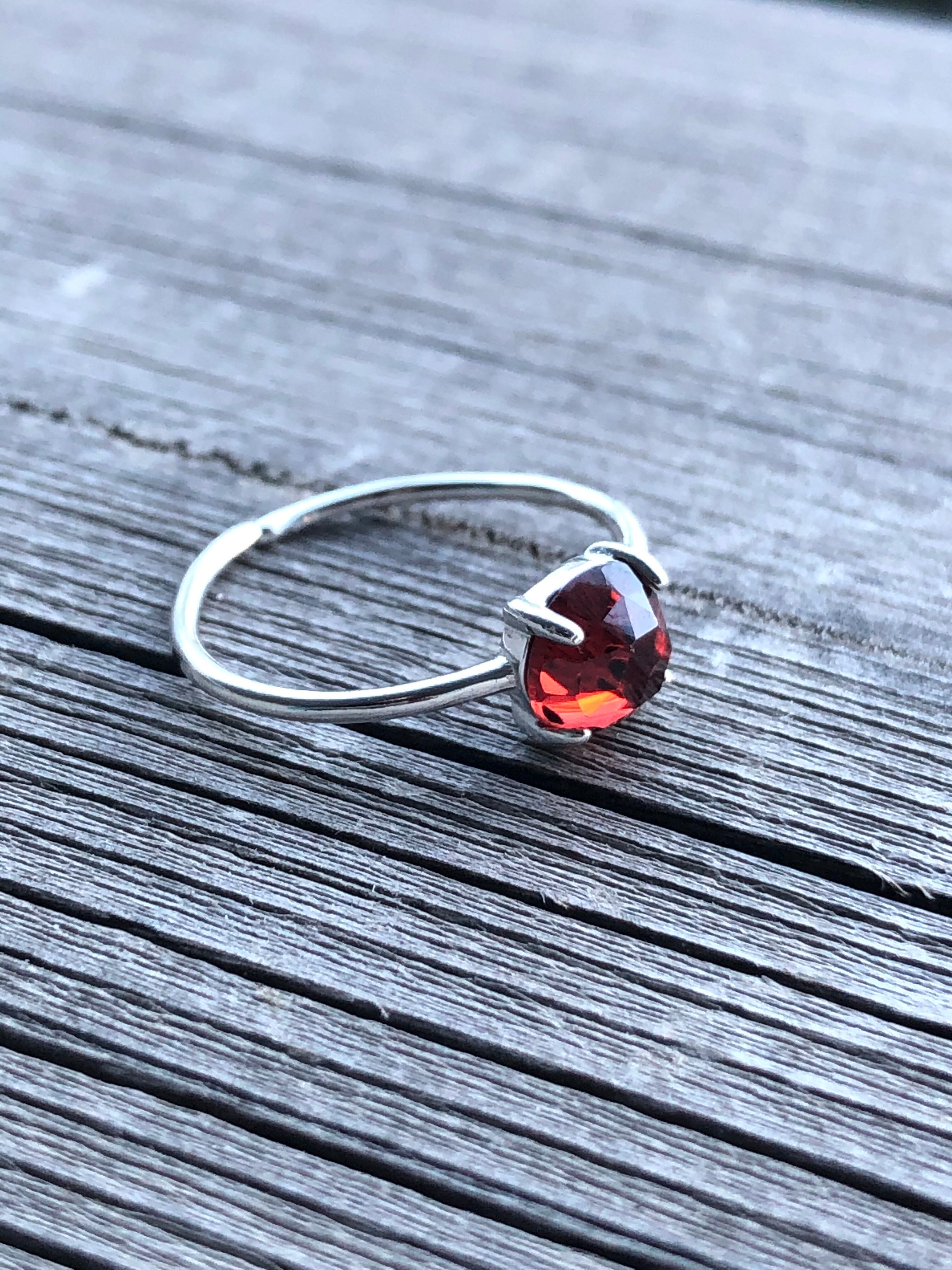モザンビークガーネット6mm のラウンドローズカット、シルバーリングです。