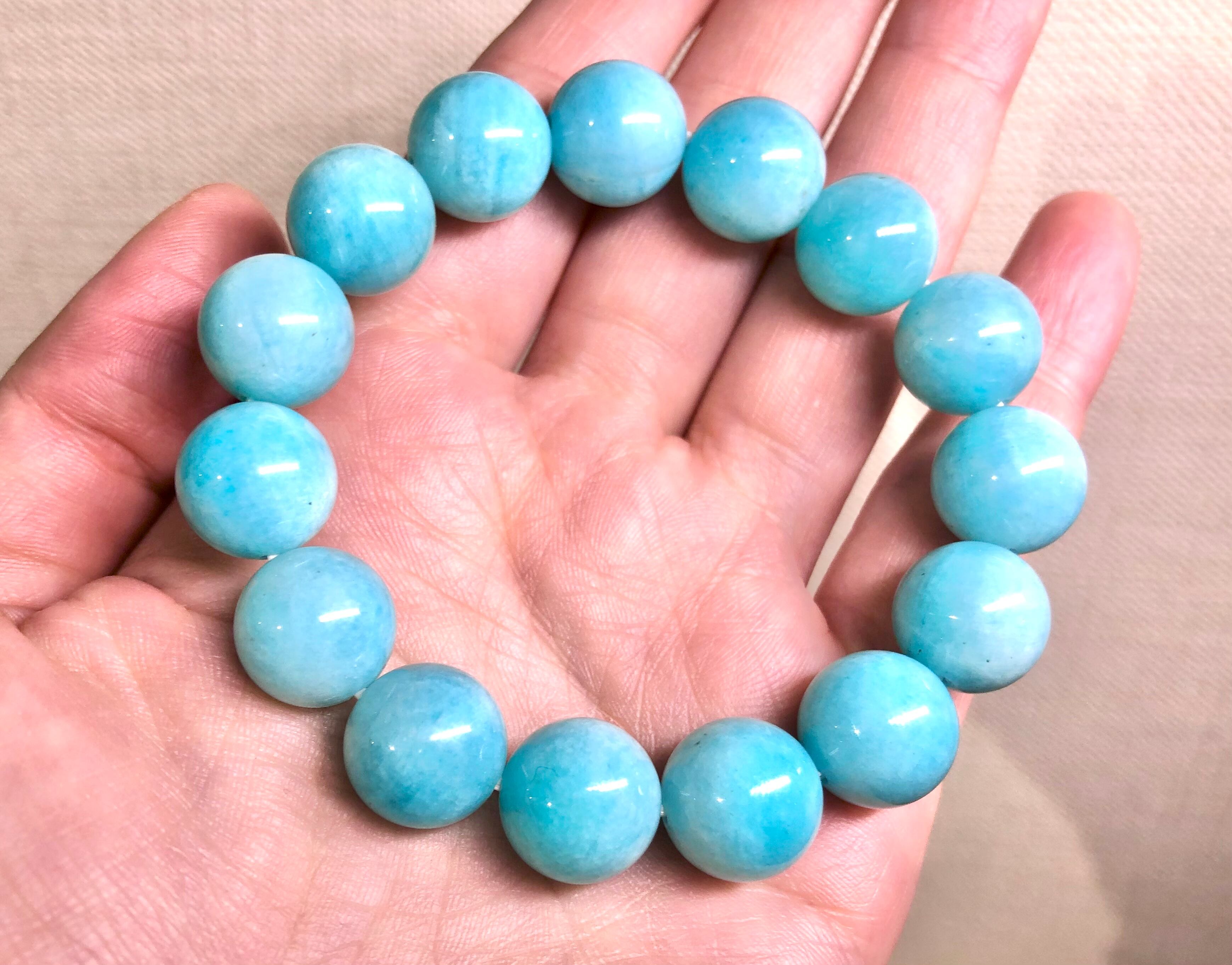 ペルー産アマゾナイト12ミリ玉ブレスです。