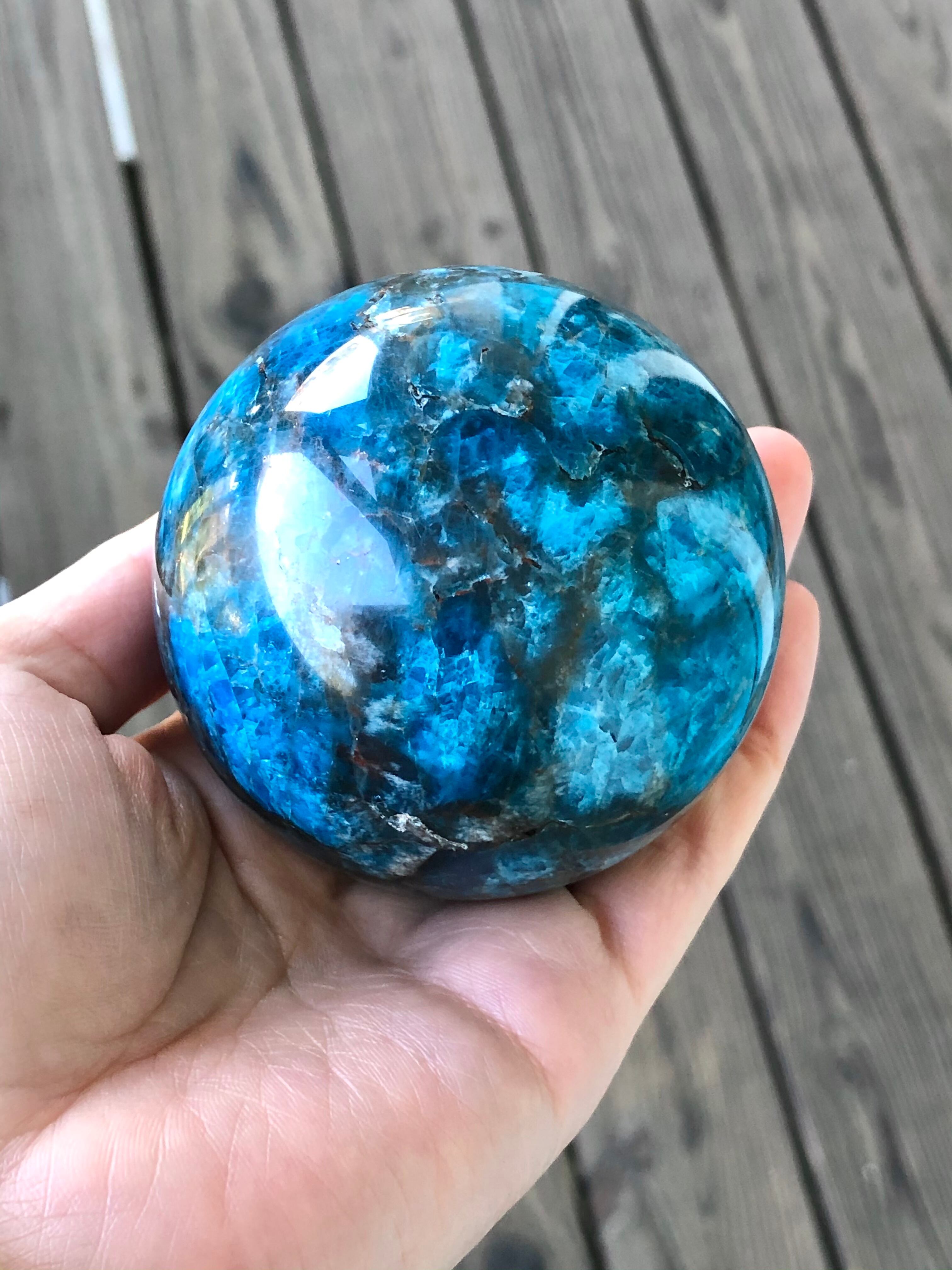 ずっしりとした重さと存在感のあるブルーアパタイトの丸玉です。