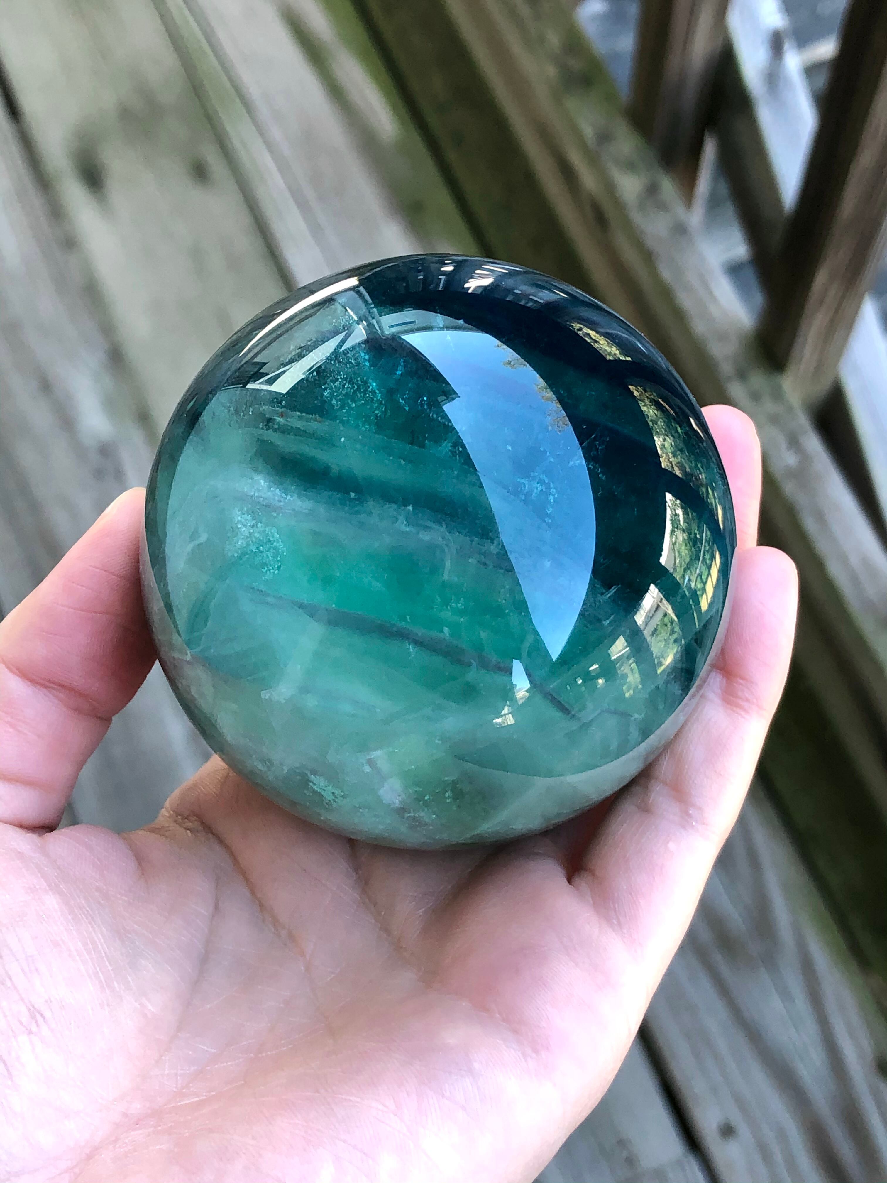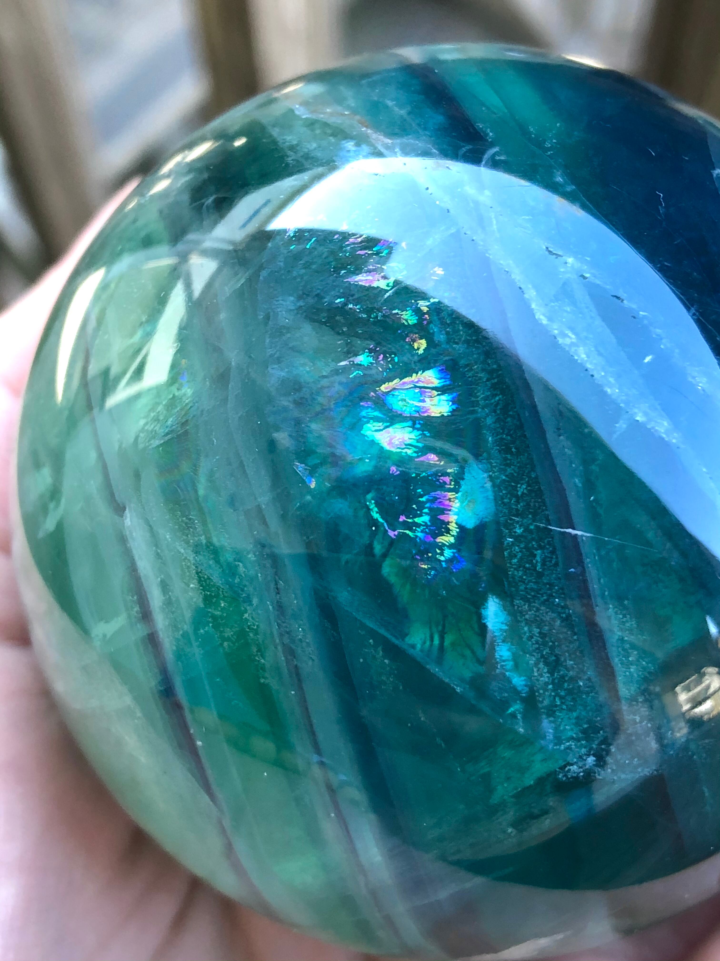 深いブルーとグリーンの大きめのフローライト丸玉です。