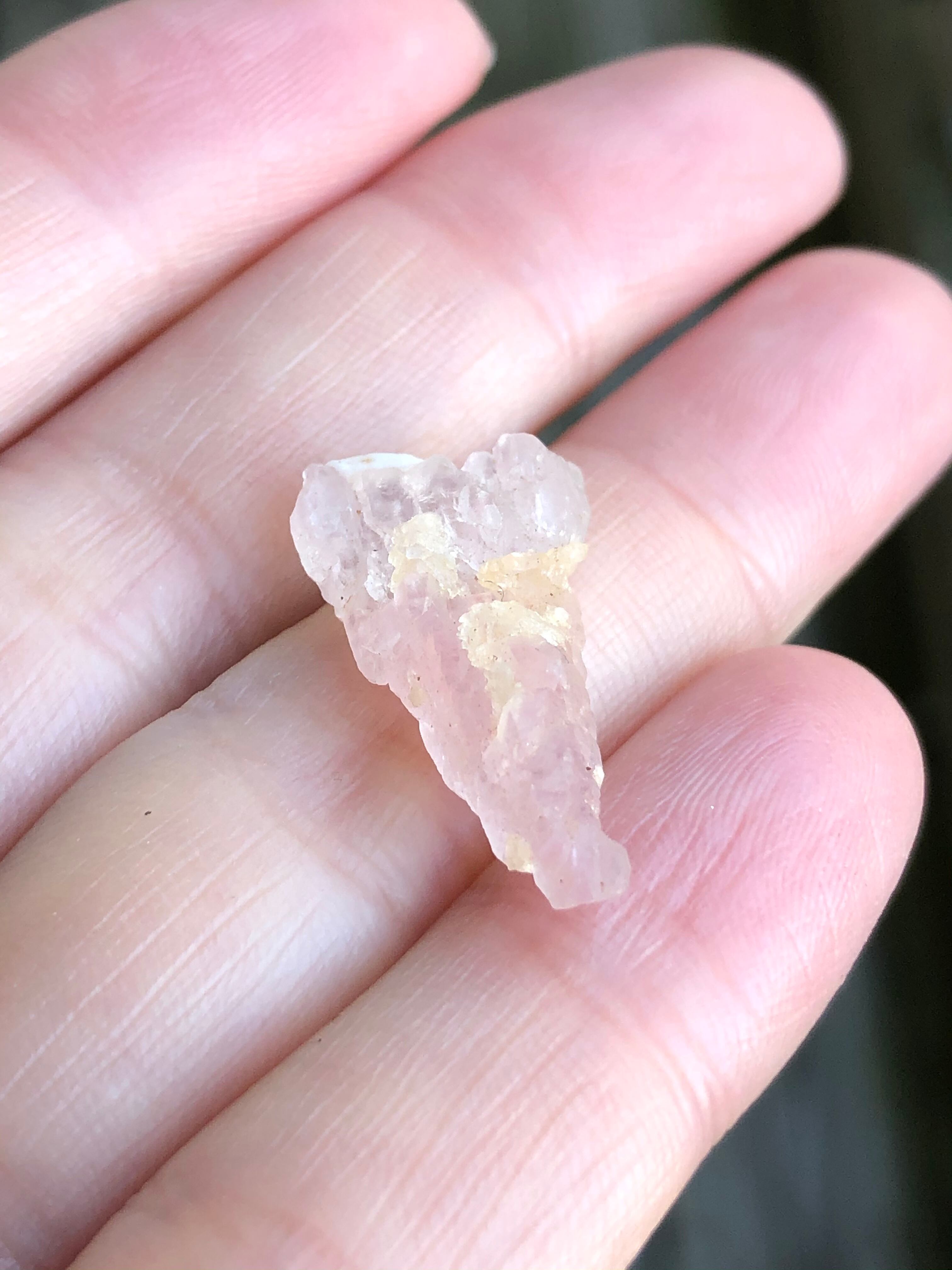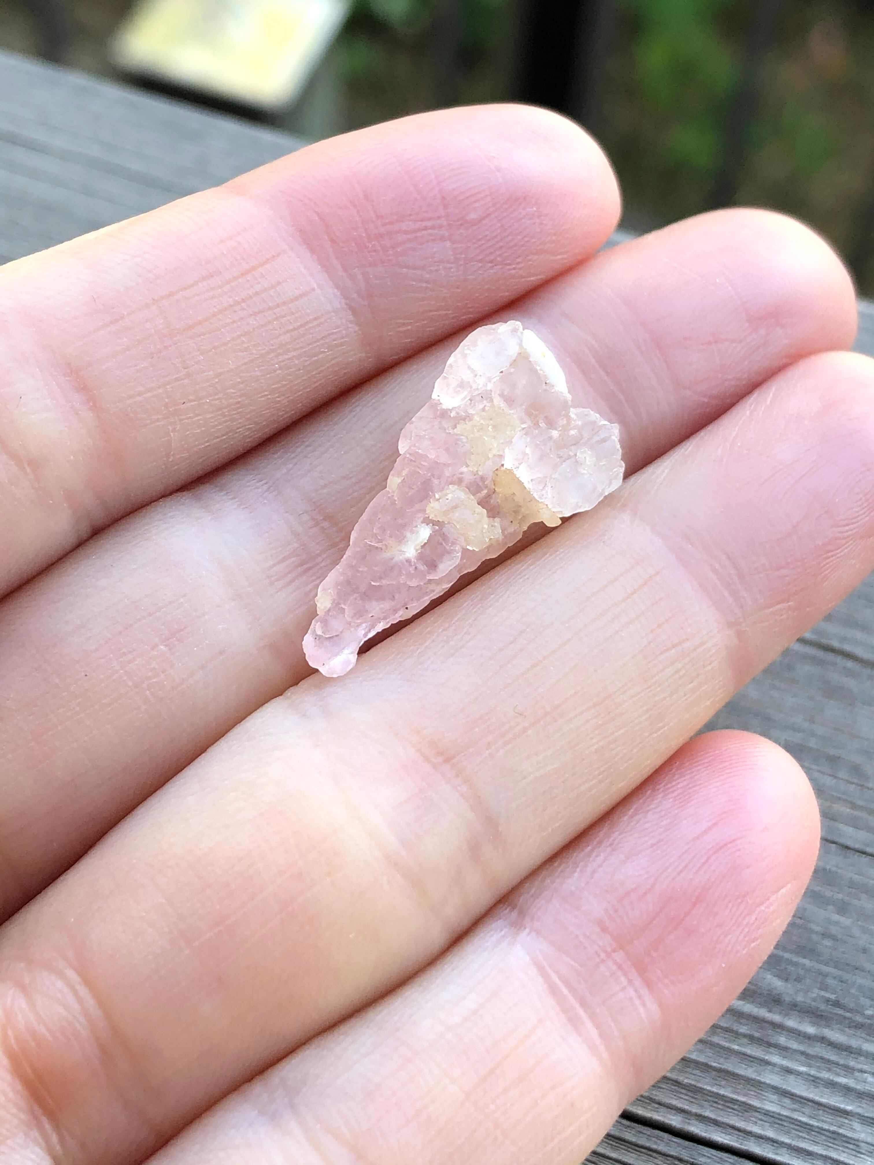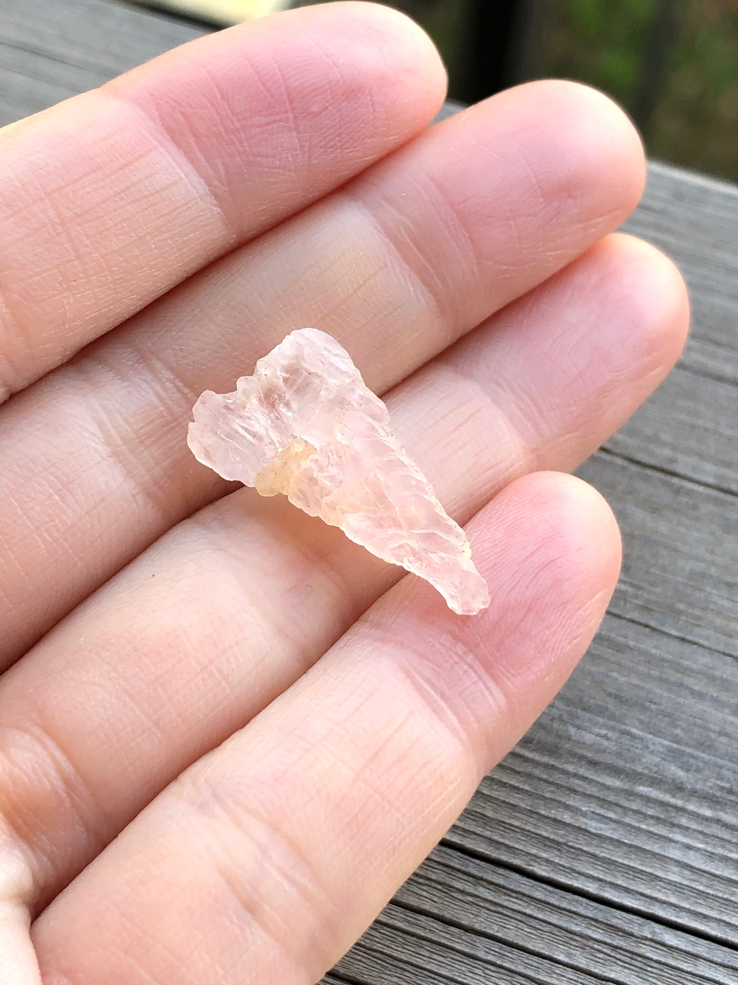 ローズクォーツはとてもたくさん市場に出回っていますが、こうした結晶が見て取れる原石の状態ではレアです。