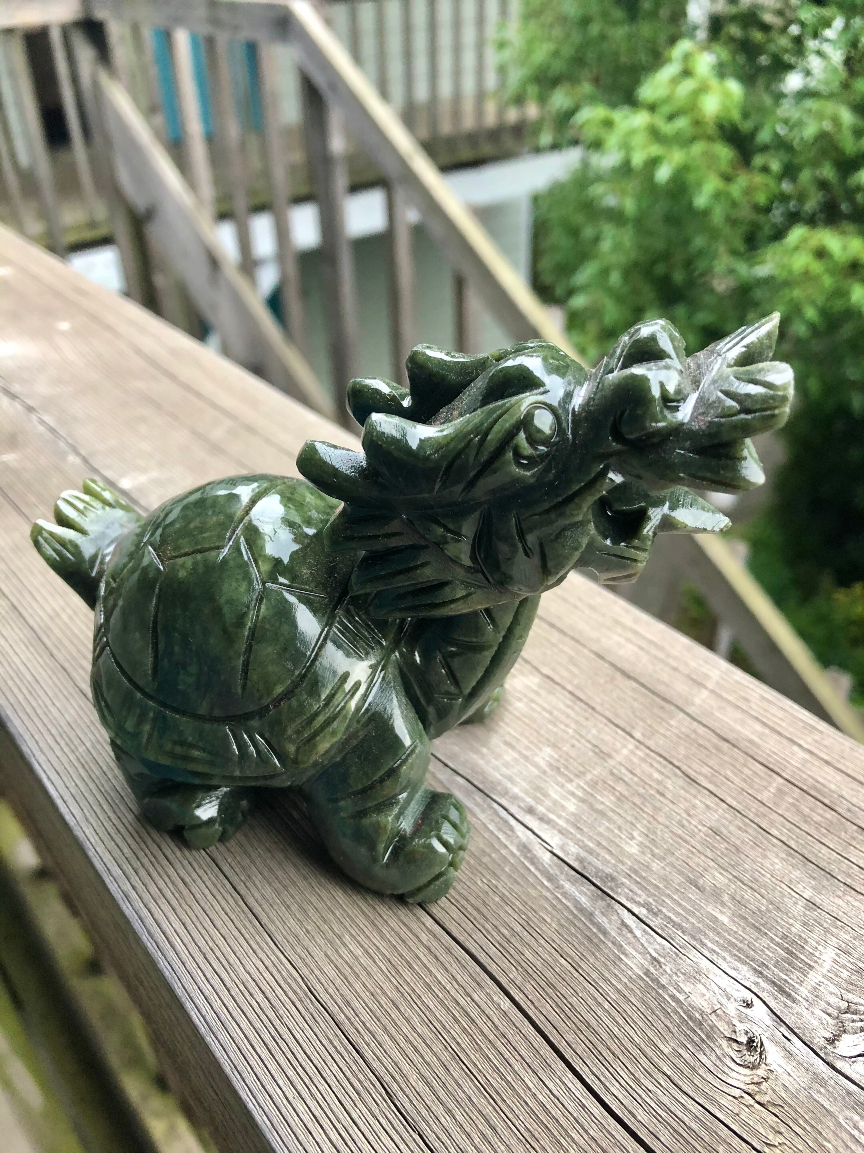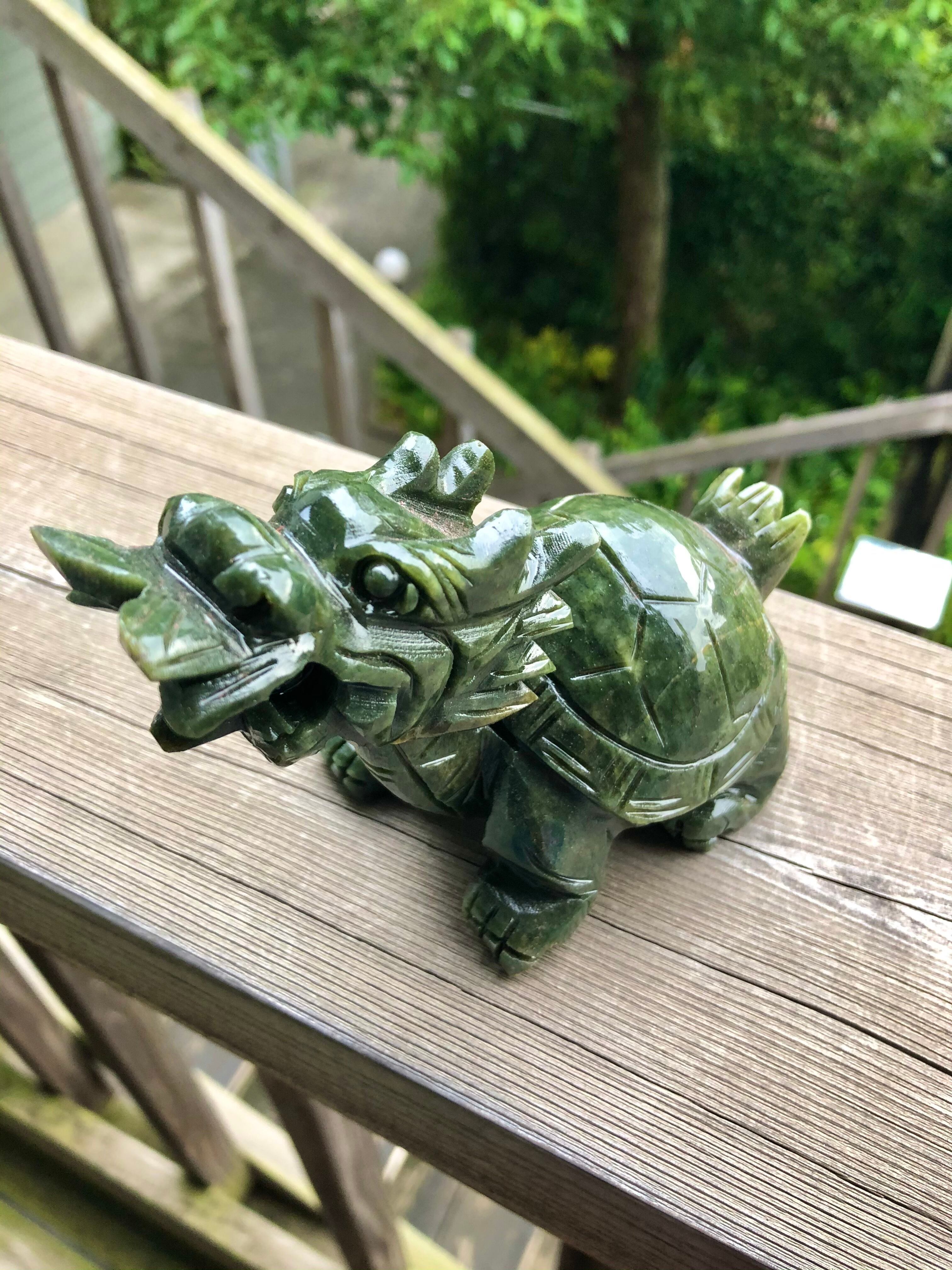 中国産の翡翠でできた龍亀(ろんぐい)です。