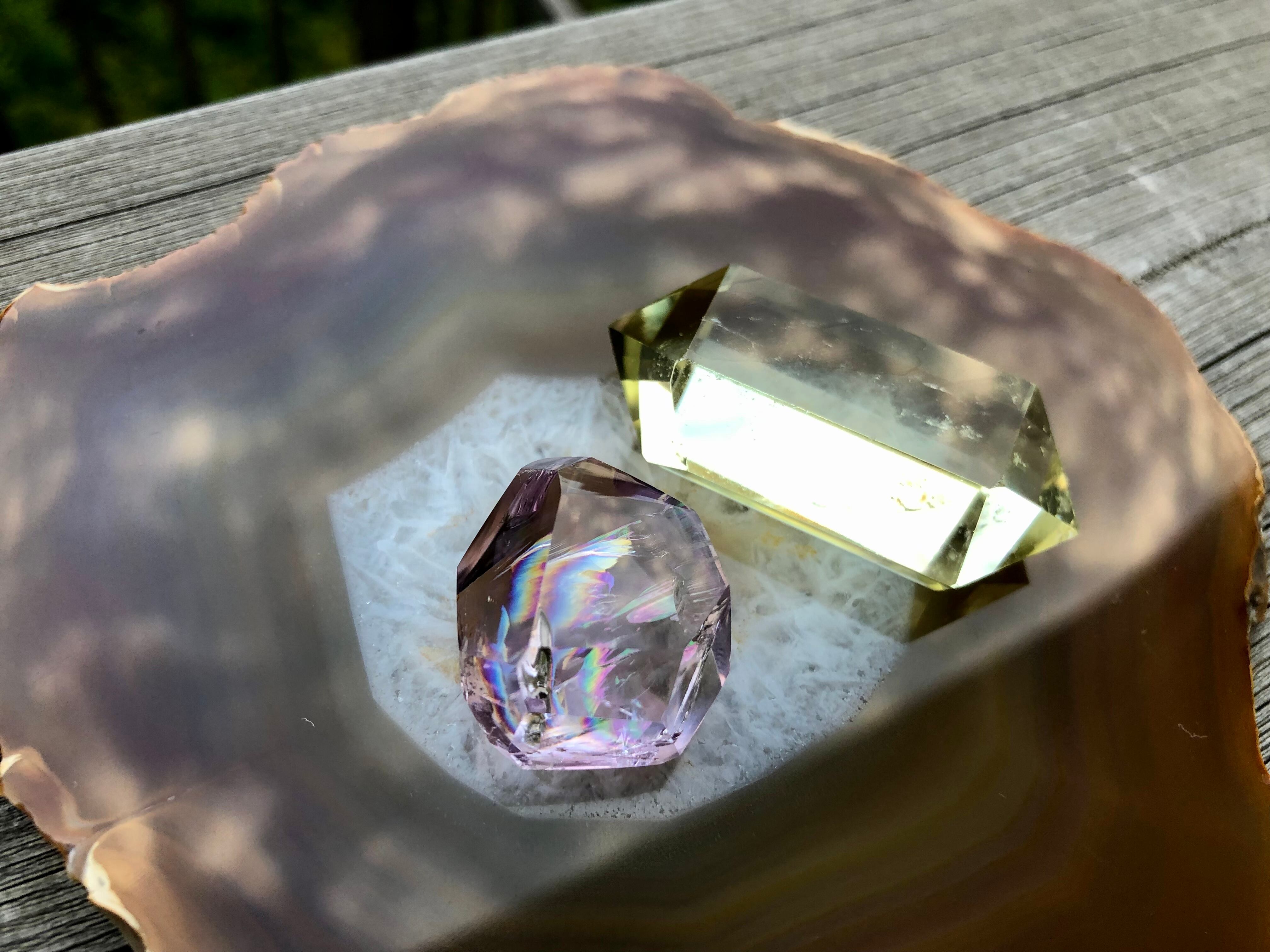 ブラジル産の大きなアゲートと、ブラジル産レインボー入りのアメシスト、ブラジル産非加熱のシトリン。