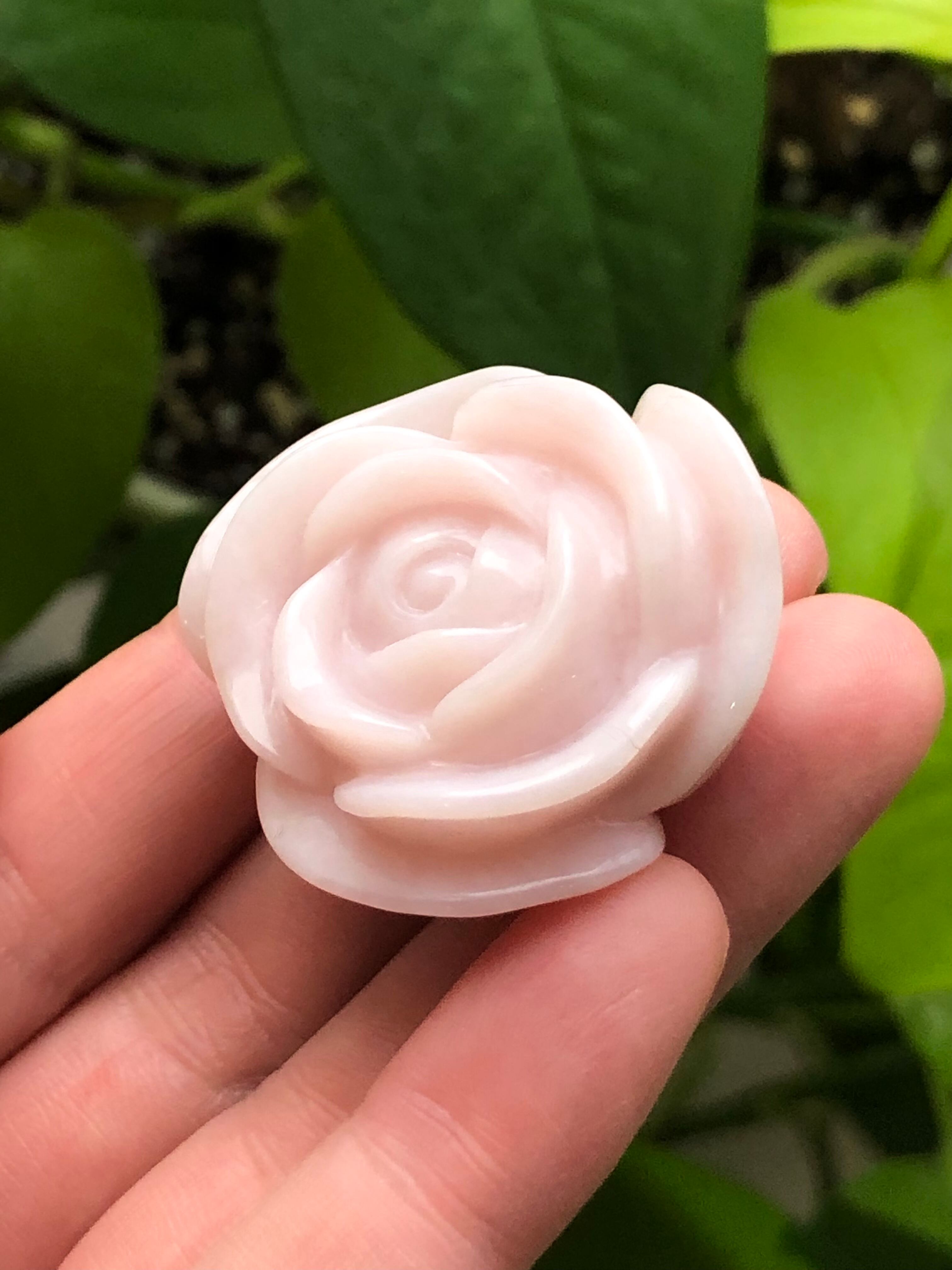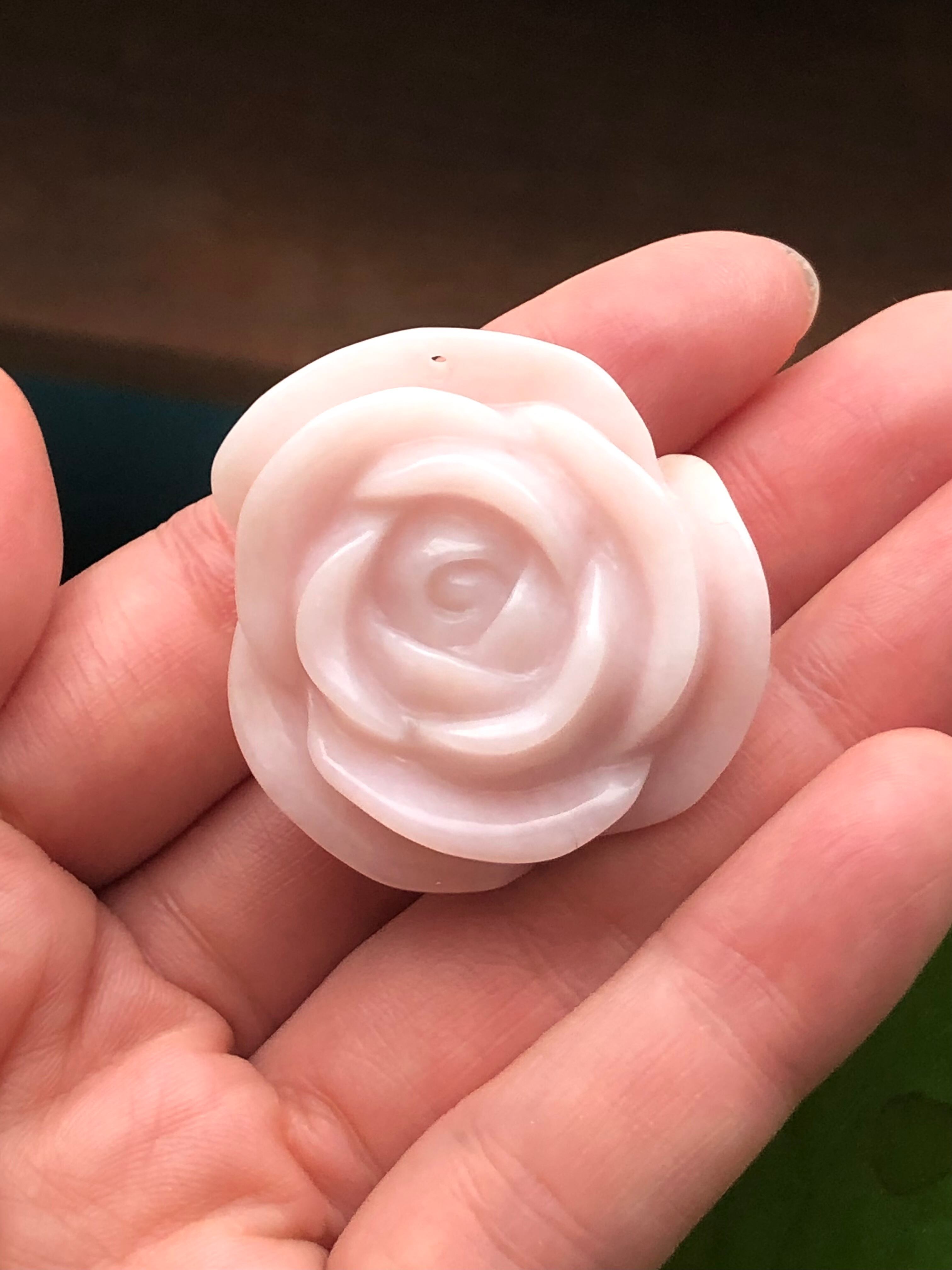 素晴らしいエネルギーのバラの形にカービングされたピンクオパールがやってきました。