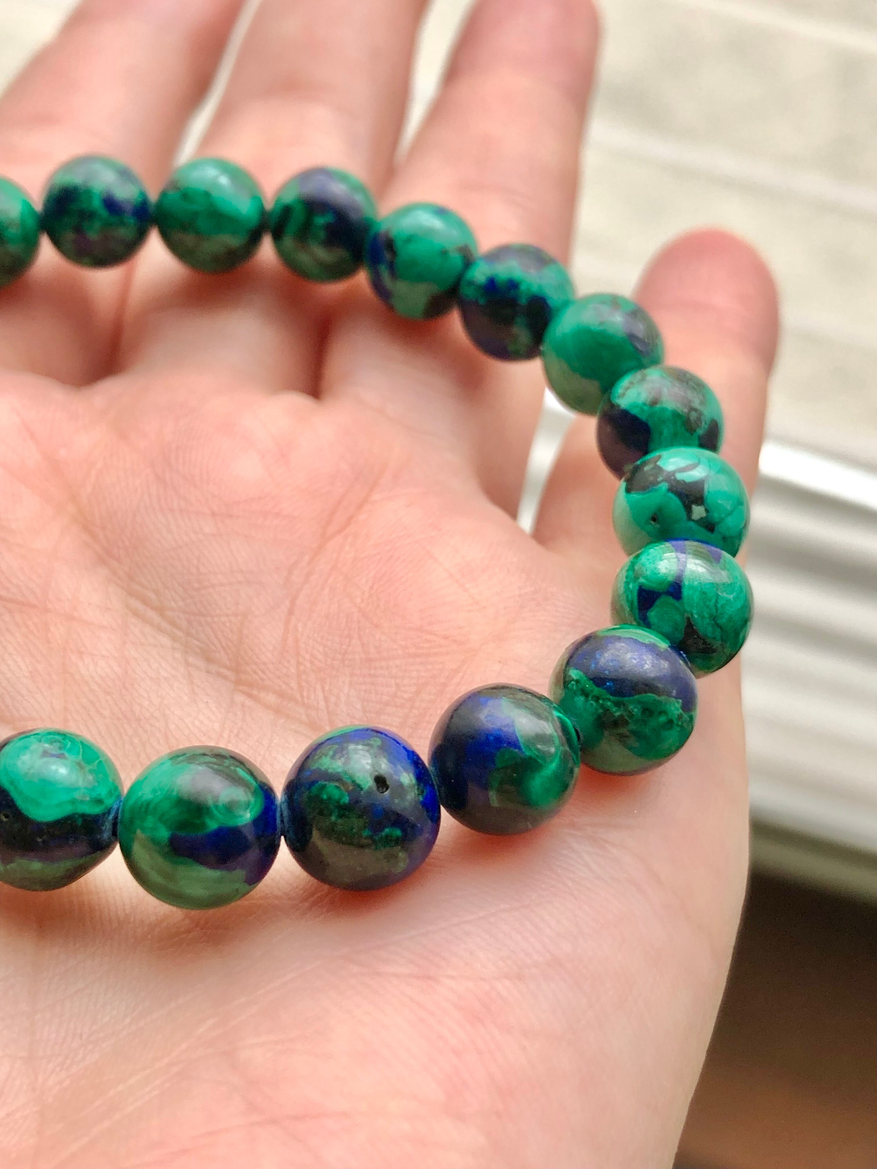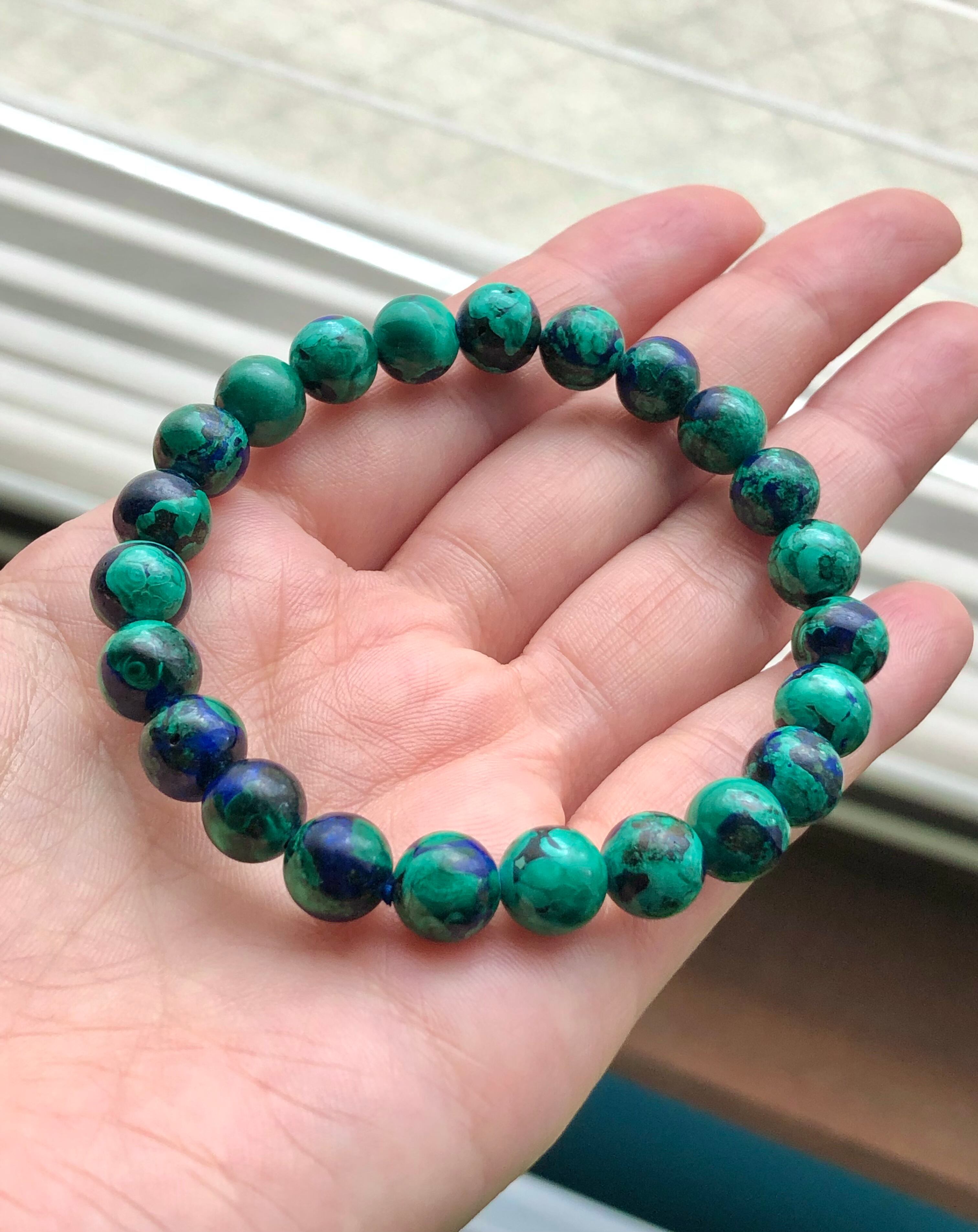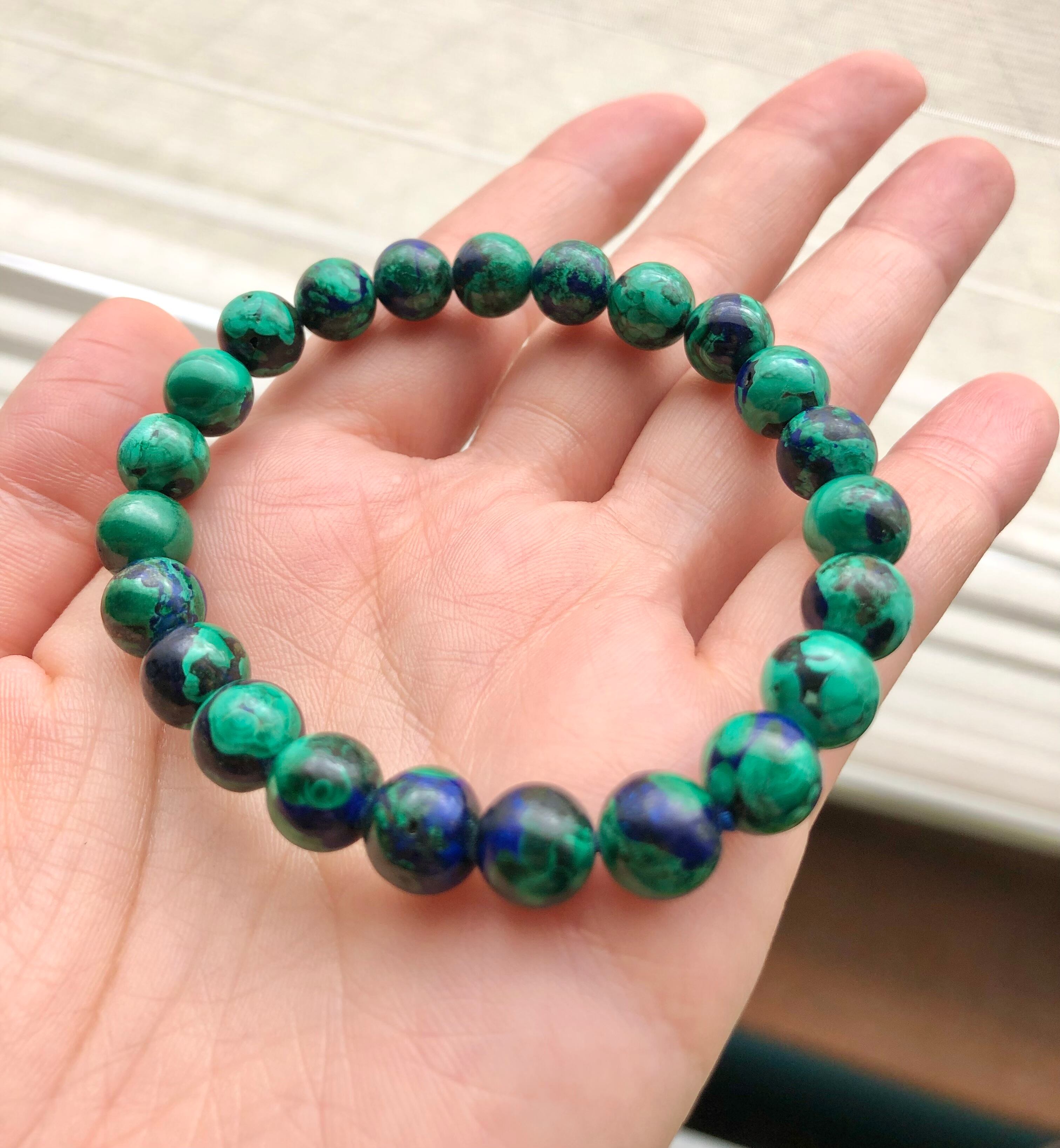 ペルー産アズロマラカイトの8ミリ玉ブレスです。