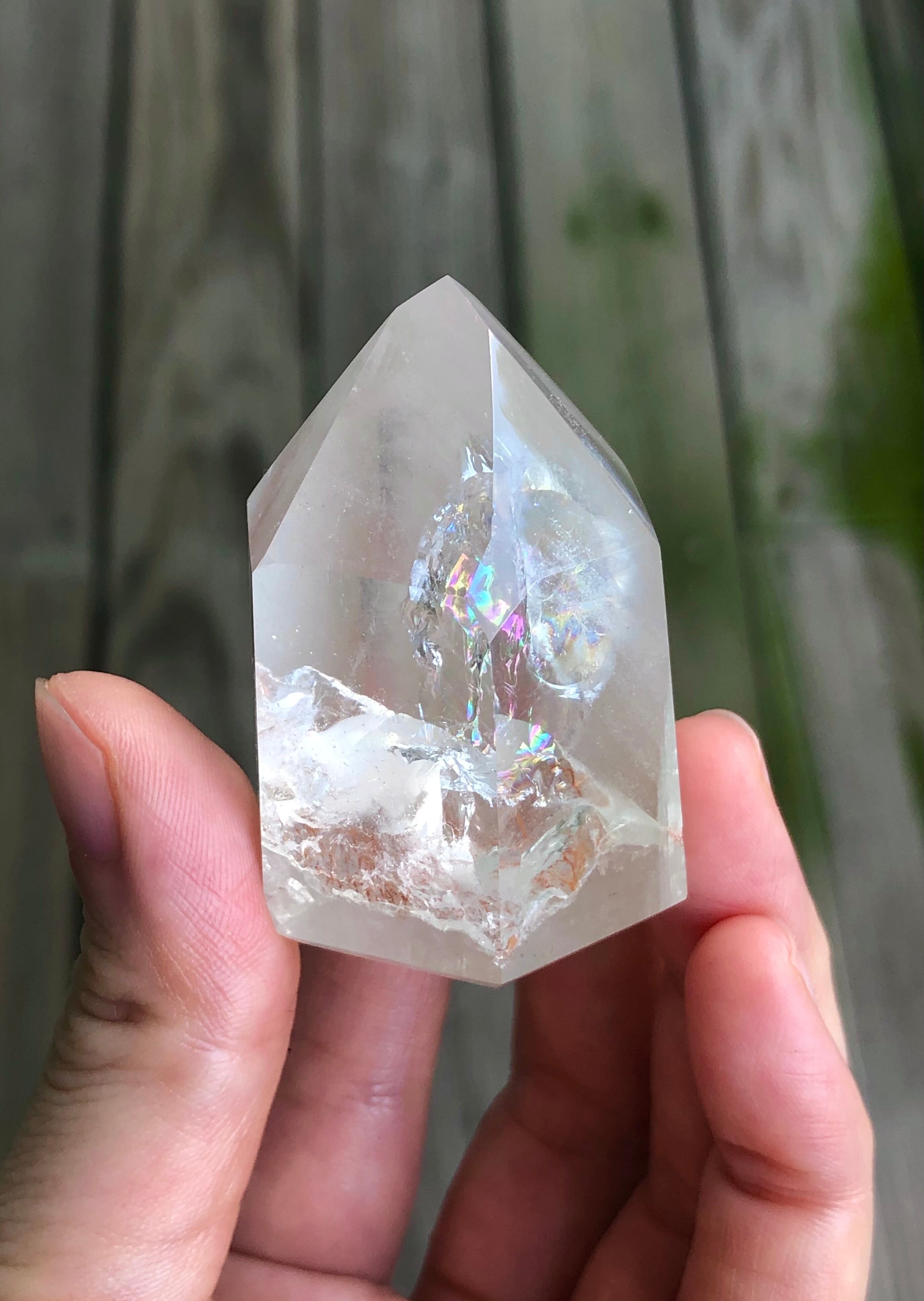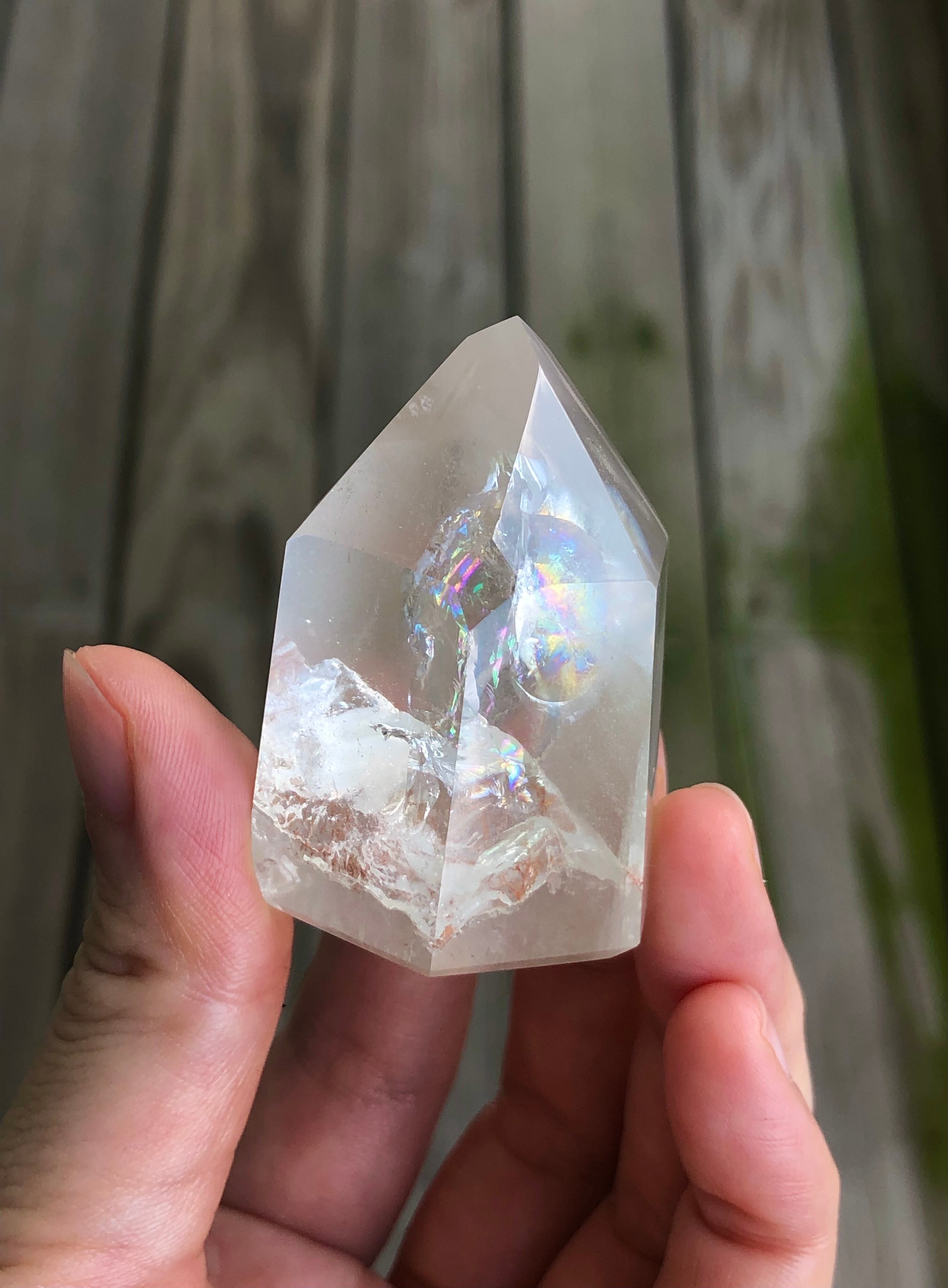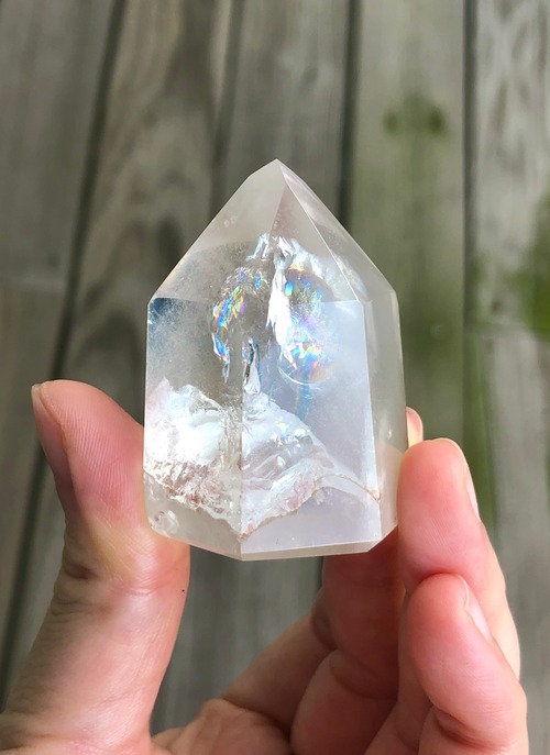 内側のクラックが、まるで意図されたかのように山に見え、レインボーも見られます。