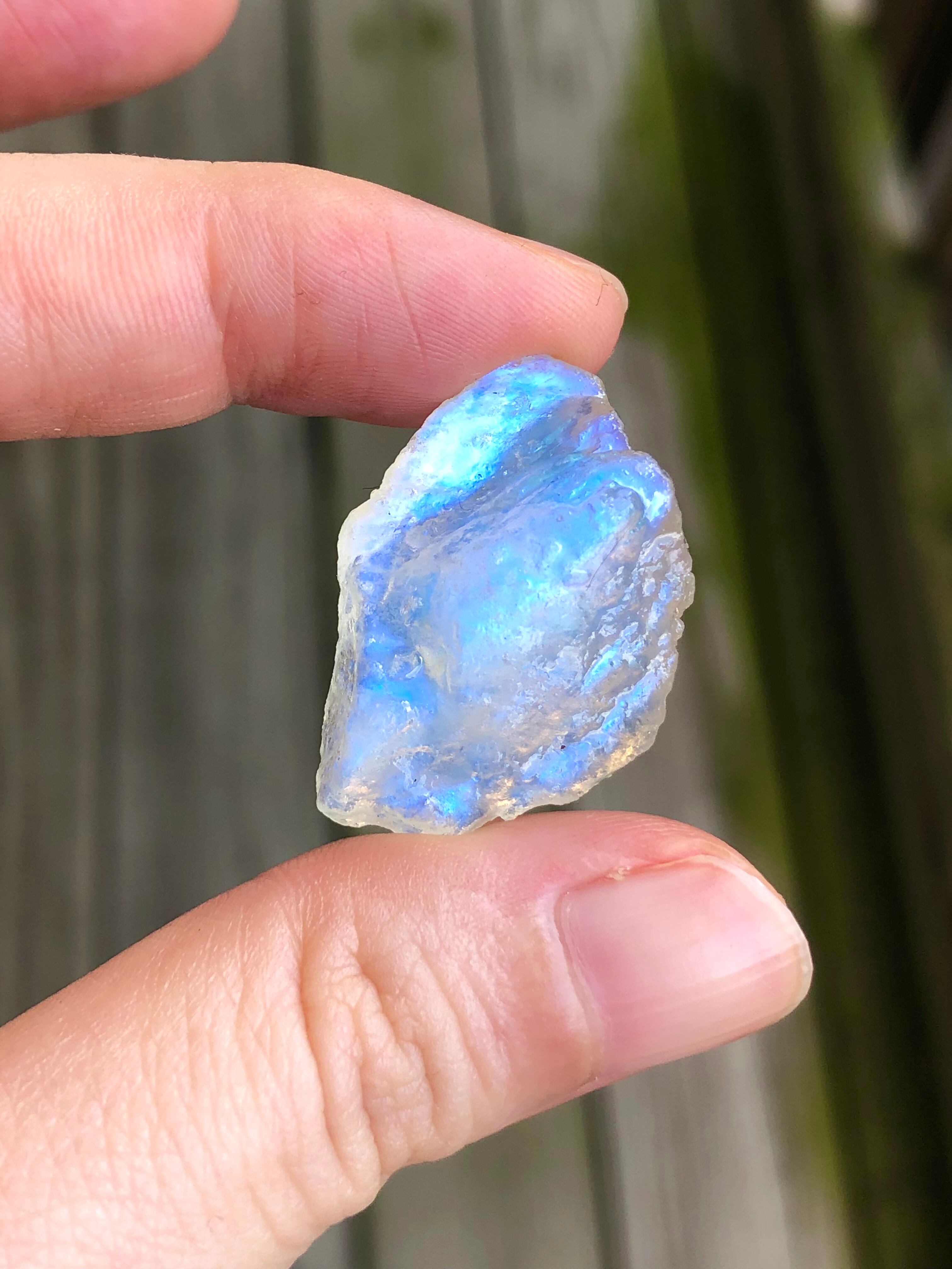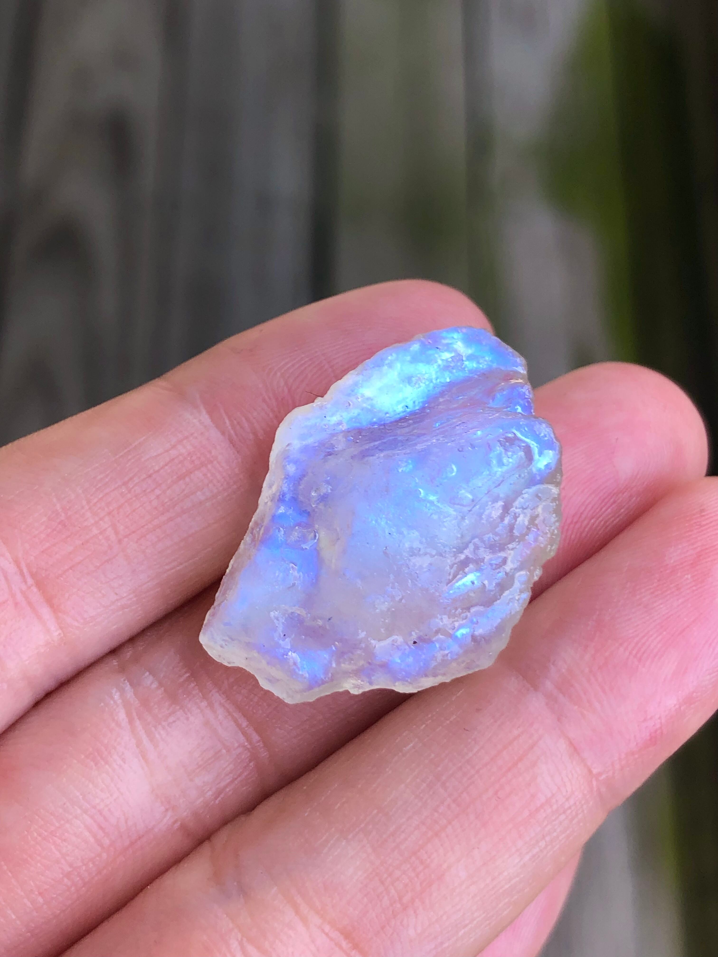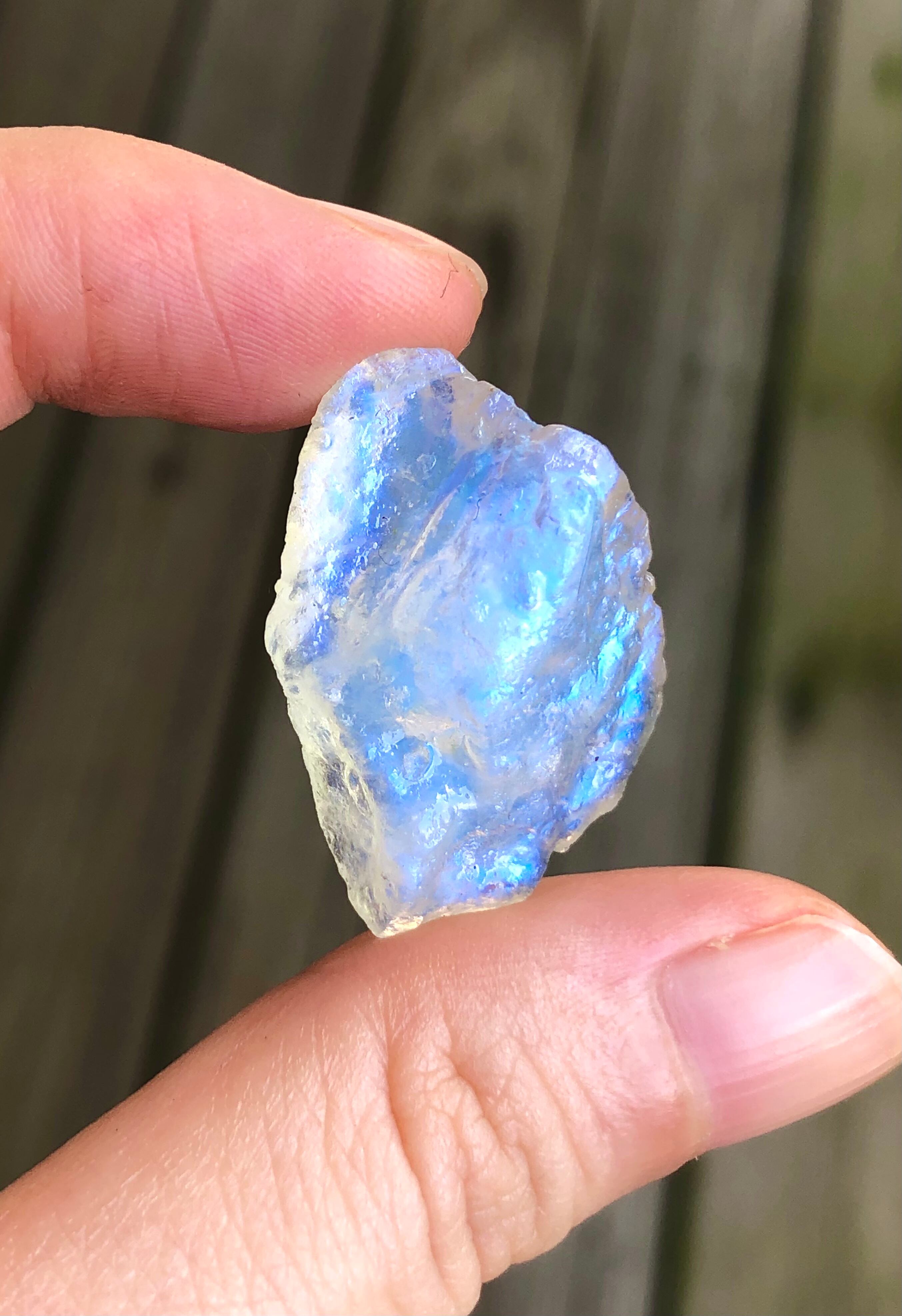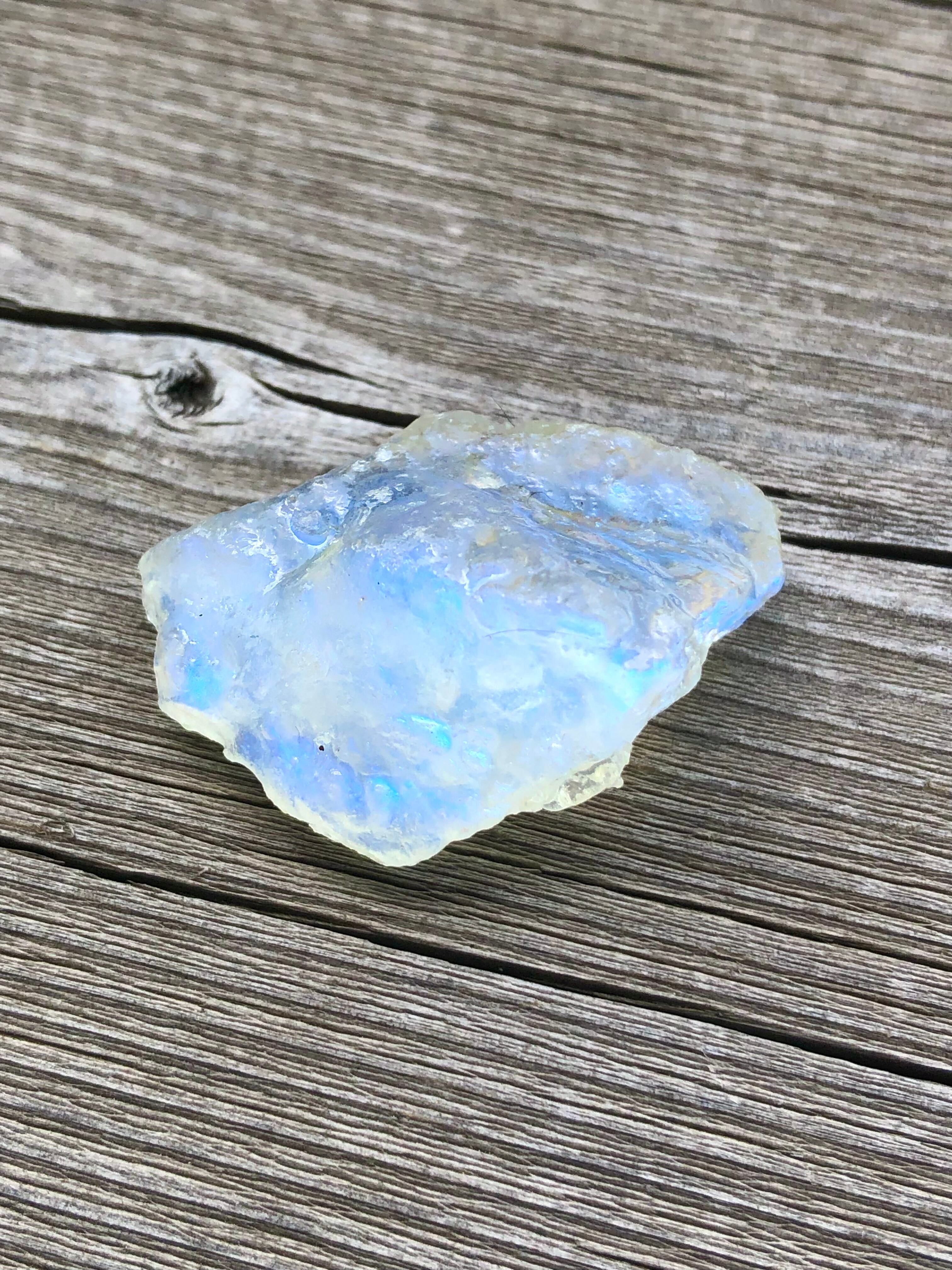 こんなにもシラーが美しくはっきりと見られるホワイトラブラドライトの原石を手にしたのは初めてです。