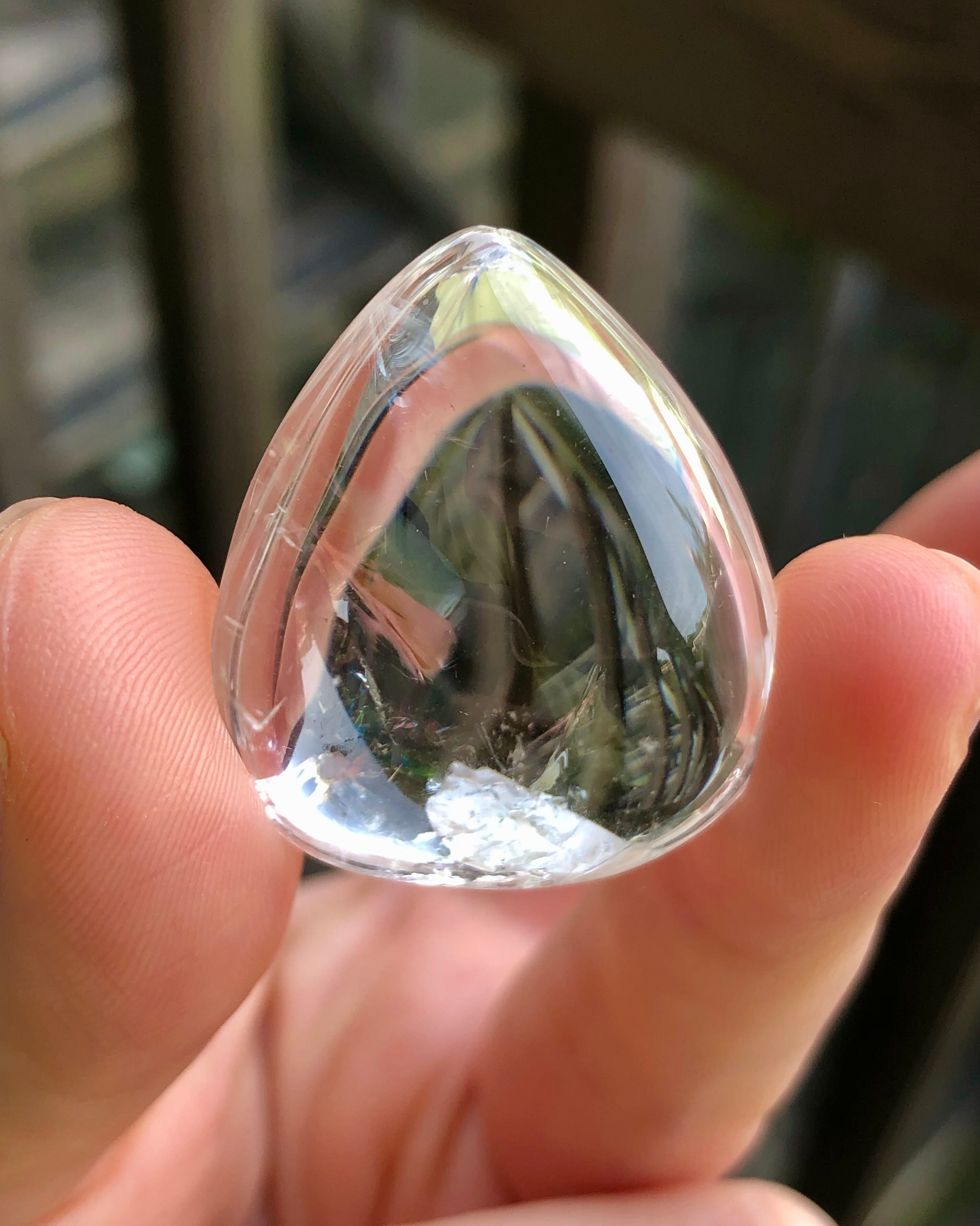 わかりやすく、透明度の高い水晶の中に、小さな水晶が入っています。