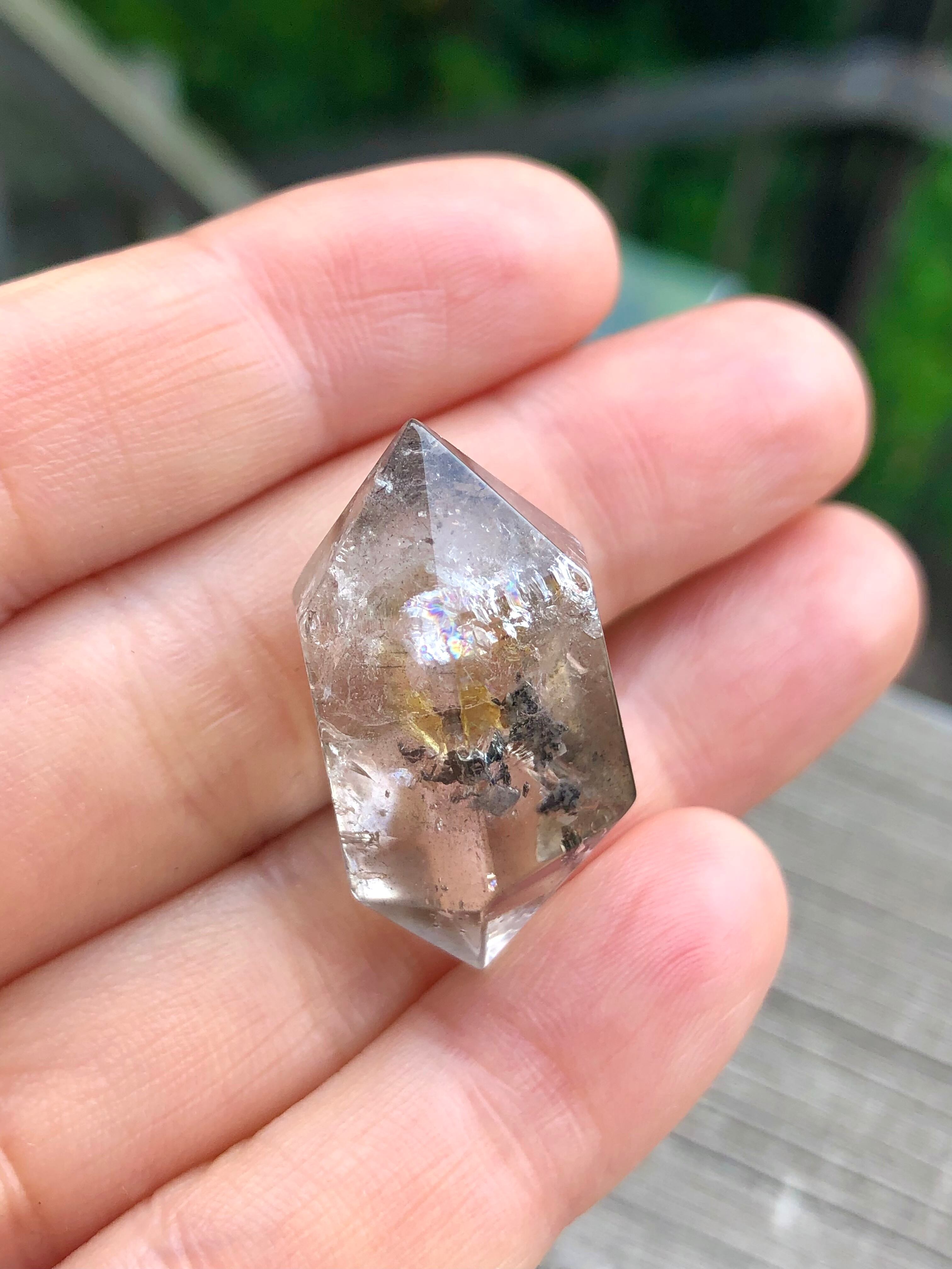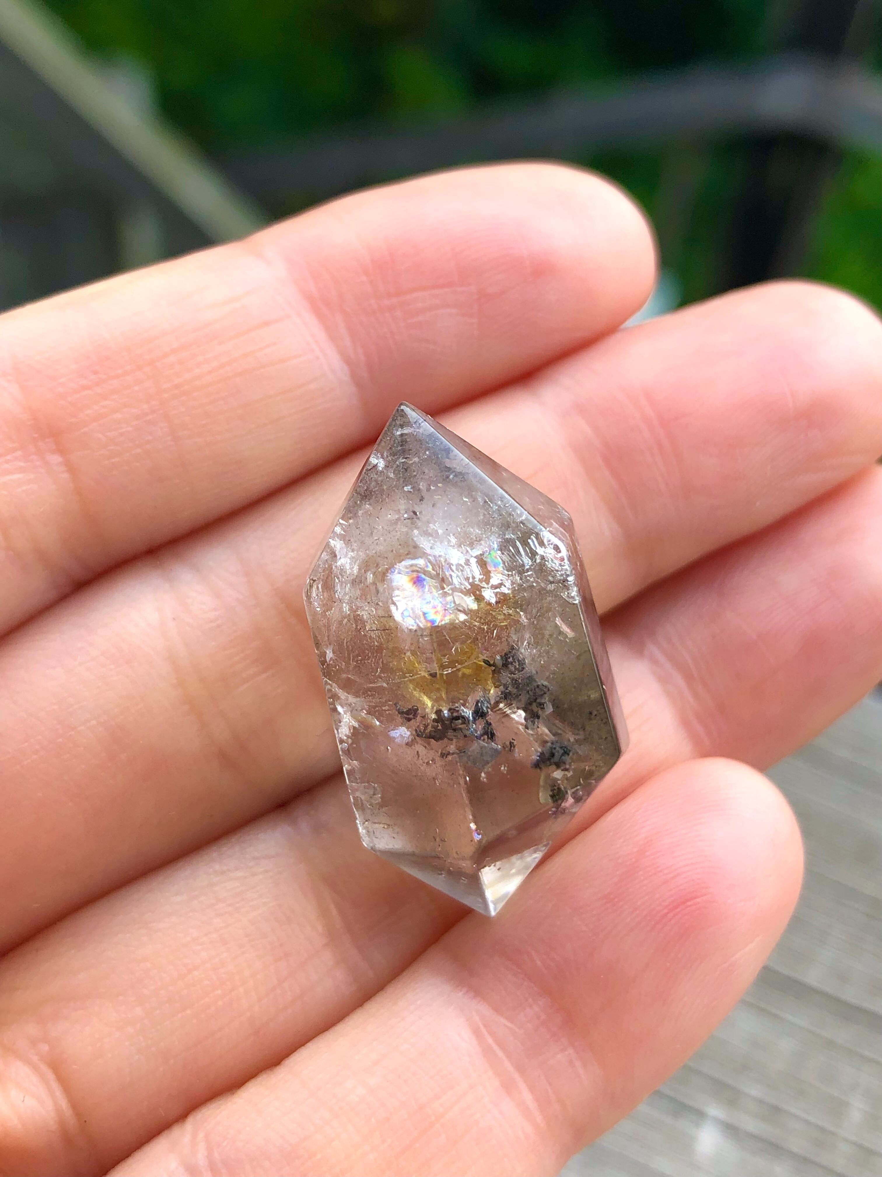 内側にはハーキマーらしいレインボーや内包物が見られます。