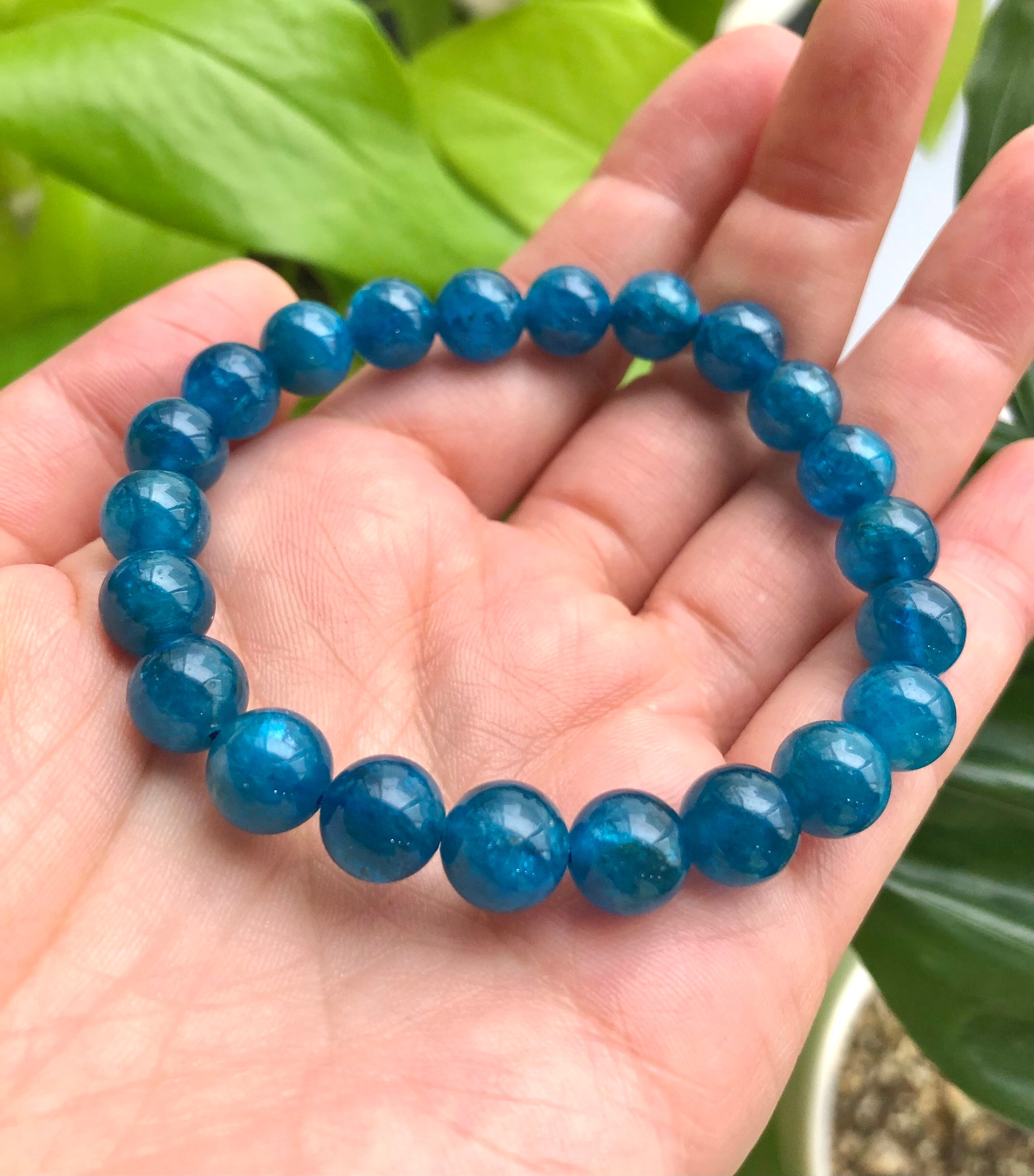 ブラジル産ブルーアパタイトの8mm玉ブレスです。