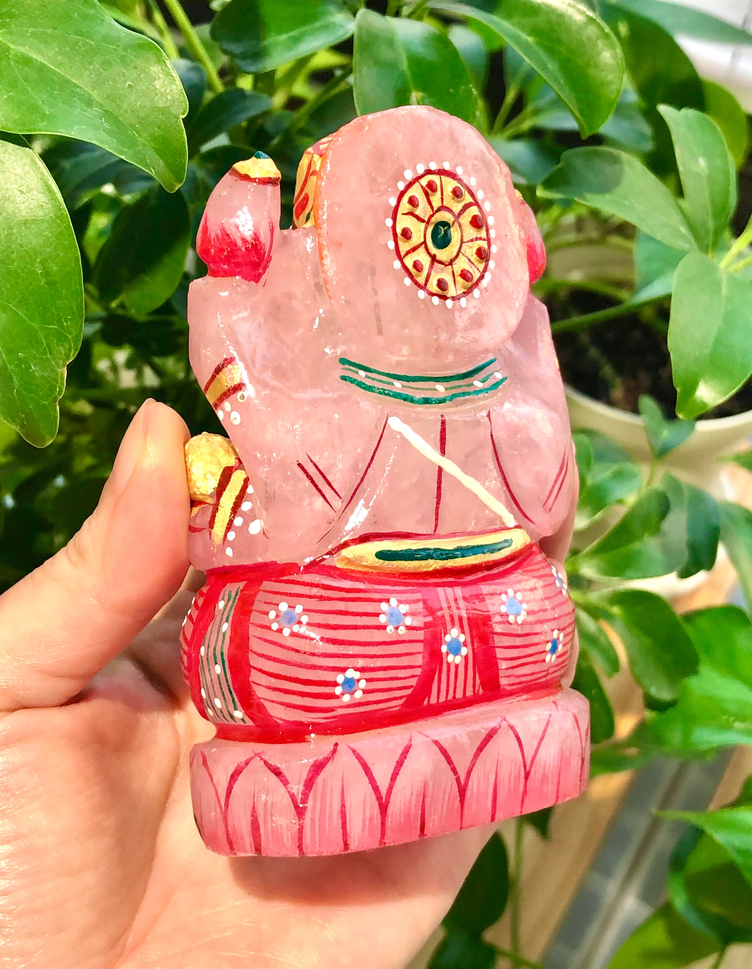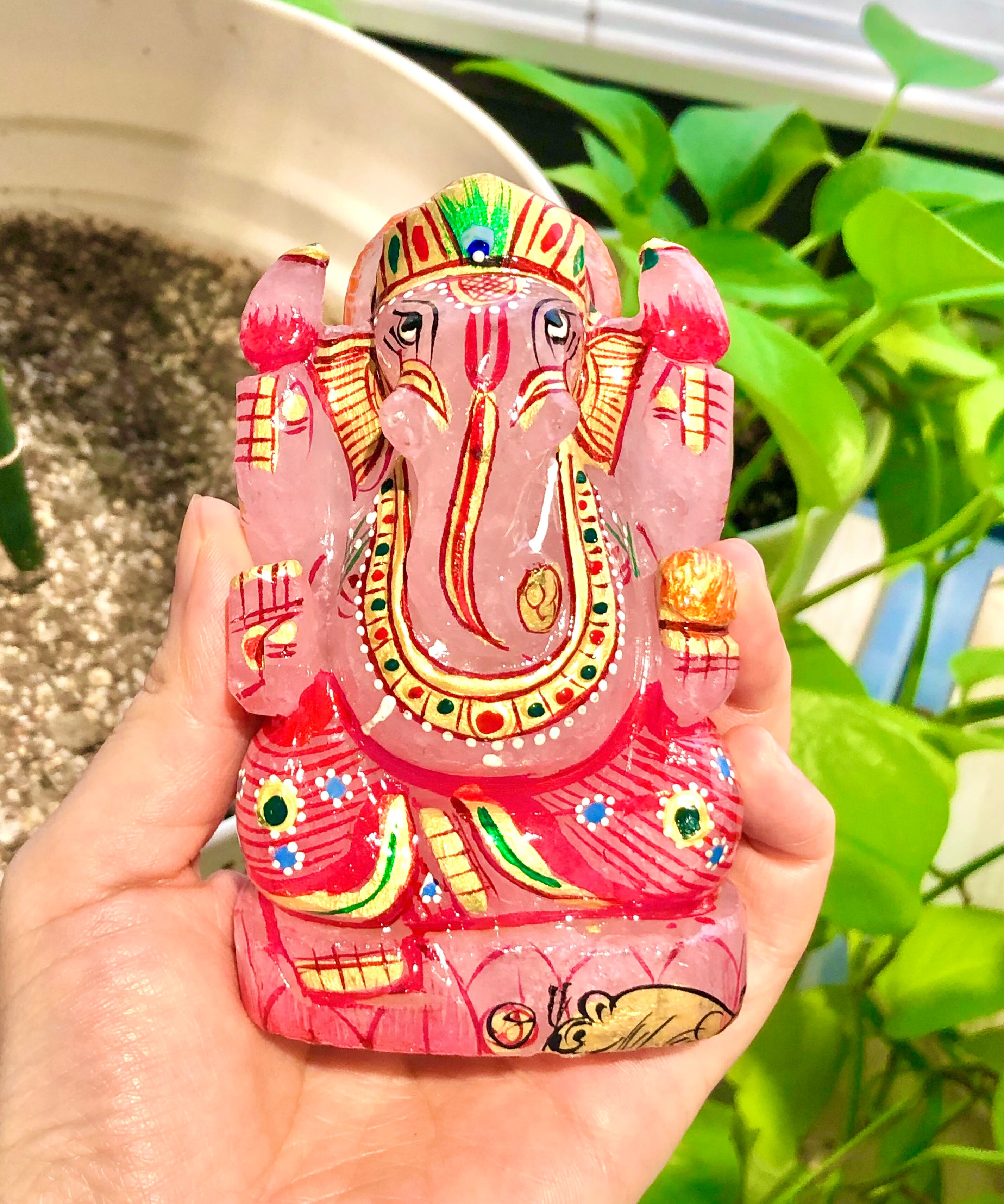 ローズクォーツにペイントすることで、ローズクォーツのエネルギーを邪魔しないのか?という懸念が浮かぶ方もいらっしゃるかもしれないのですが、このガネーシャに関しては、むしろエネルギーを明るく高く引き上げてくれています。