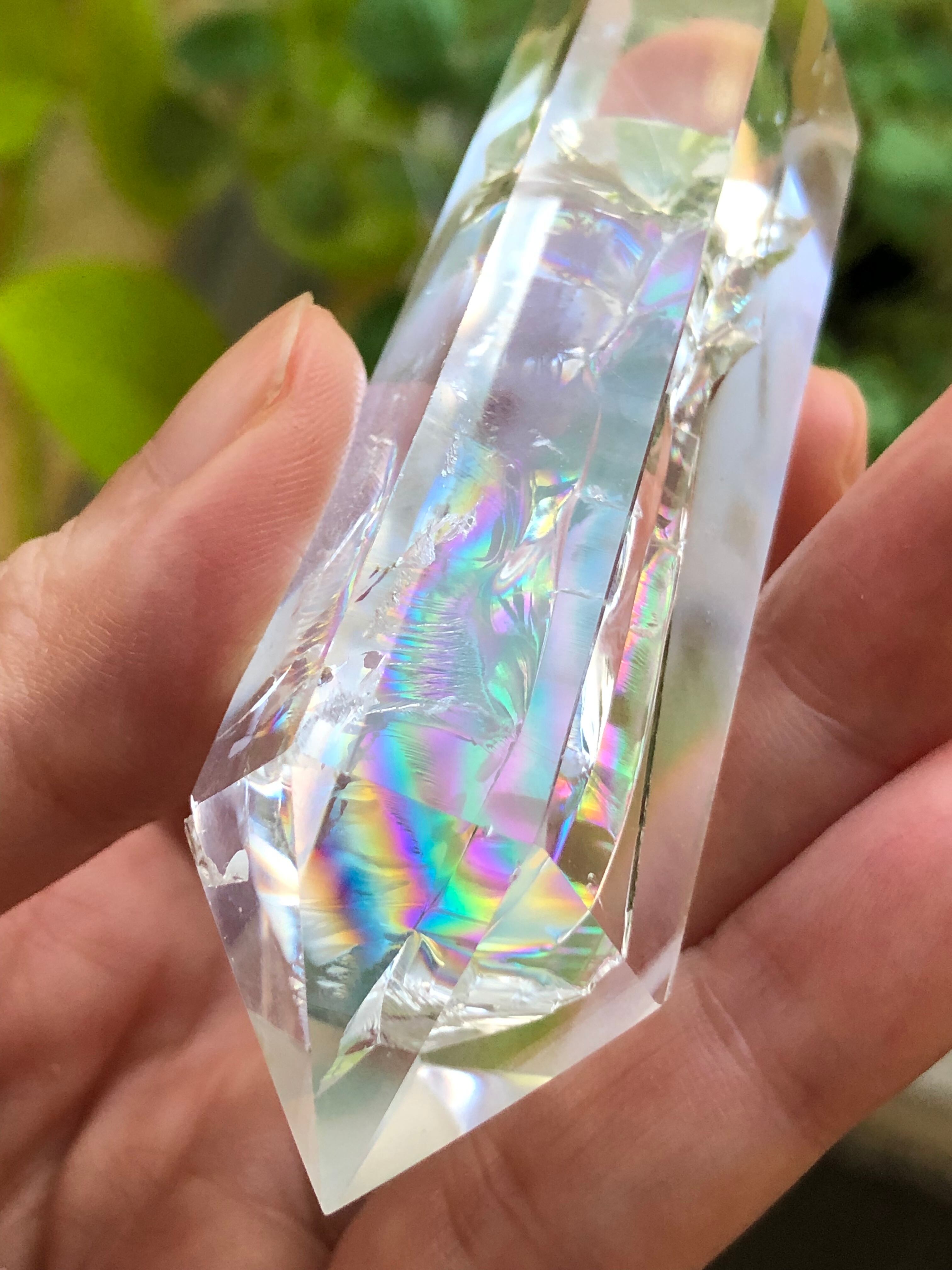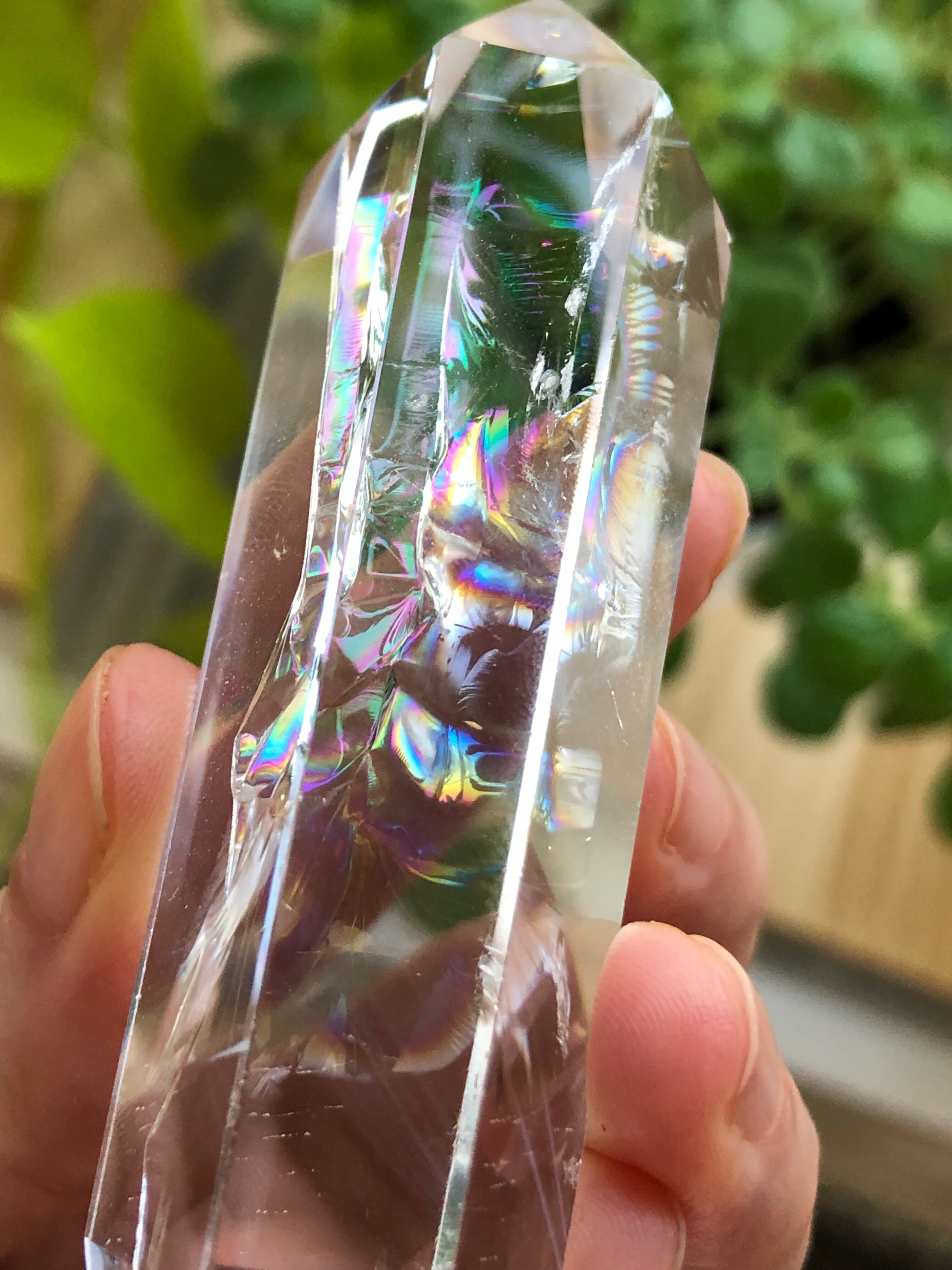 ご覧の通り、虹入りのアイリスクォーツでもあります。(天然のクラックにより虹が見られれものをアイリスクォーツと呼びます)