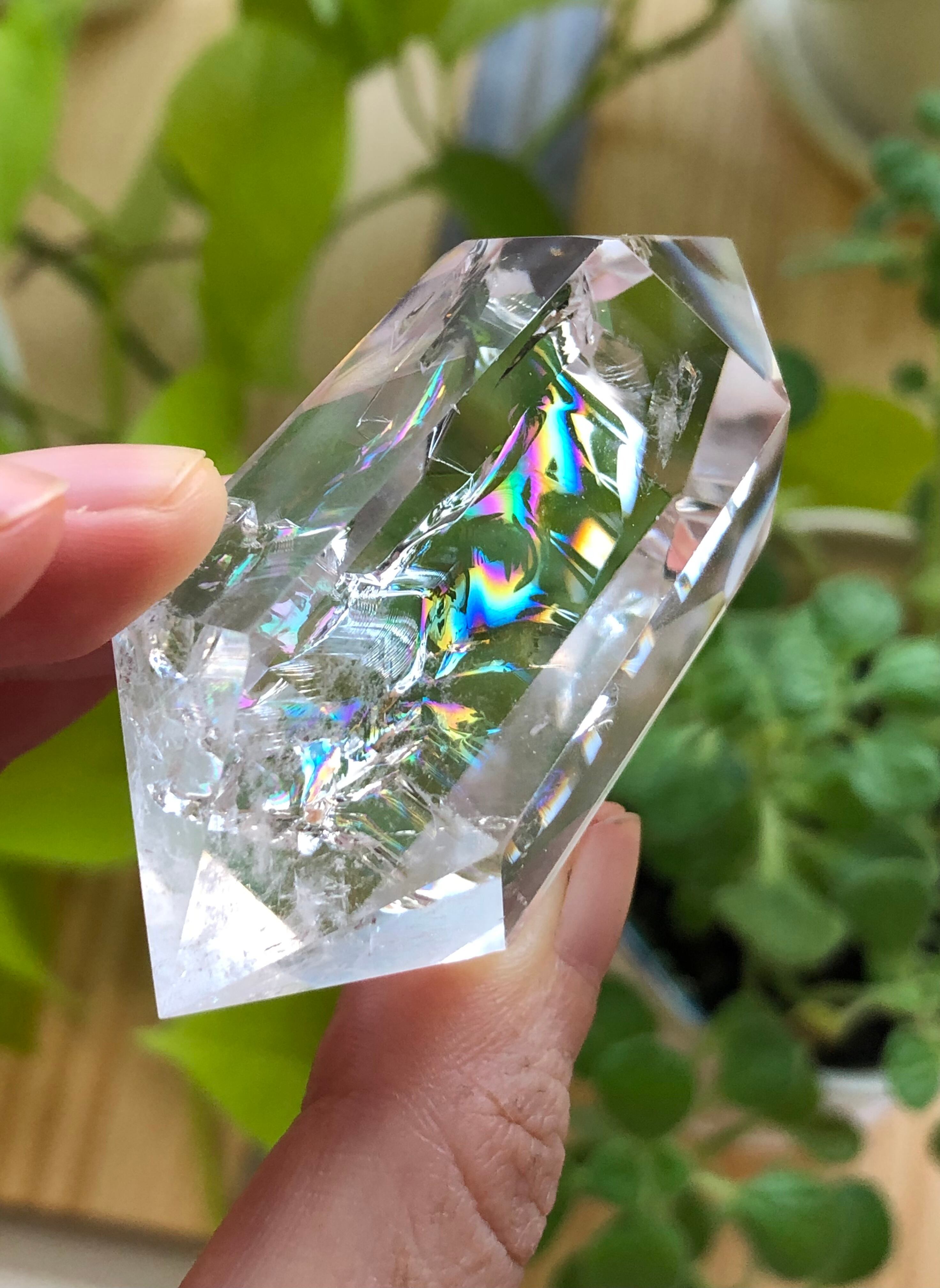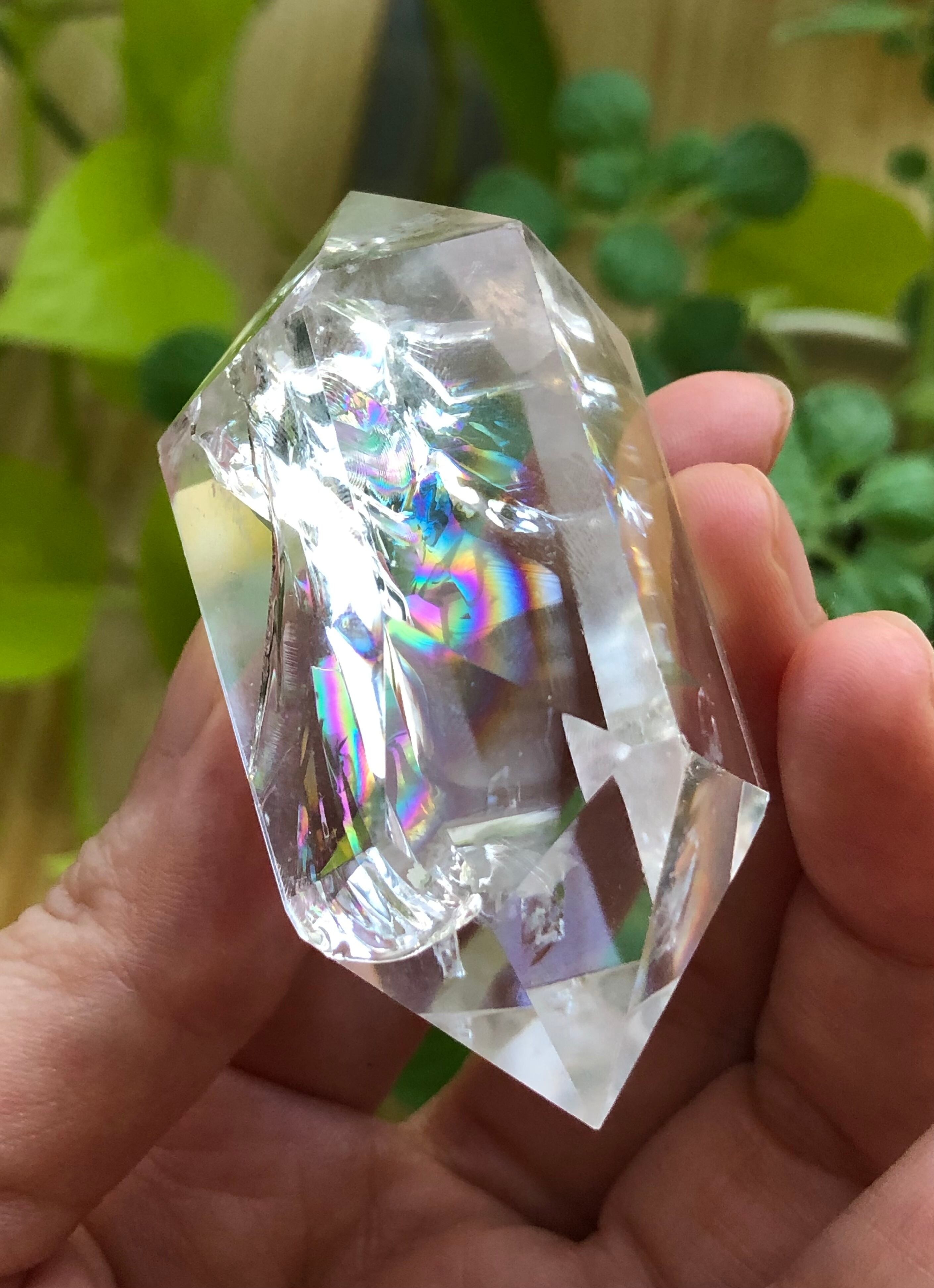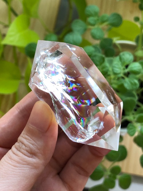 ご覧の通り、鮮やかに虹が見られるアイリスクォーツでもあります。(天然のクラックにより虹が見られるクリスタルをアイリスクォーツと呼びます)