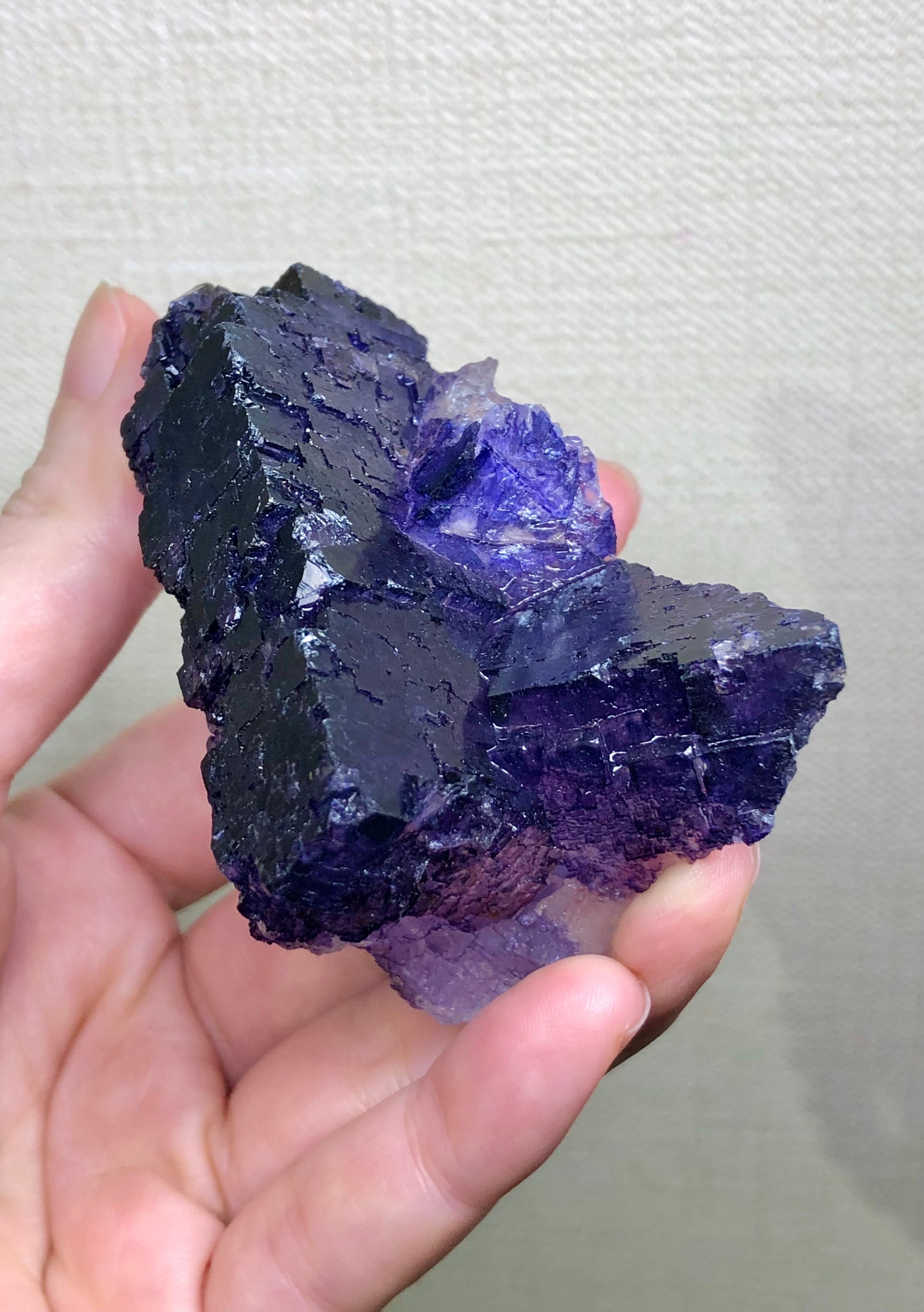 まるでカテドラルのような結晶で覆われた、深い紫色のフローライト原石です。