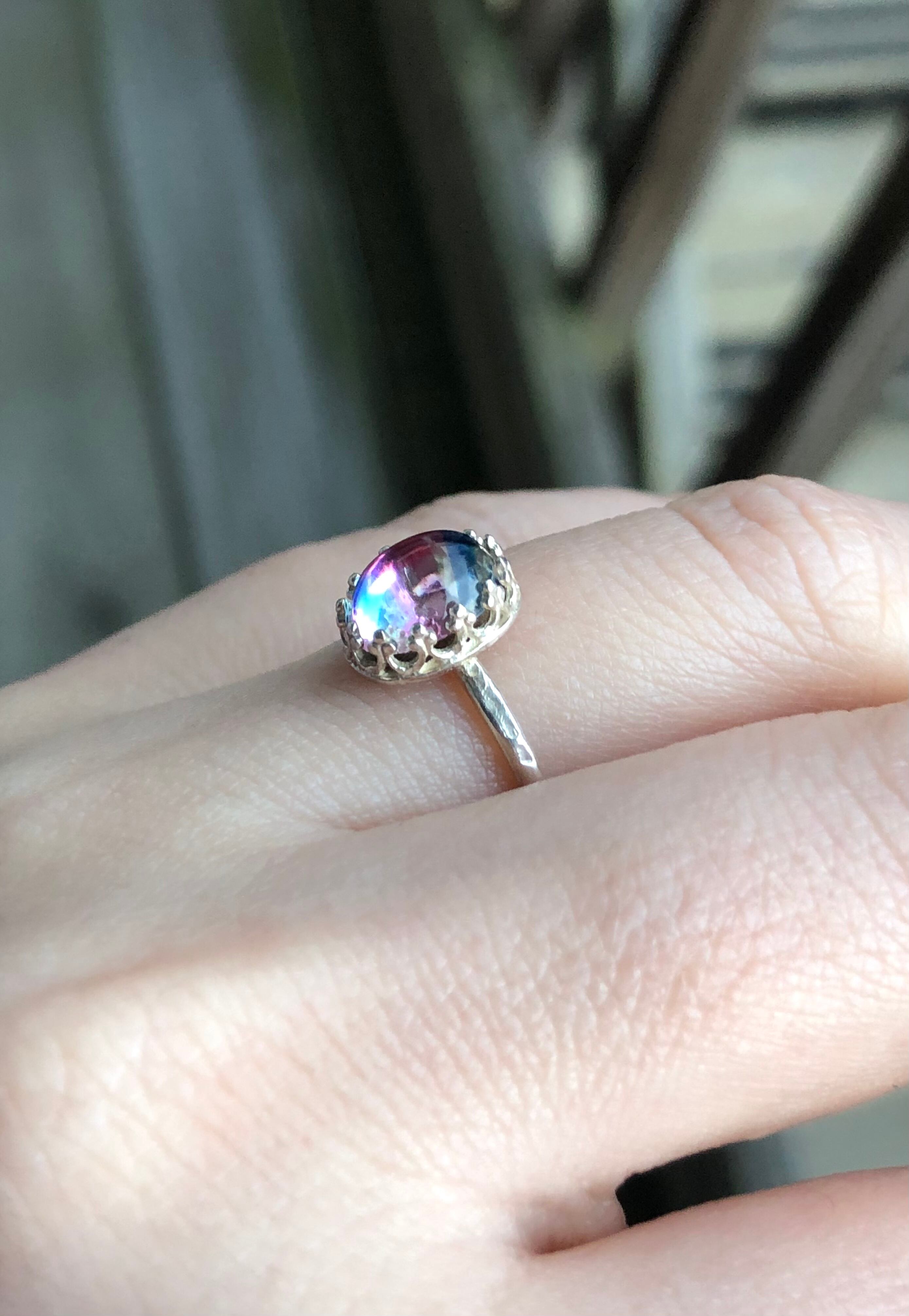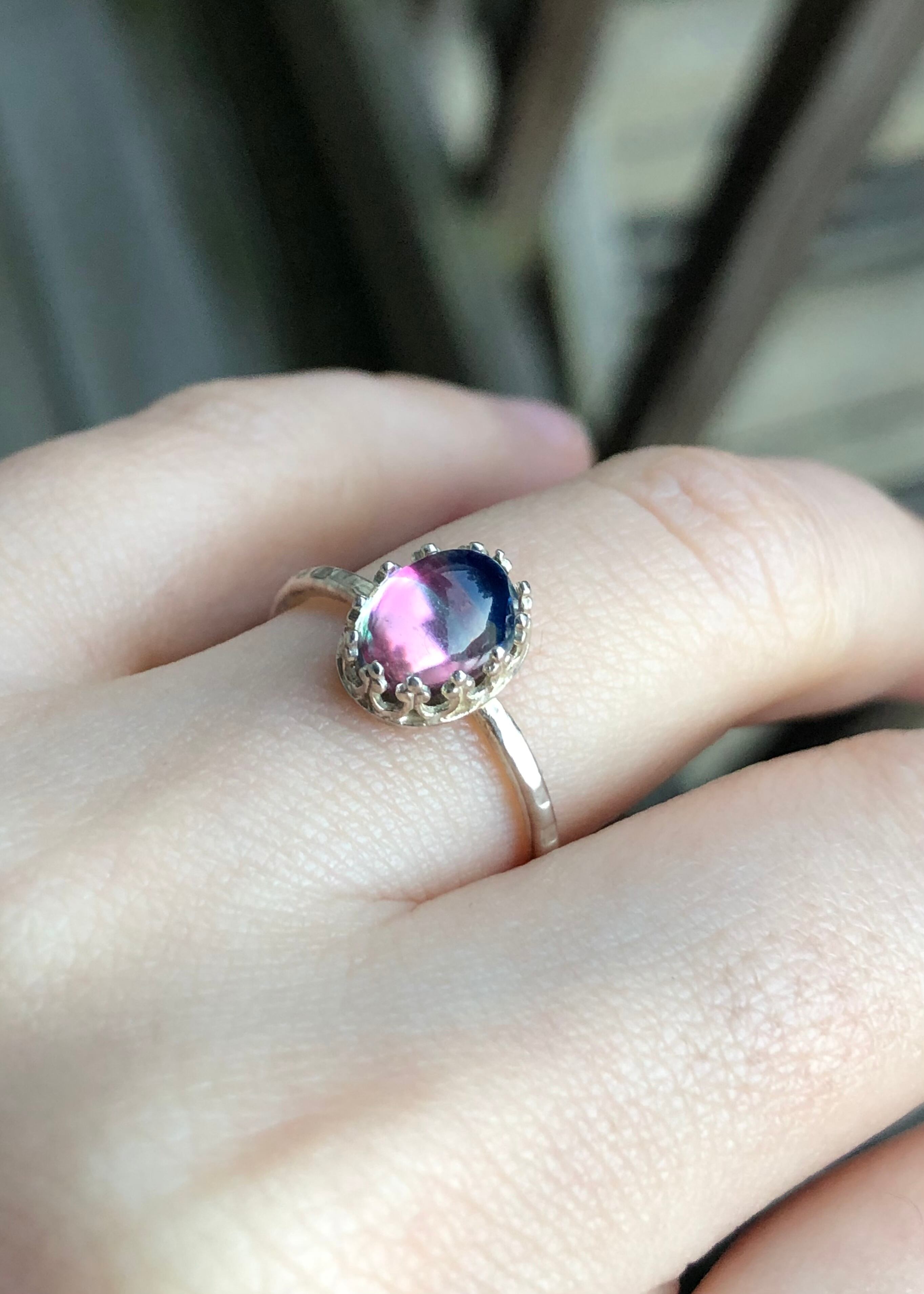 チェコの職人によって作られるヴィンテージアイリスを用いたオーバルリングです。
