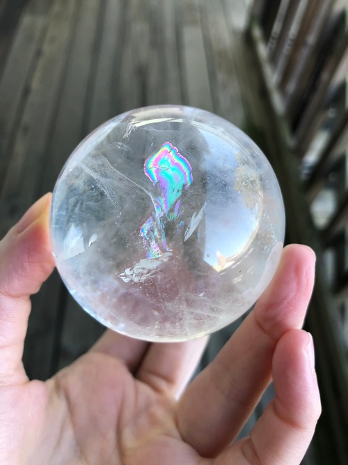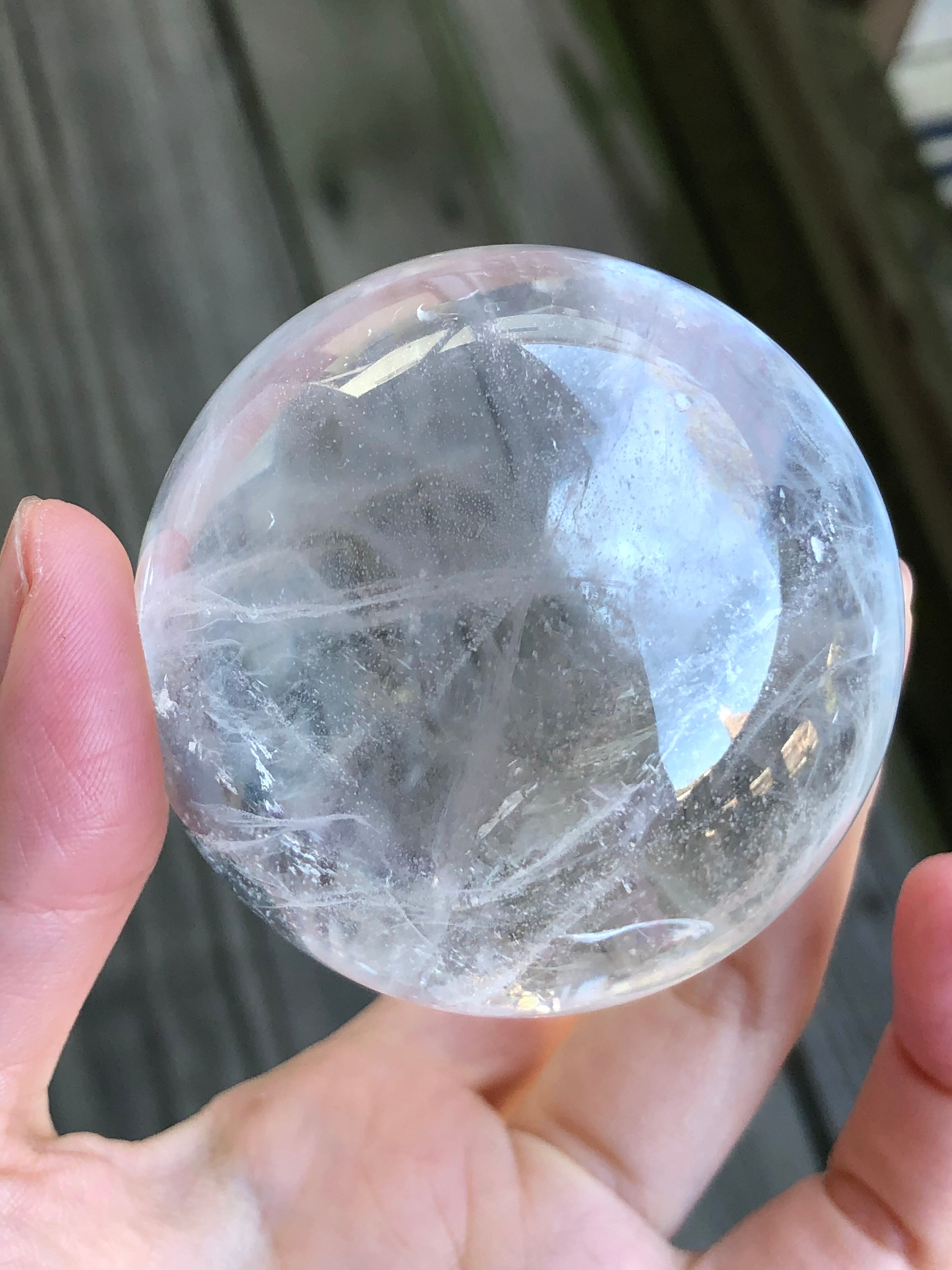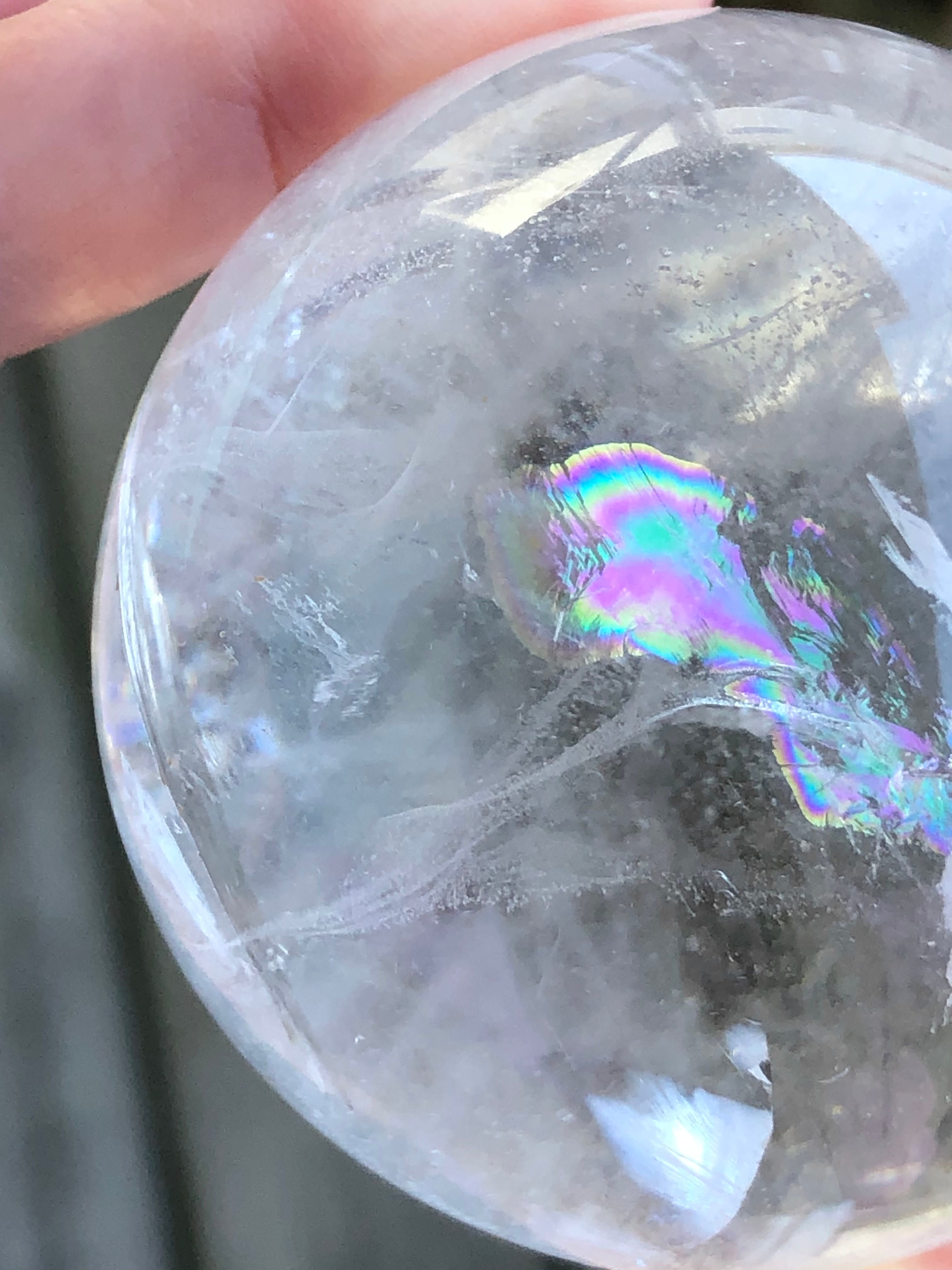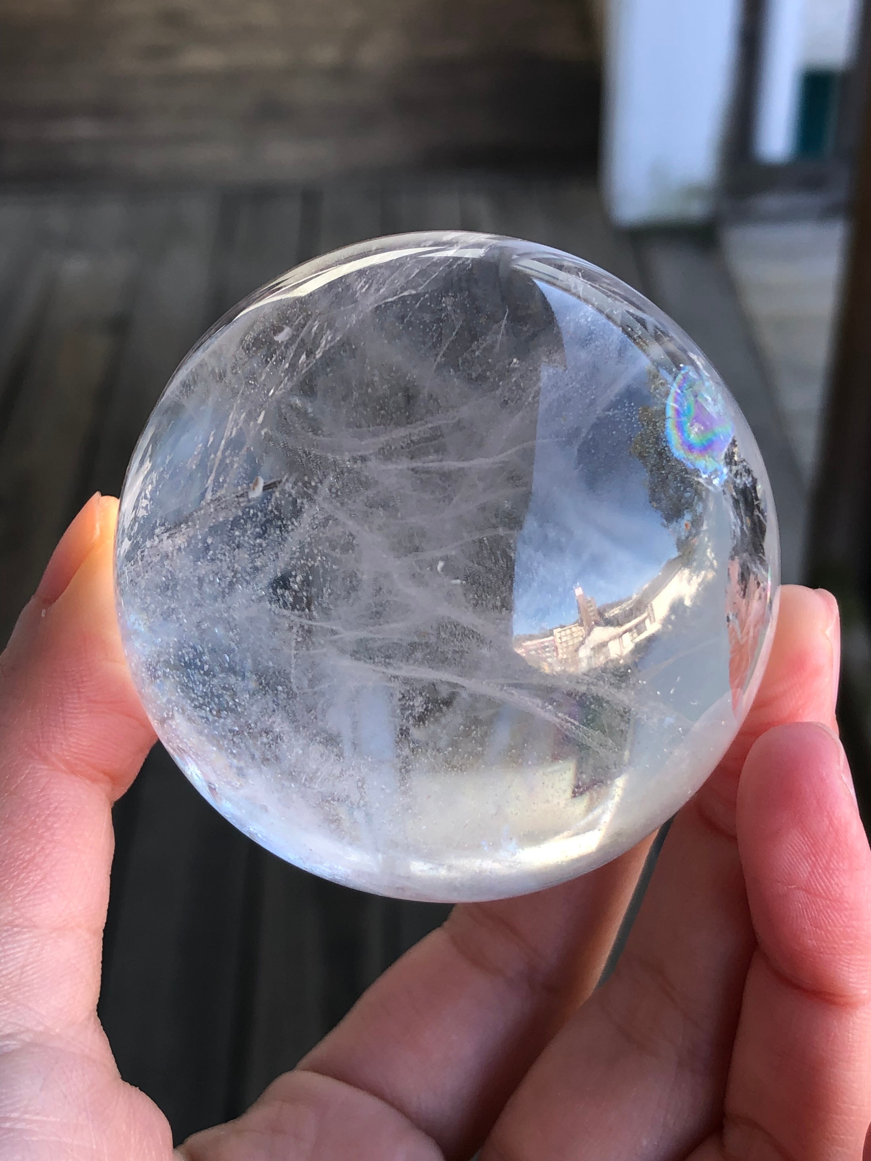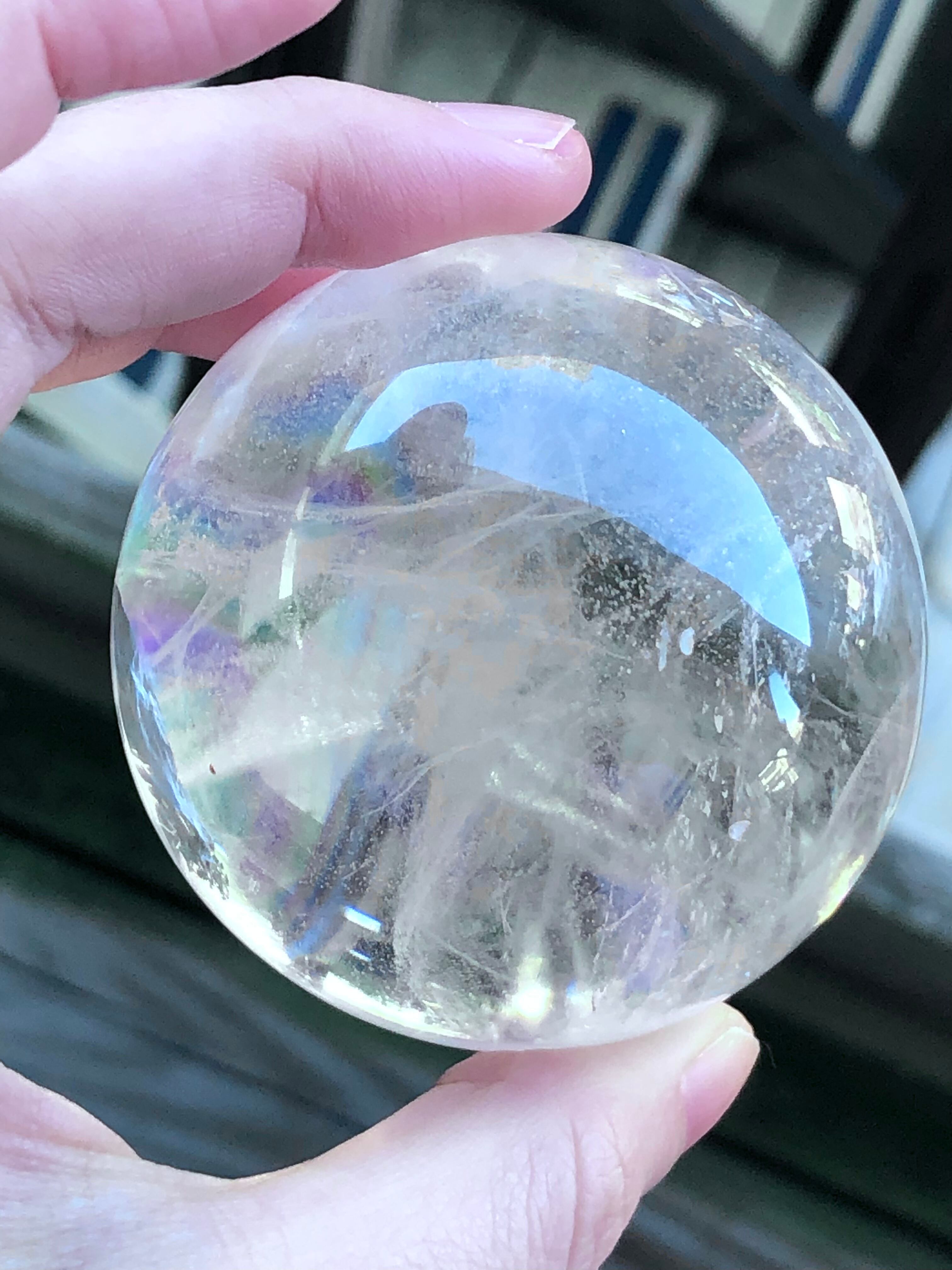 この丸玉が普通の水晶ではないことは、画像からも伝わるのではないかと思います。