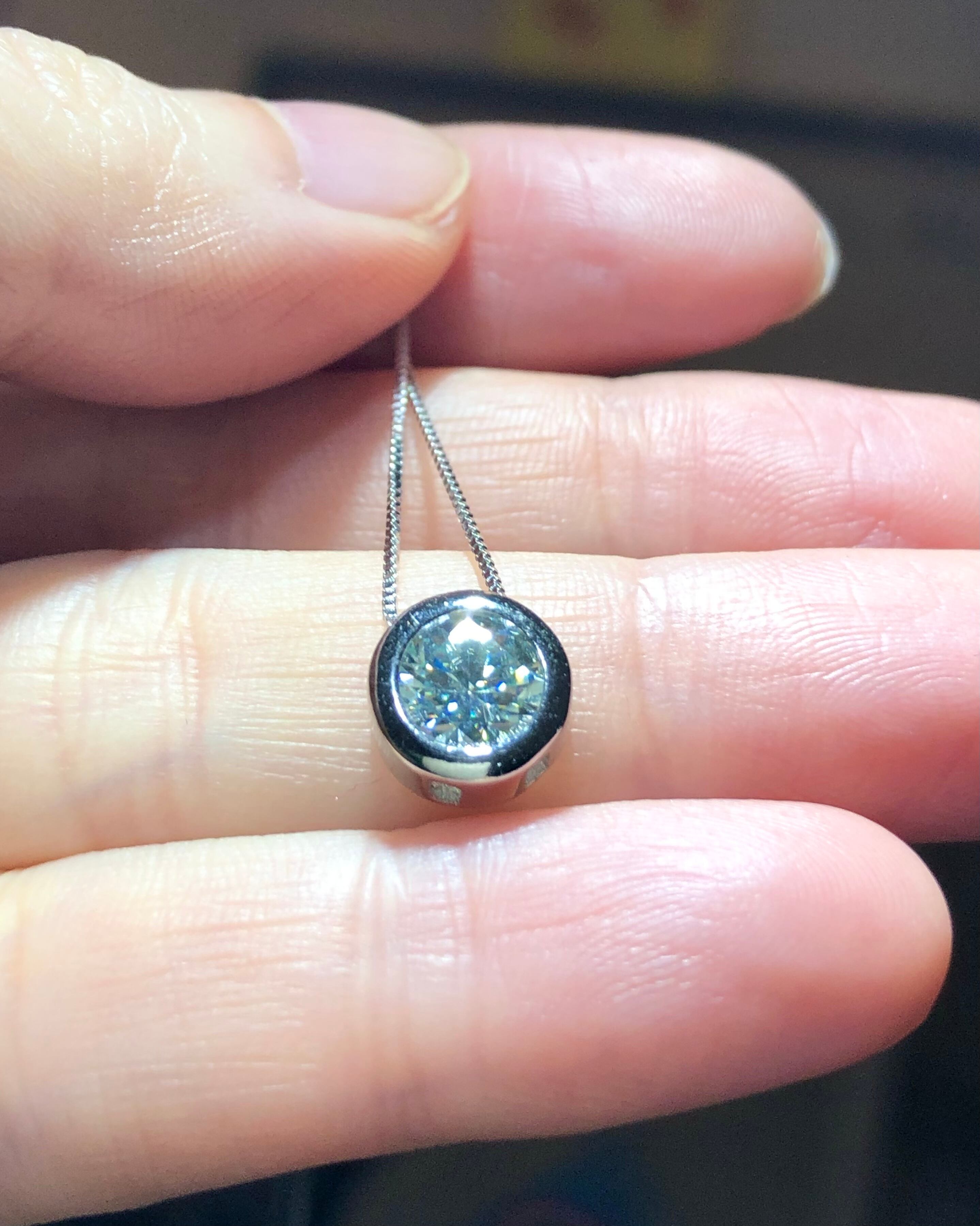 近年注目されている、モアサナイトという宝石のペンダントトップです。