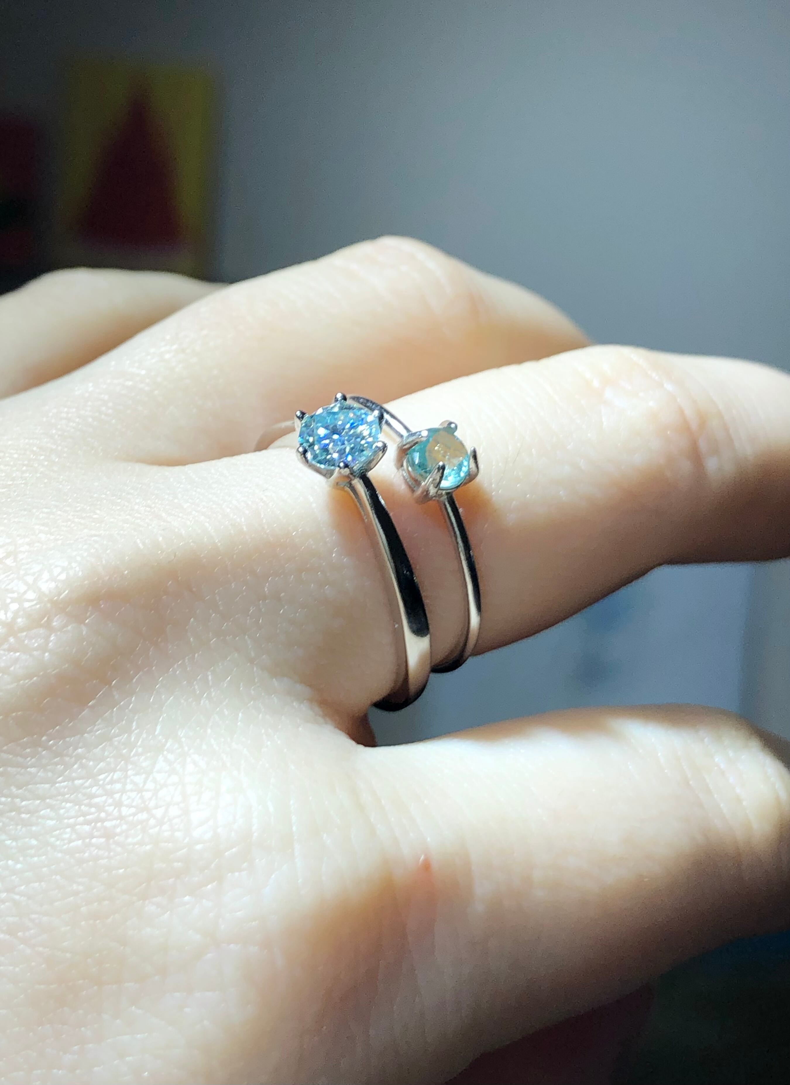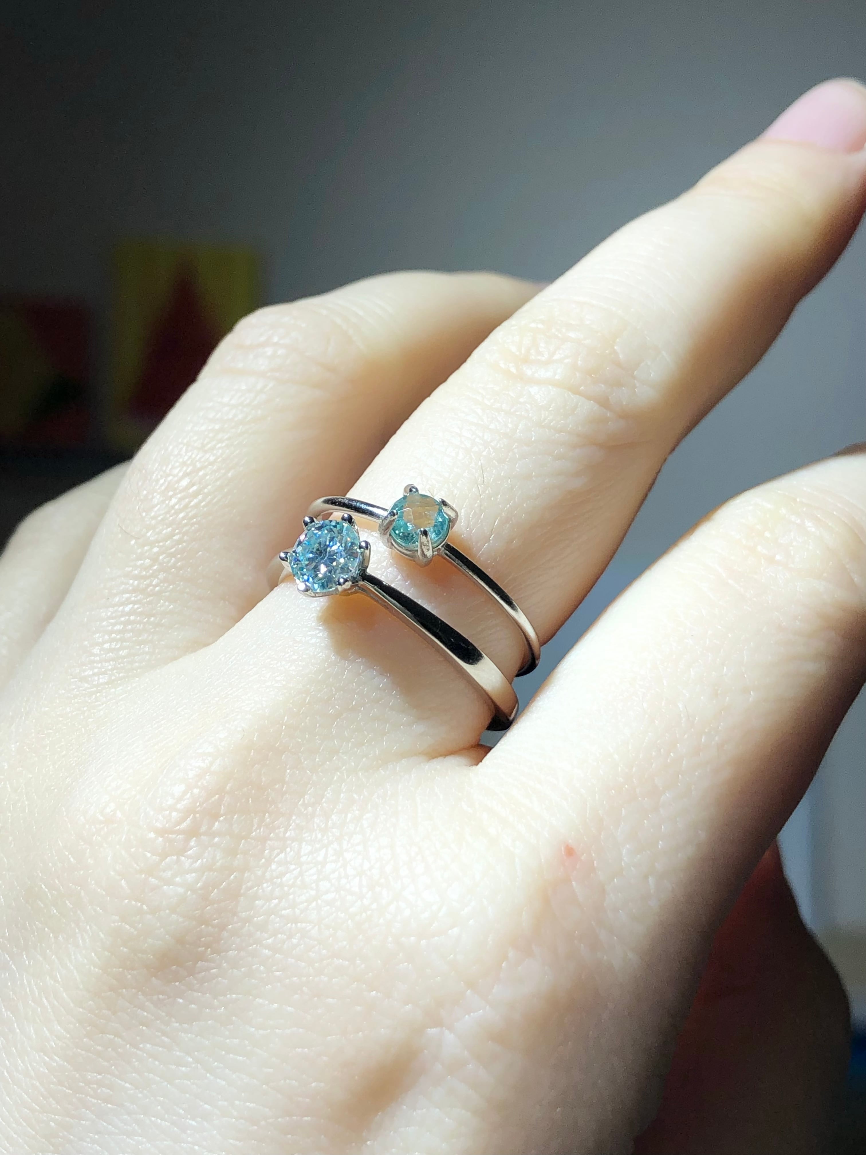 なので、画像のように華奢なリングと重ねて付けていただくのがおしゃれになるしサイズ調整にもなるとおもい、今回はシルバーのグリーンアメシストのリング(フリーサイズ、11号以下の方もそれ以上の方もお使いいただけます)もおまけで付けさせていただきます。