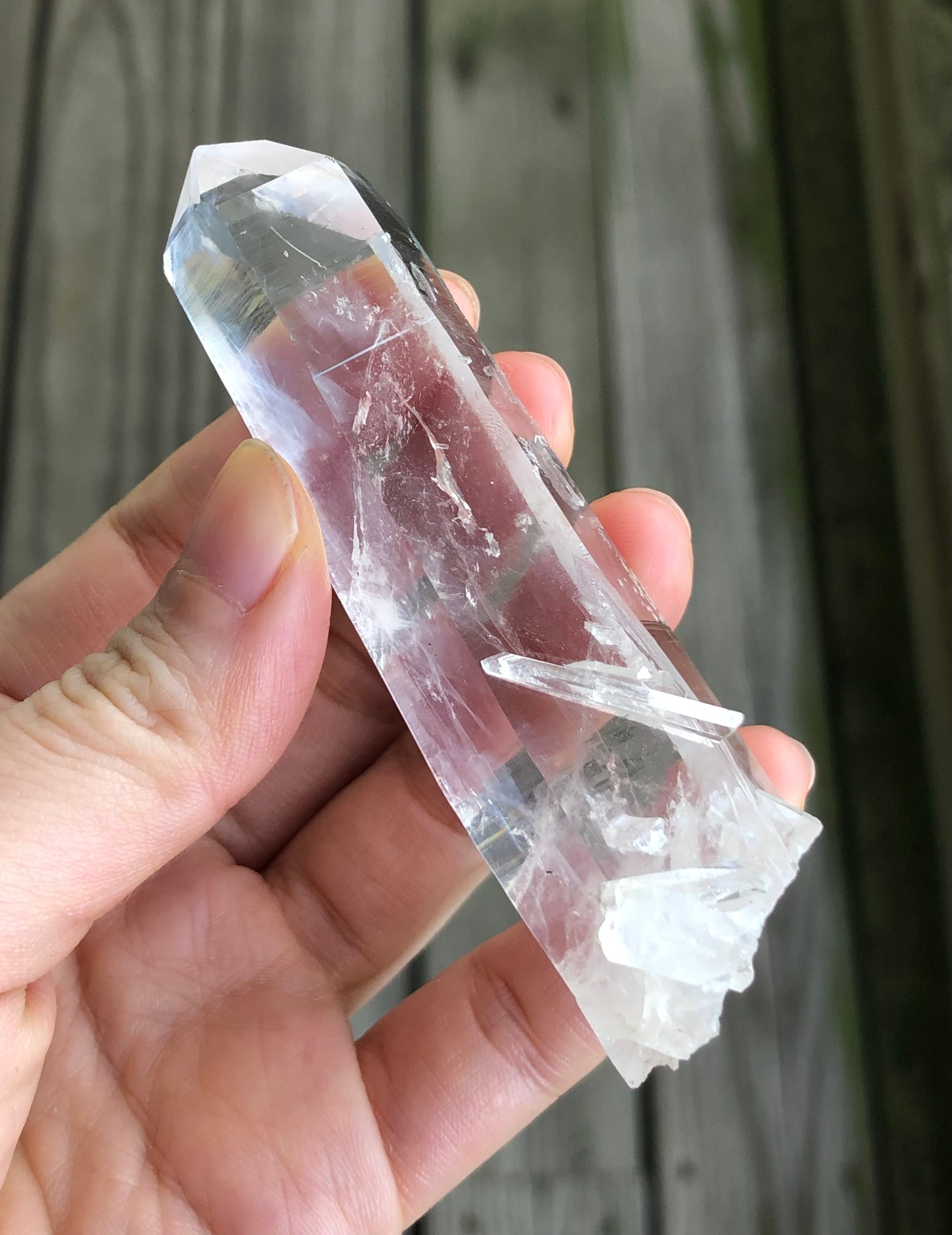 エンジェルブレッシング パスウェイクォーツpathway(pathway=小道、細道、通路)「パスウェイクォーツ」は、ミルキークォーツのように見えますが、結晶内の羽毛のような模様は空洞になっていて「天使が導く天上界への秘密の通路」と言われています。