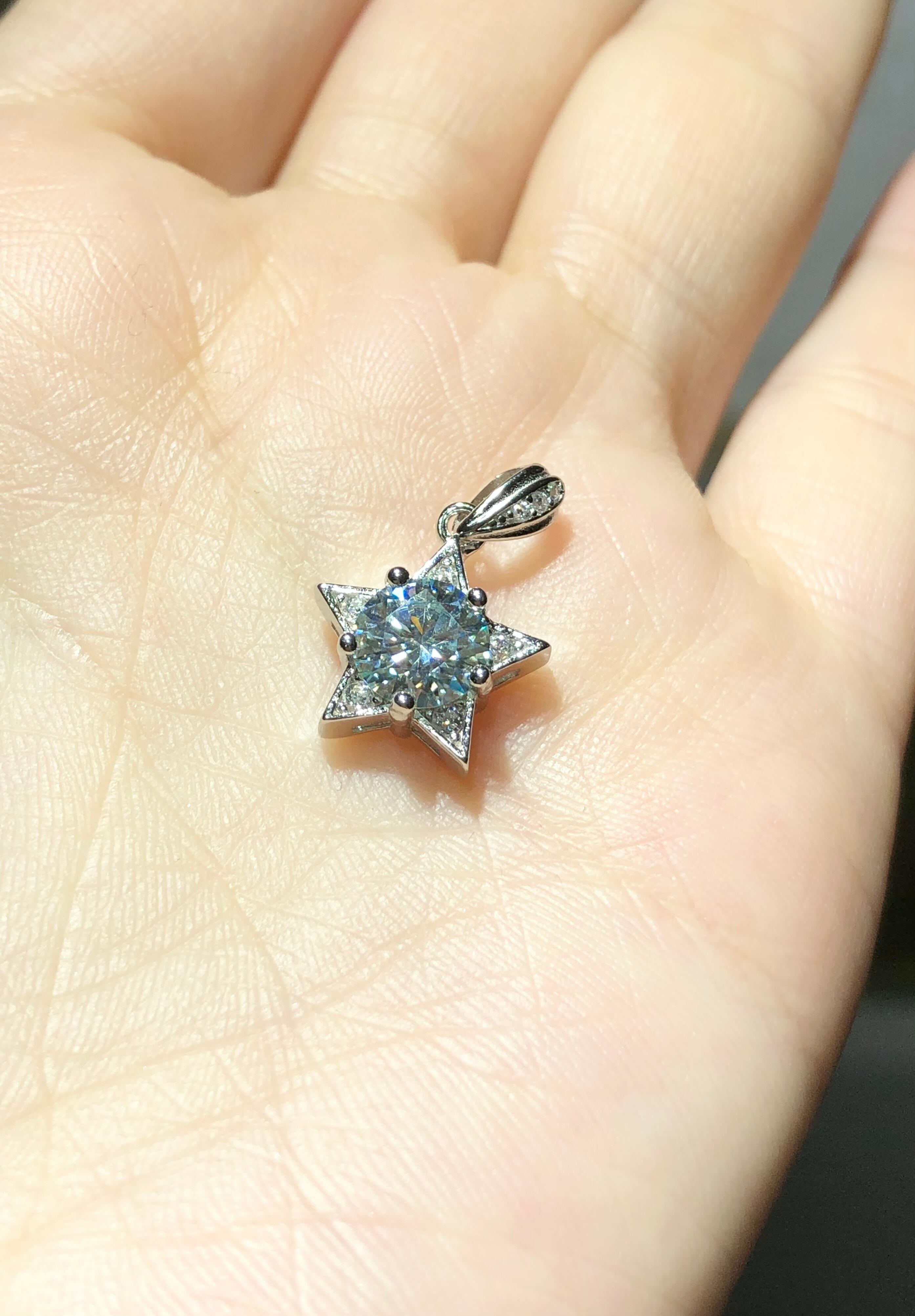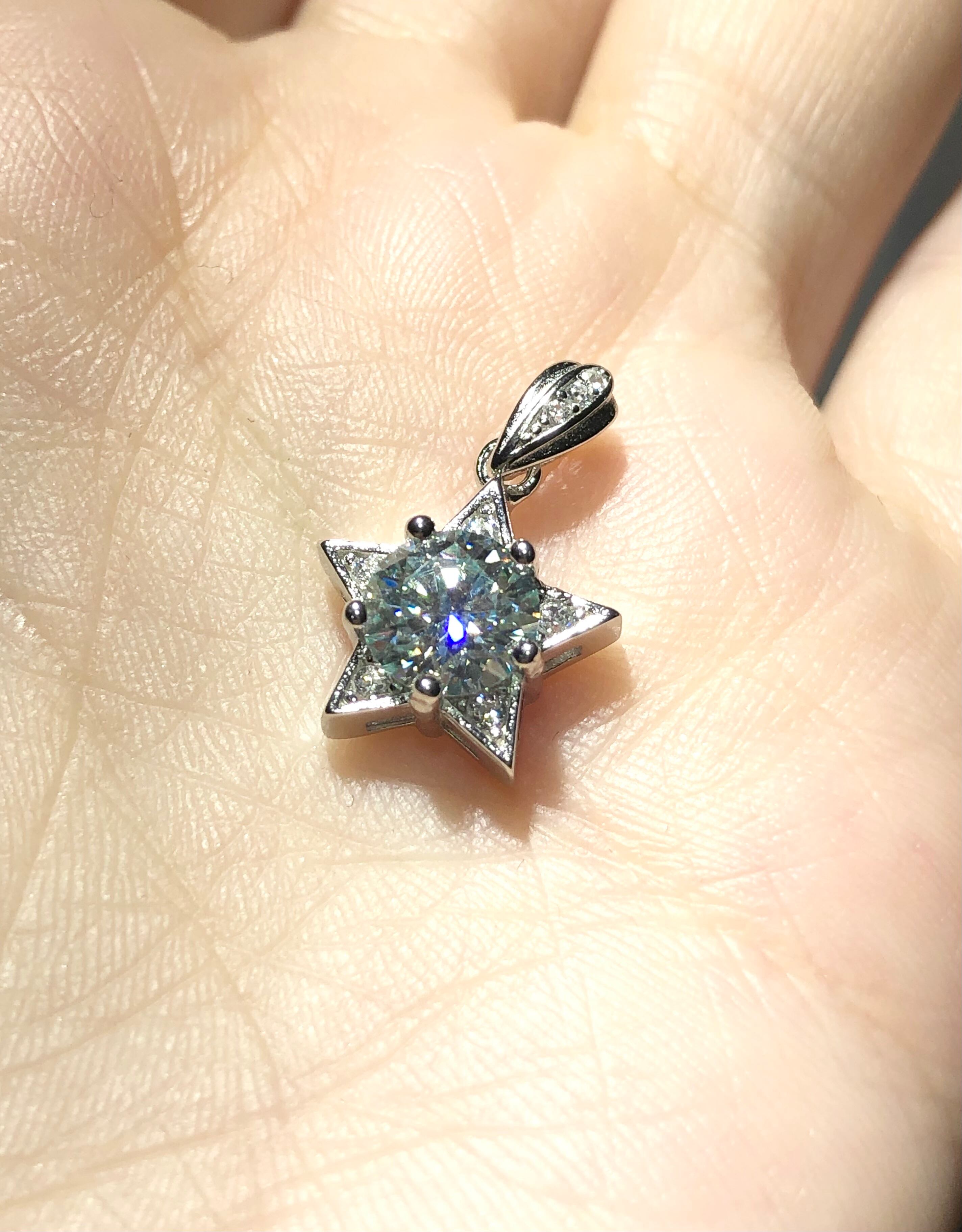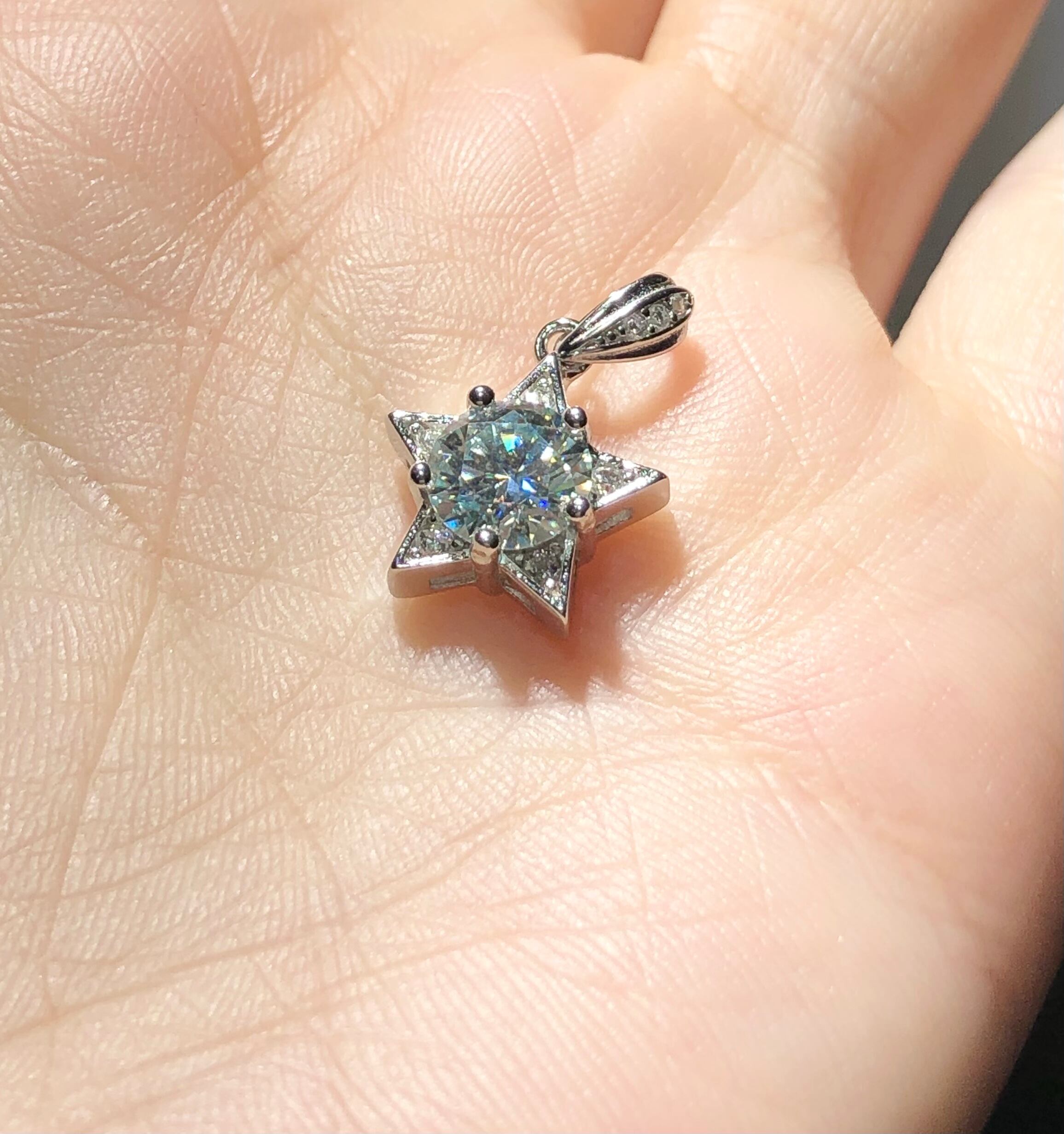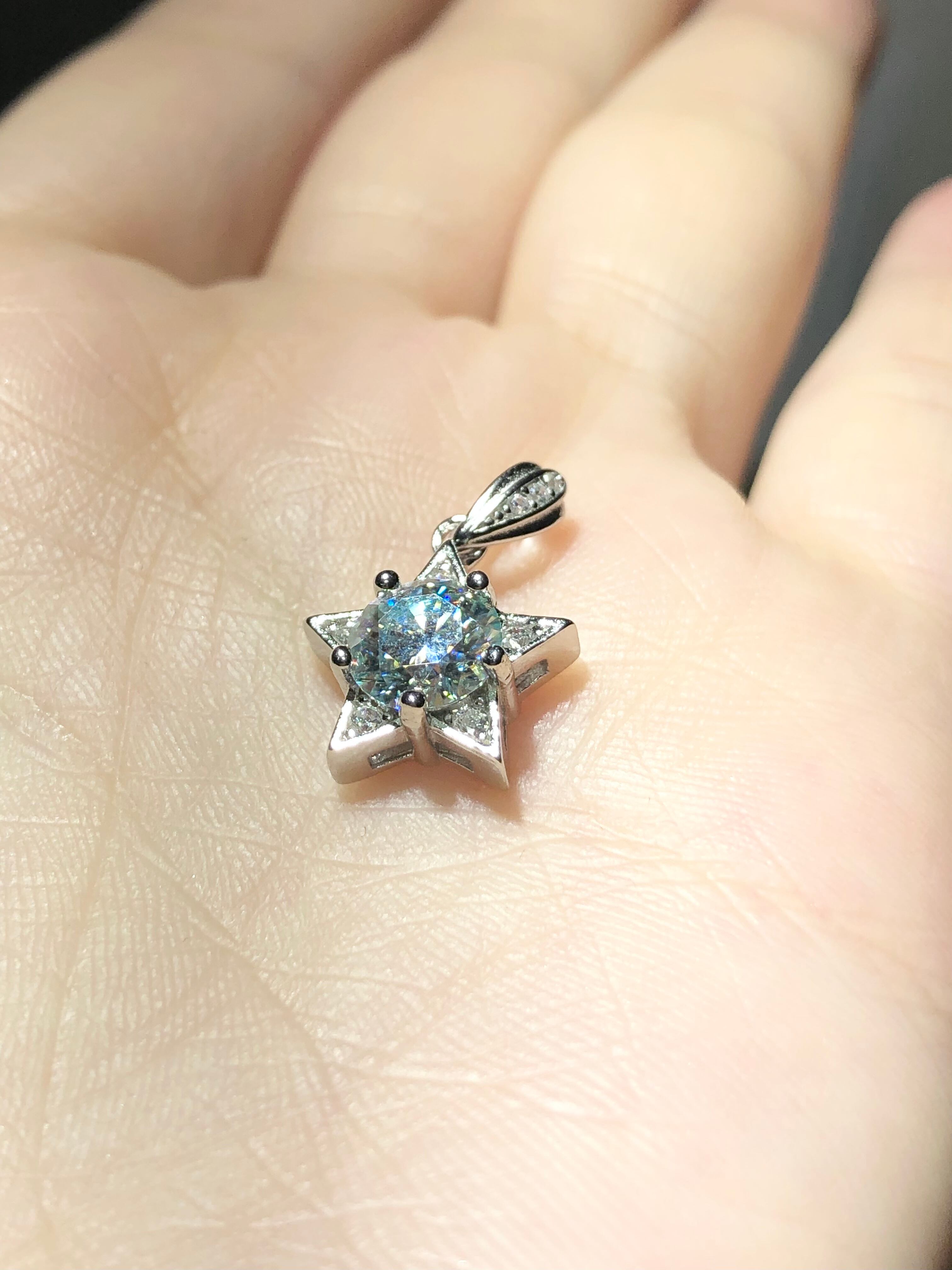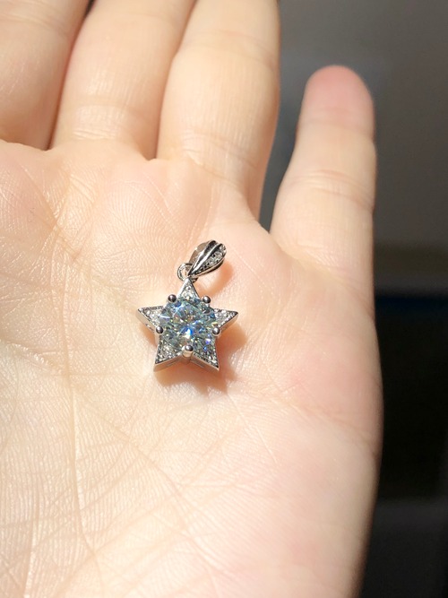 近年注目されている、モアサナイトという宝石のペンダントトップです。