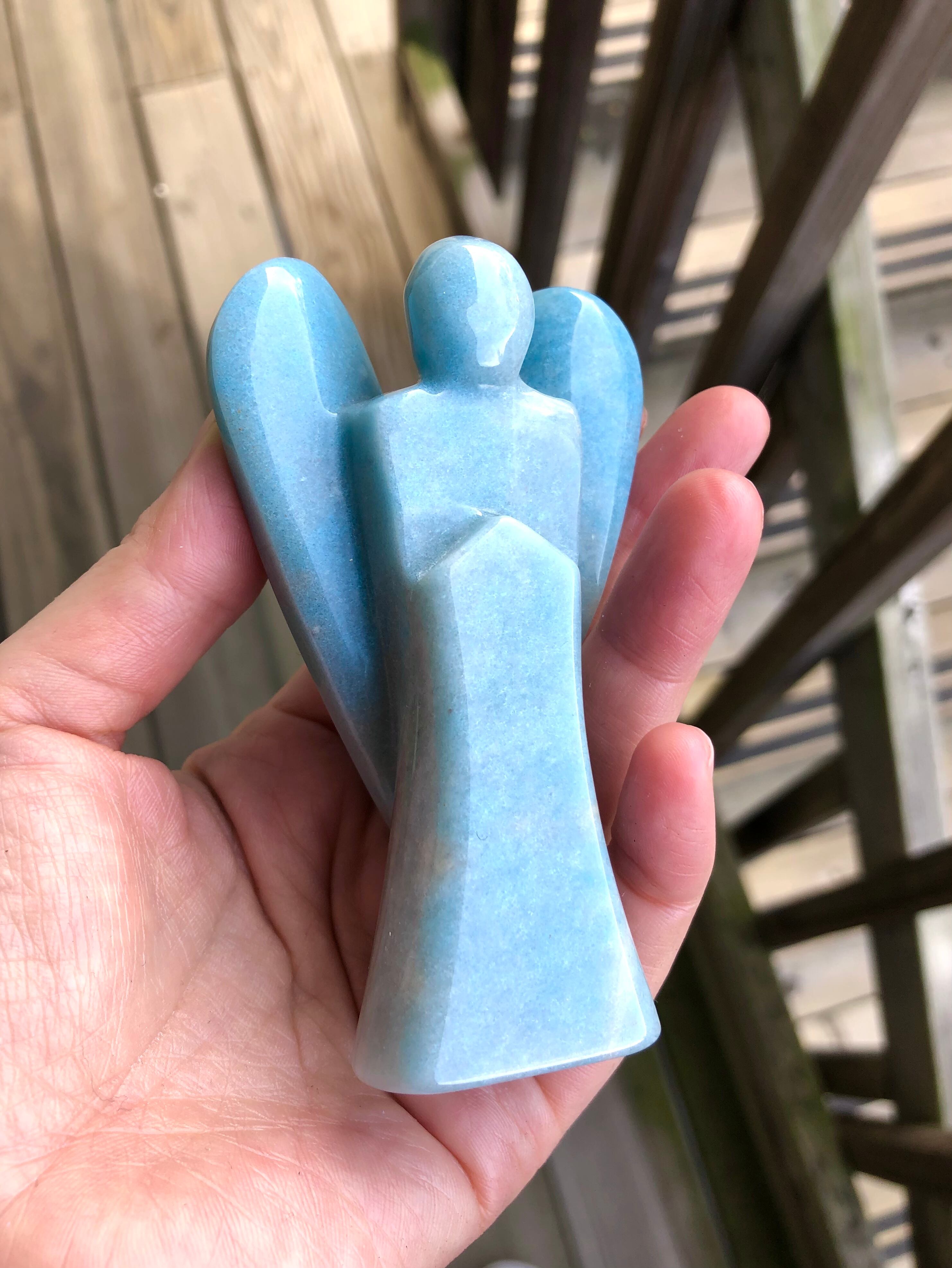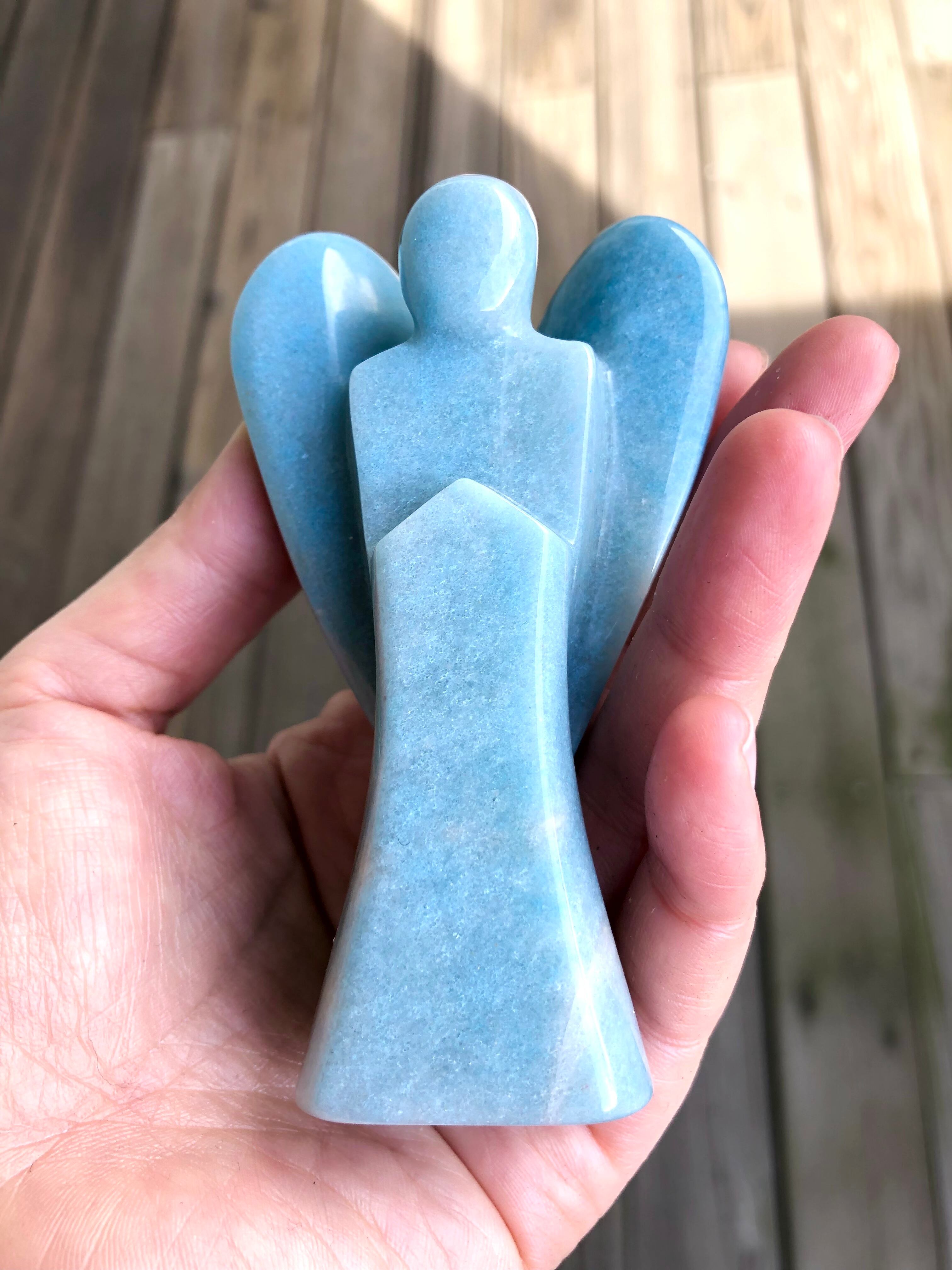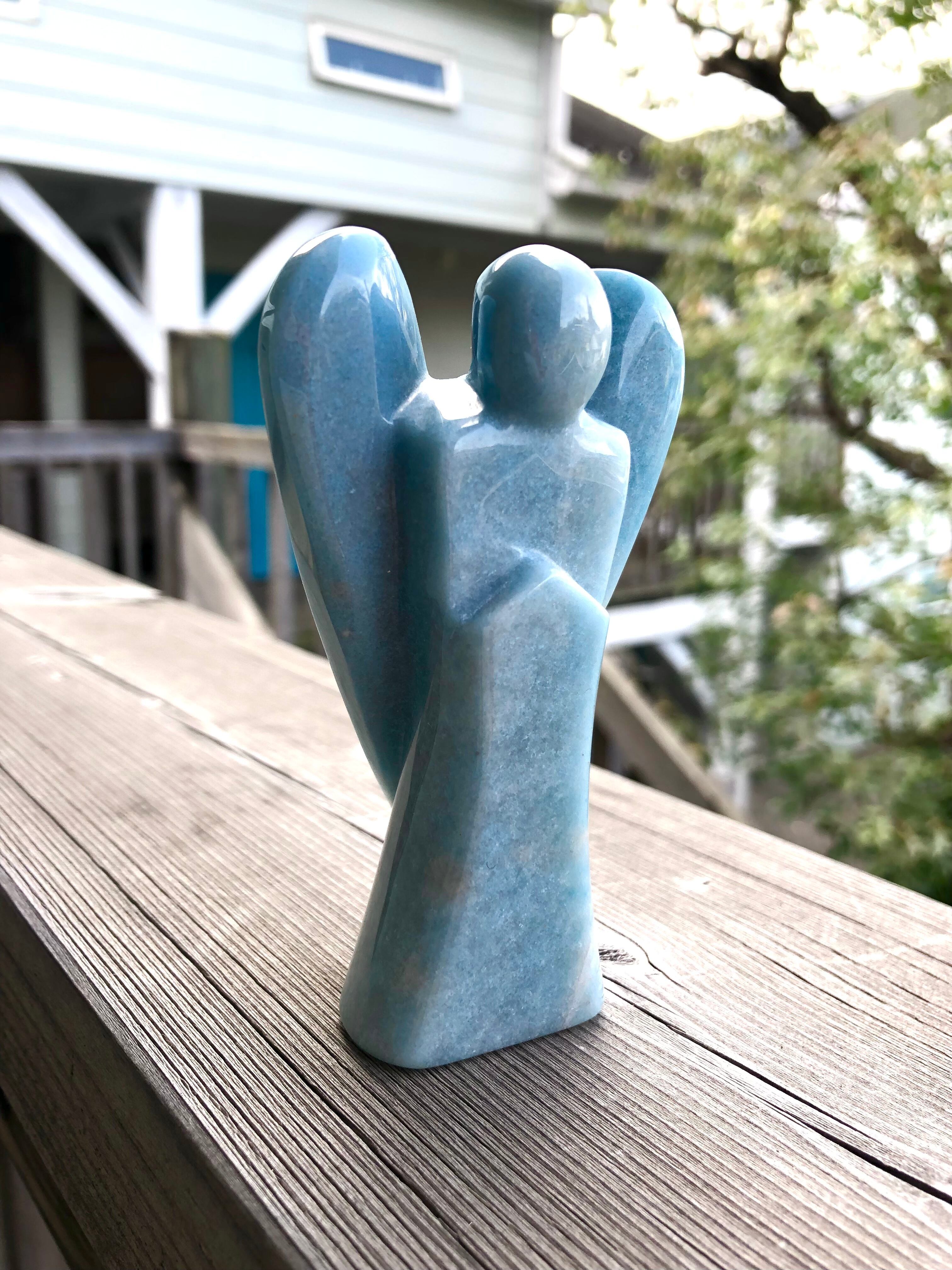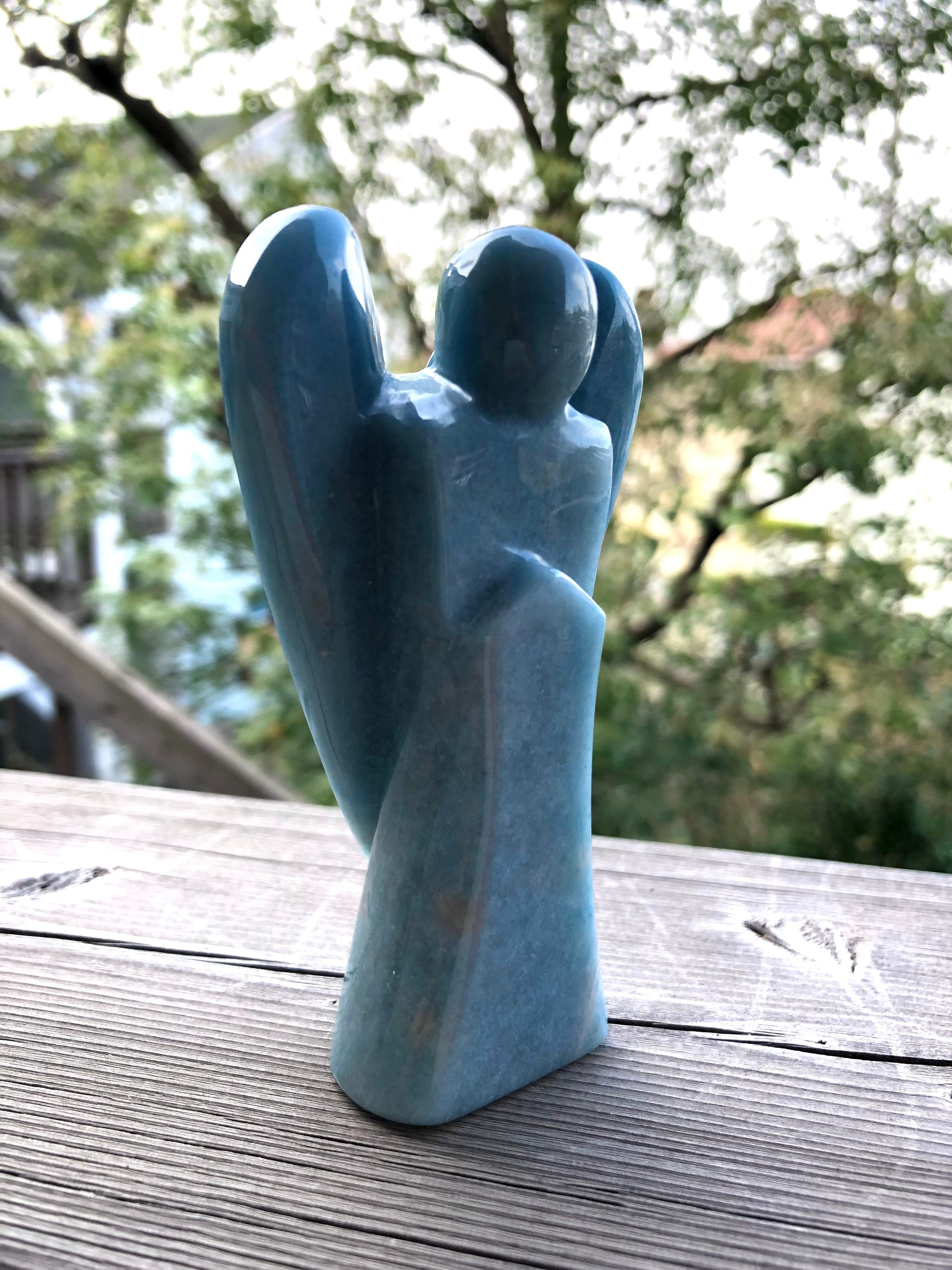 こちらは、トロレアイトとアズライトの混ざった鉱物から作られた天使です。