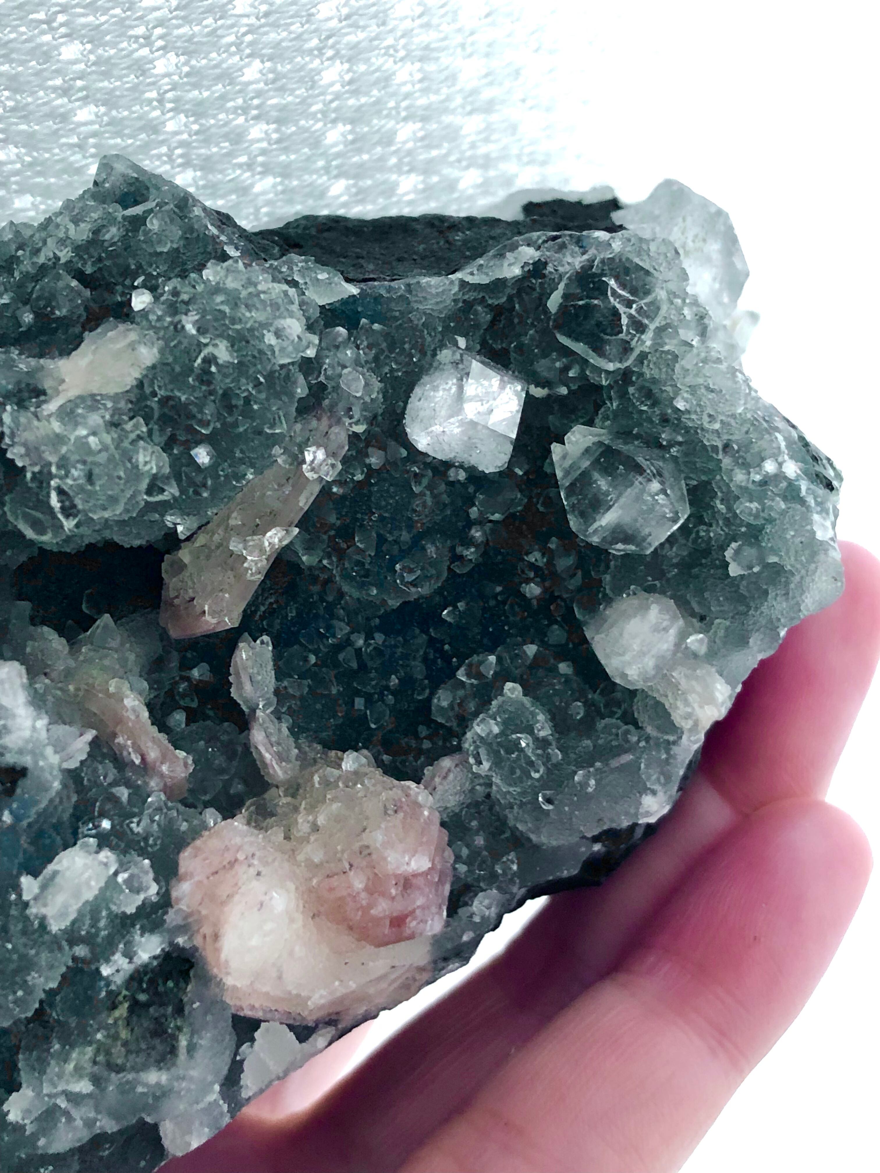 画像のかなりレアなカルセドニーのクラスター(スティルバイト、アポフィライトの結晶など共生)と、他にも石をお選びします。