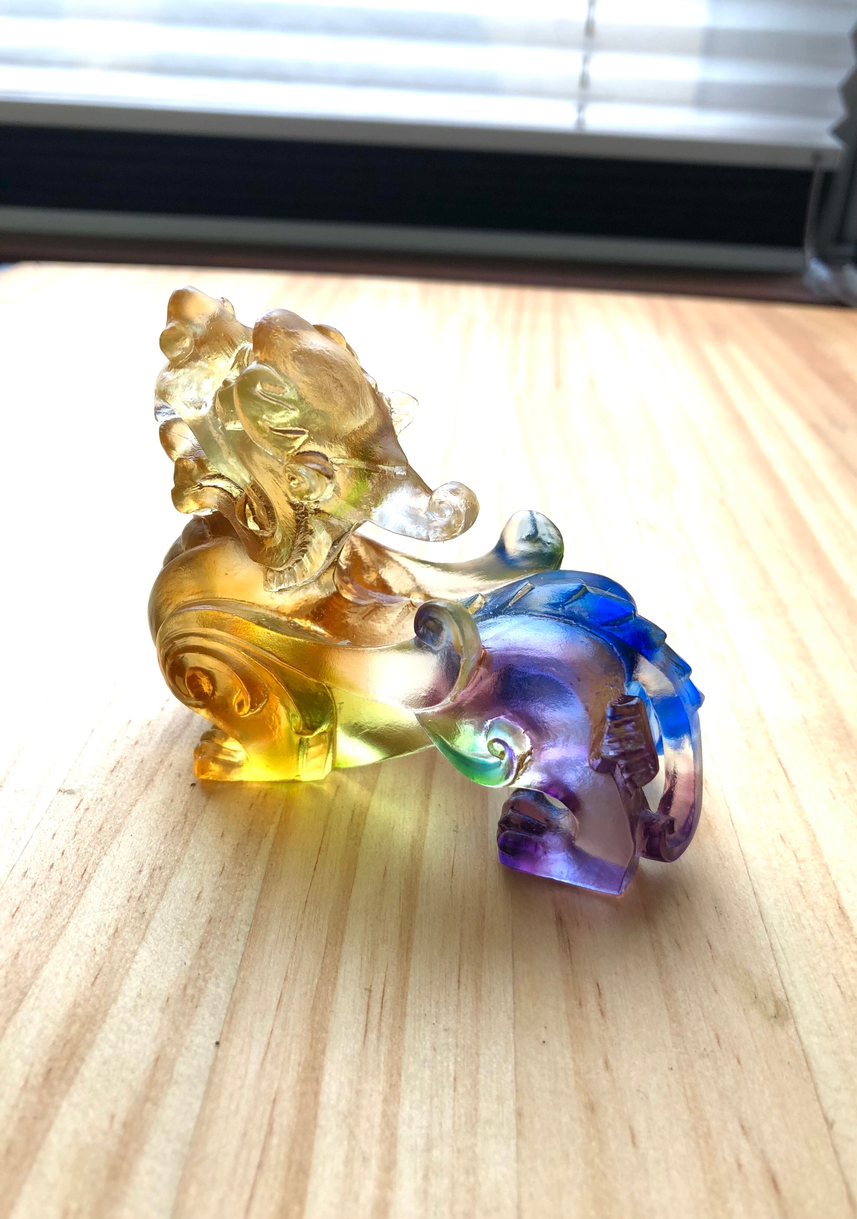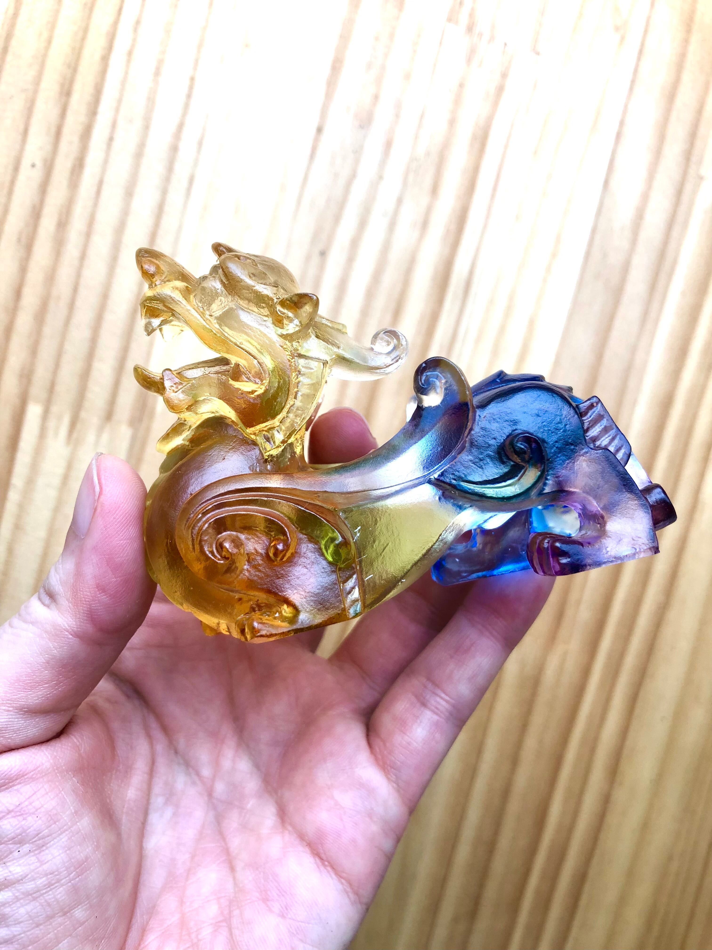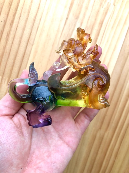 ☆ 招財の神獣・貔貅(ひきゅう) 瑠璃ガラス (ペアセット) 小と、その他にも天然石をお選びいたします。