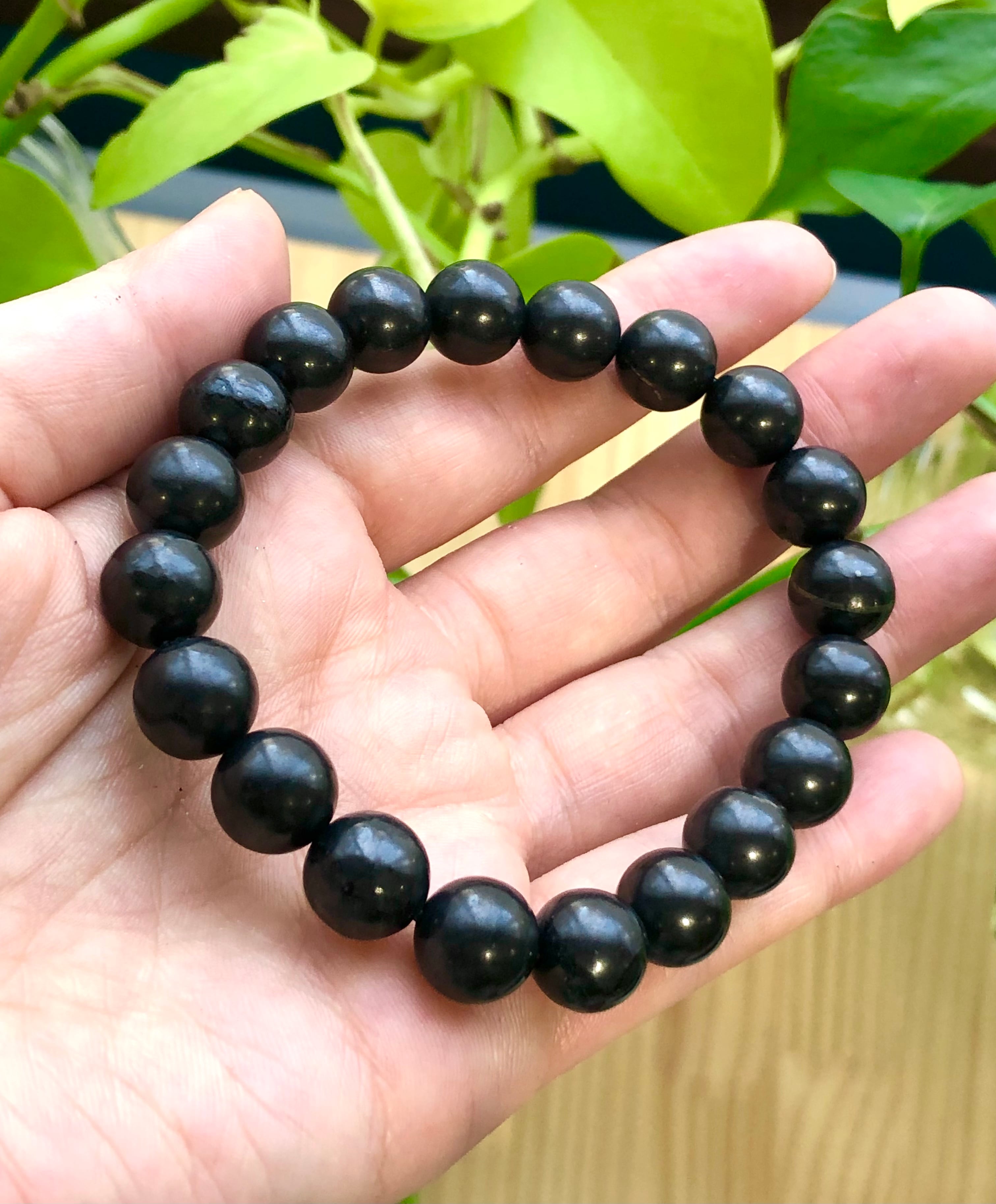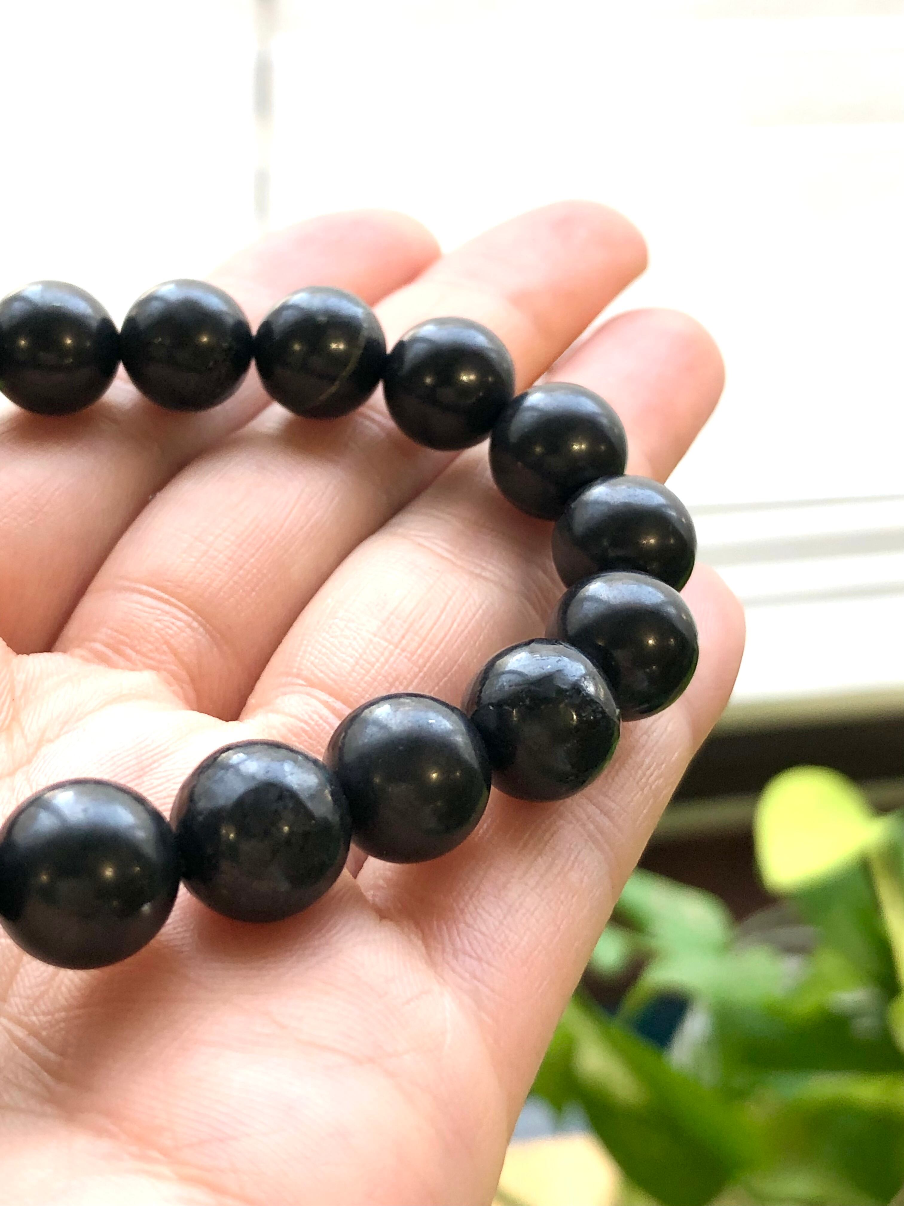 こちらはシュンガイトの10ミリ玉ブレスです。